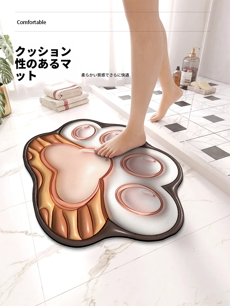 美世达3Dバスルーム滑り止めマット - 速乾・吸水性抜群のトイレ用フロアマットで、安全で快適なバスタイムを実現!おしゃれなデザインで、あなたのバスルームを華やかに彩ります。