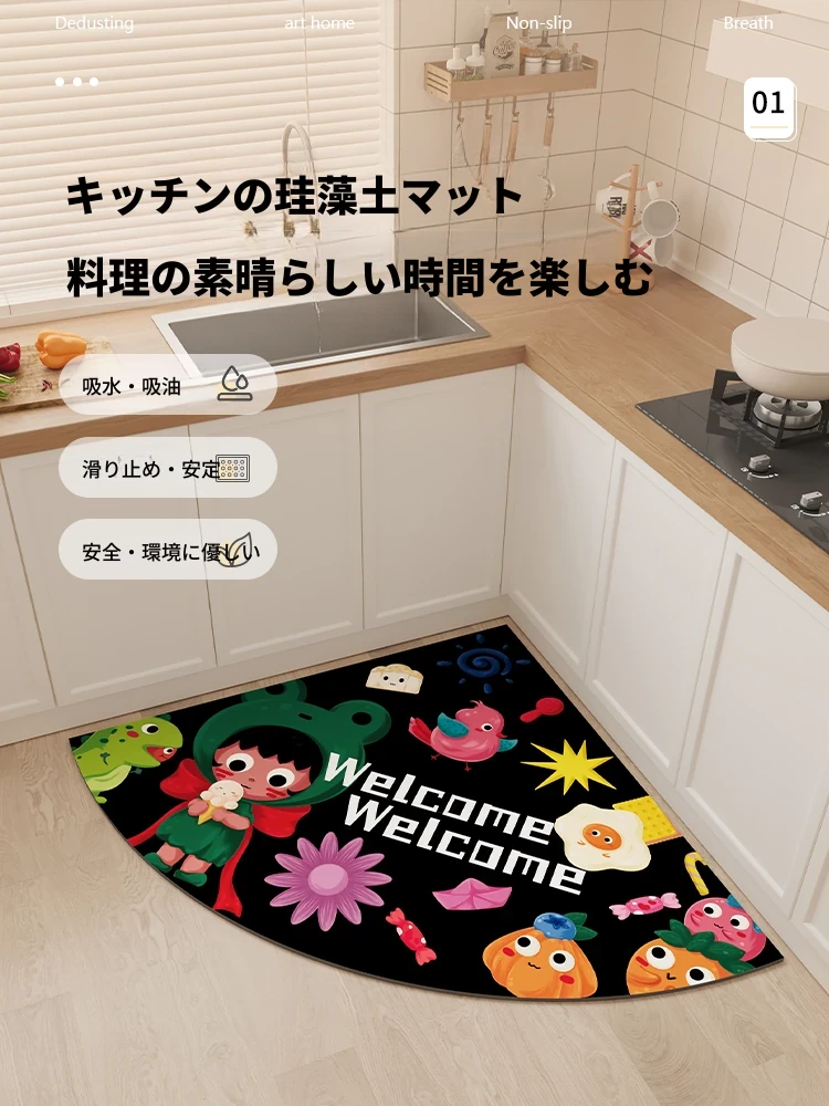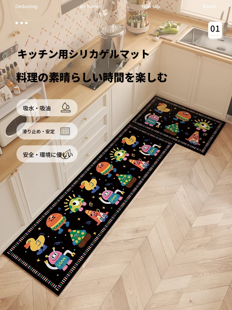 美世达速乾キッチンマット|防油・防汚・滑り止め|お手入れ簡単!吸水性抜群で、汚れに強いソフトマット。安全で快適なキッチン空間を実現!