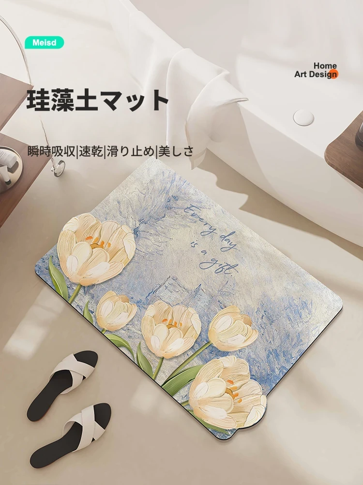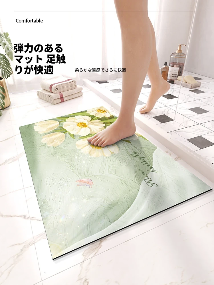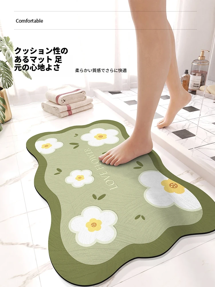 美世达防滑速乾吸水バスマット - 花型デザインでトイレの入り口をおしゃれに演出!快適な足元を提供し、滑りにくく、すぐに乾くので安心してお使いいただけます。トイレ周りを清潔に保ちましょう!