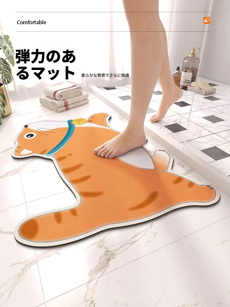 美世达バスルーム吸水マット - 滑り止めカートゥーンデザインのトイレマット、シャワールーム用ラグ、転倒防止、速乾性で快適な使用感を実現!