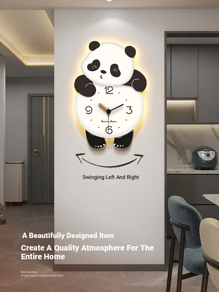 Meisida 2024 New Panda Wall Clock - Stylish and Minimalist Design for Living Room, Home Decor, Creative and Elegant Wall Clock with Built-in Night Light