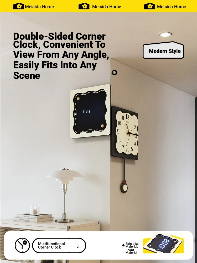 Meisida Creative Double-Sided Corner Wall Clock - 2025 New Modern Minimalist Design for Living Room, Stylish and Sophisticated Corner Timepiece