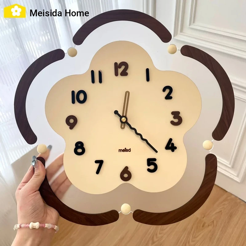 Meisida Wooden Style Wall Clock - 2025 New Trendy Minimalist Modern Design for Living Room, Creative Cream Aesthetic Timepiece