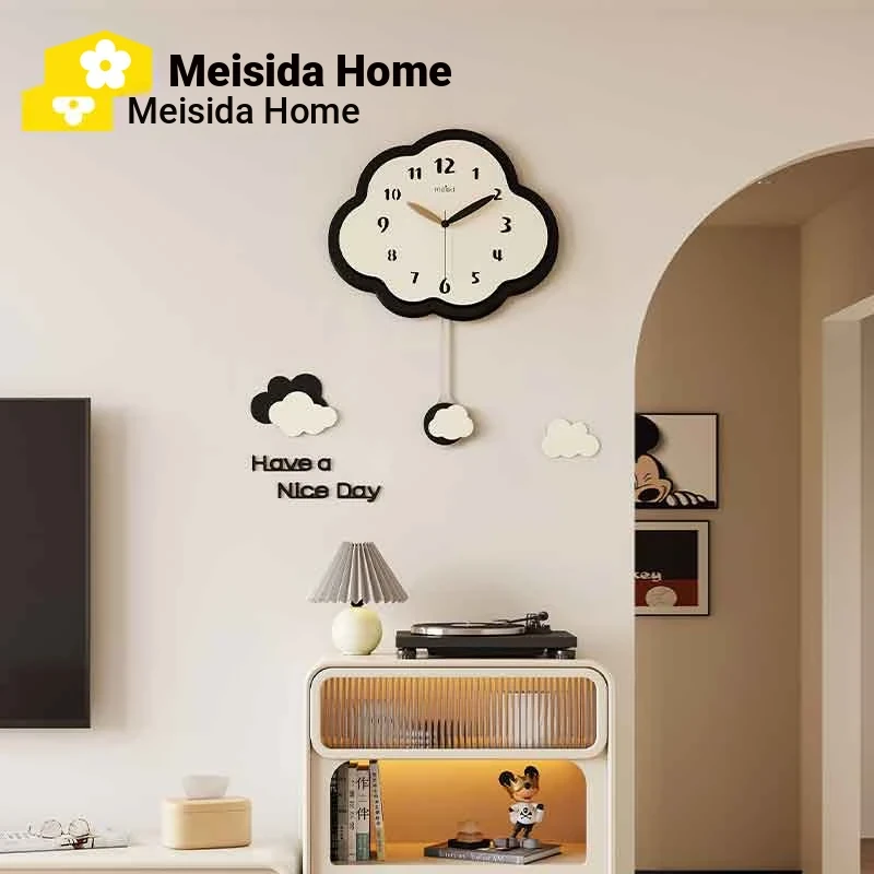 Meisida No-Drill Wall Clock 2025 New Creative Minimalist Home Decor Cream Style Hanging Clock for Living Room