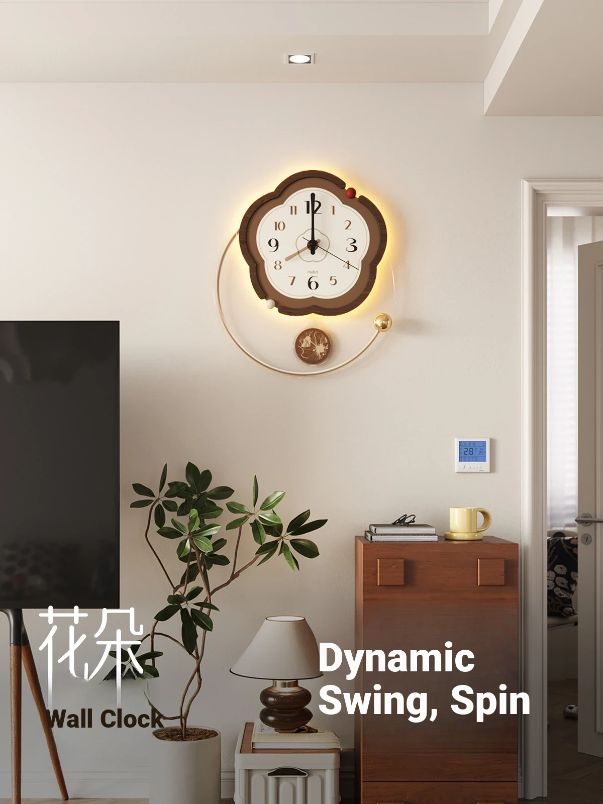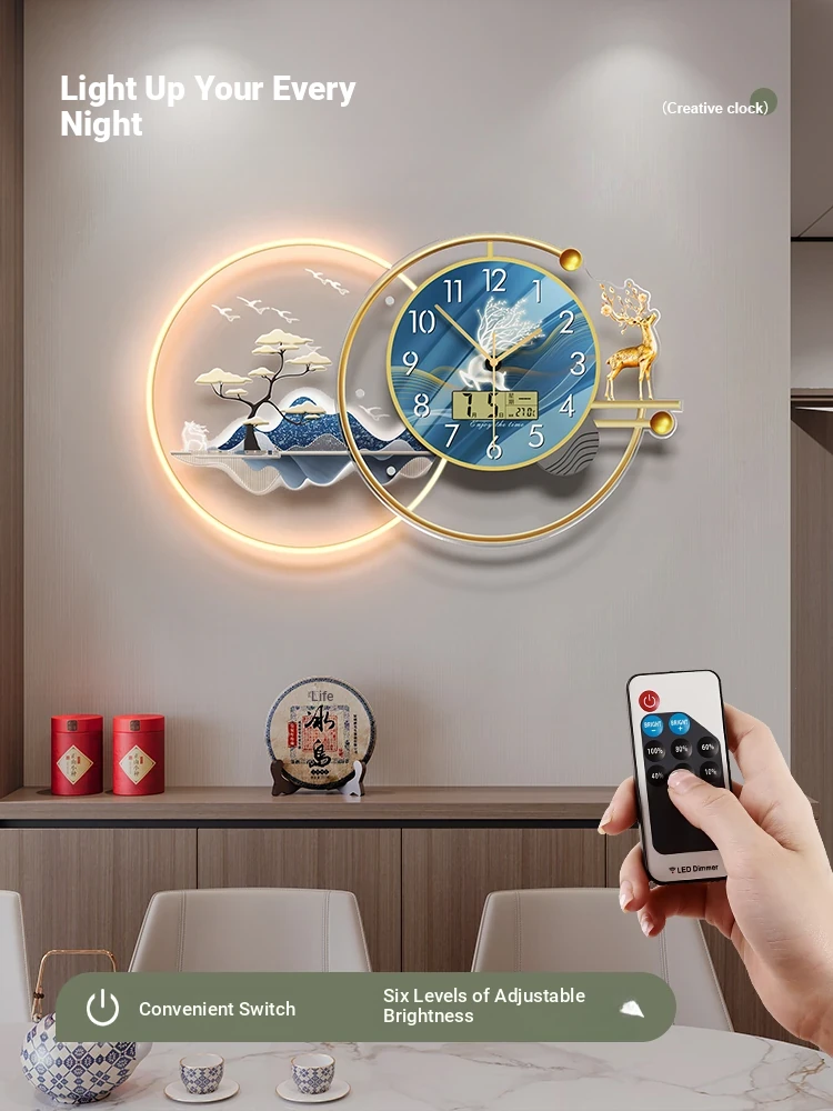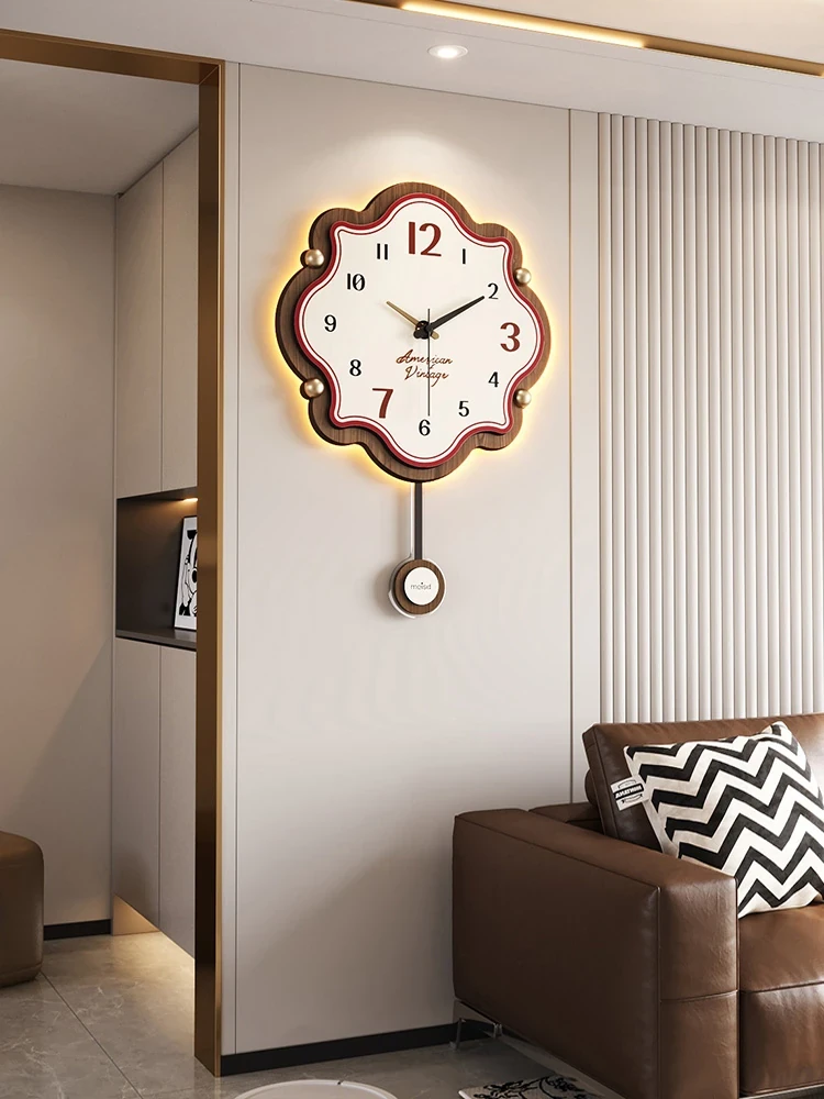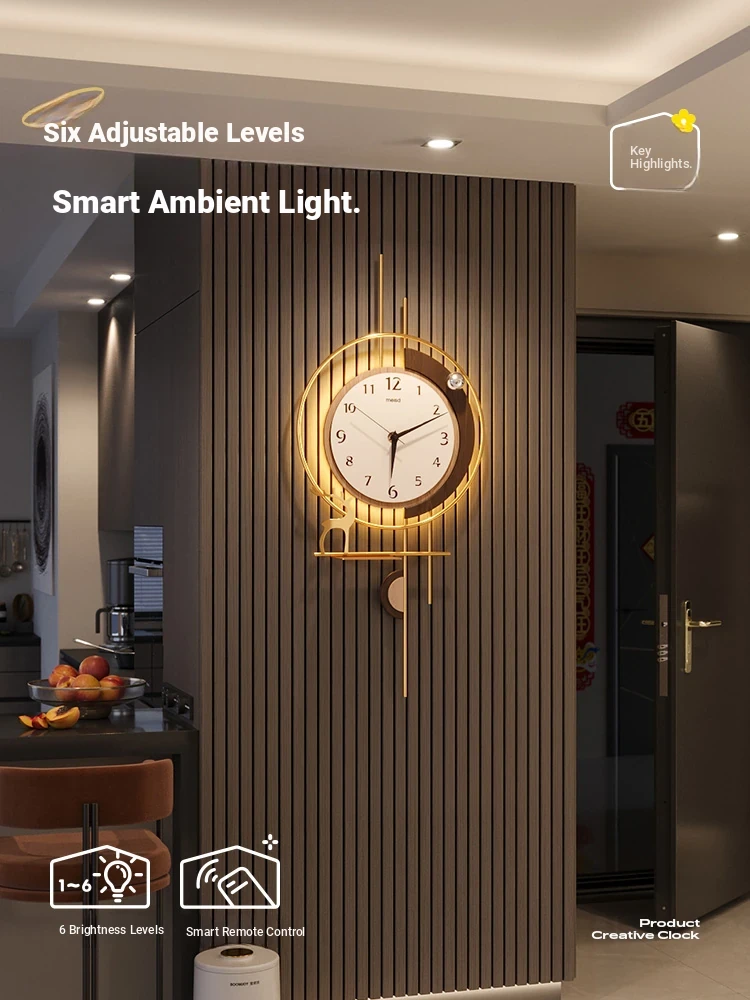 Mei Shi Da Retro Wall Clock - 2025 New Premium Design for Living Room, Creative Home Decor with Built-in Wall Lamp, Perfect for Adding Elegance and Style to Your Space
