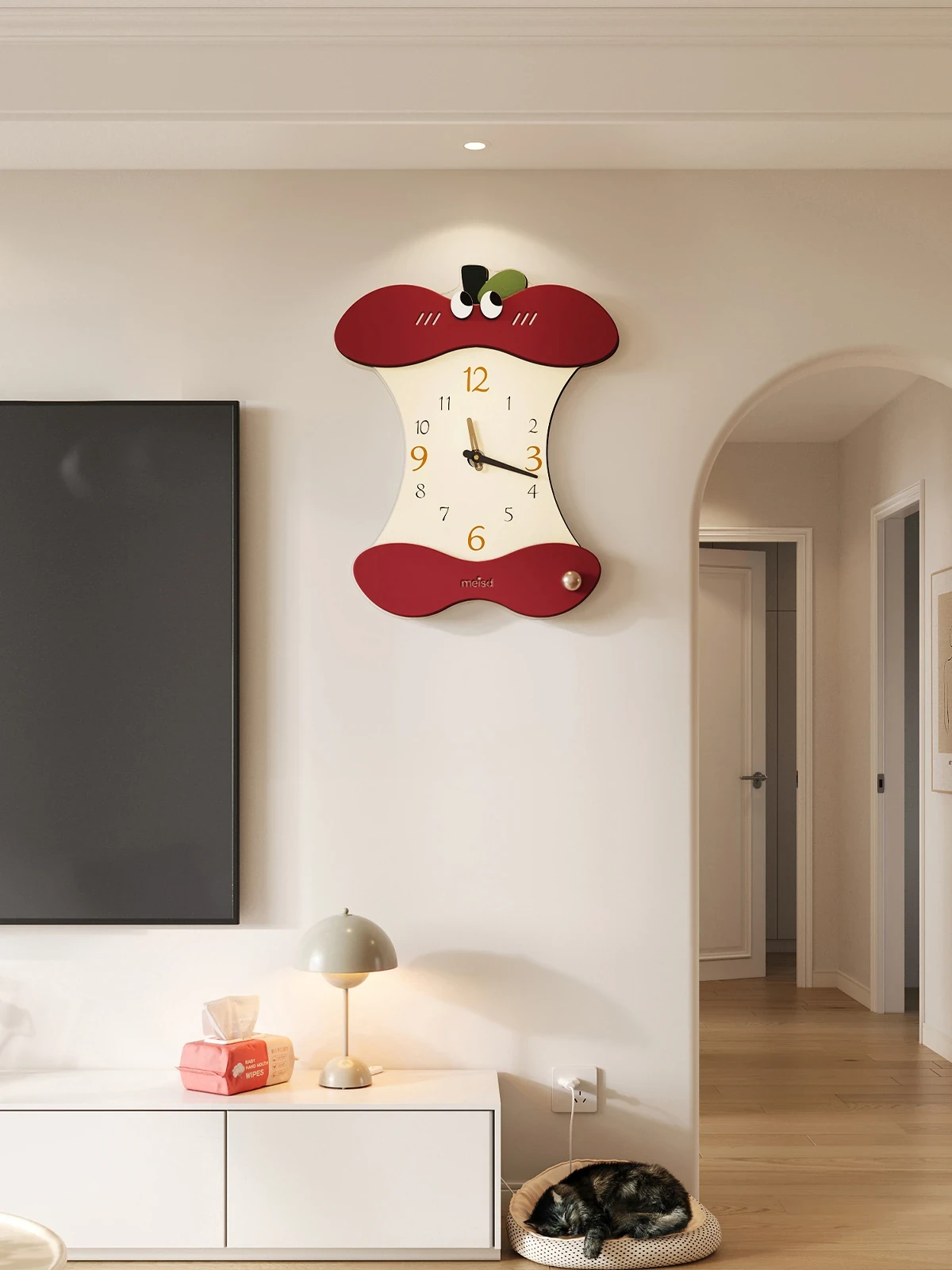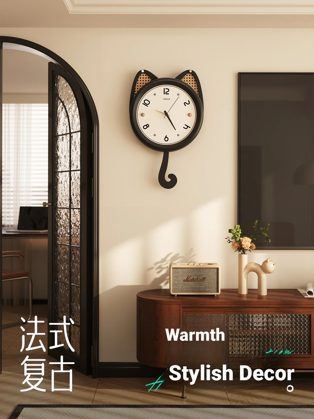 Meisida Lucky Cat Wall Clock - 2024 New Stylish Modern Decorative Clock for Living Room, Creative Design, Perfect for Home Décor