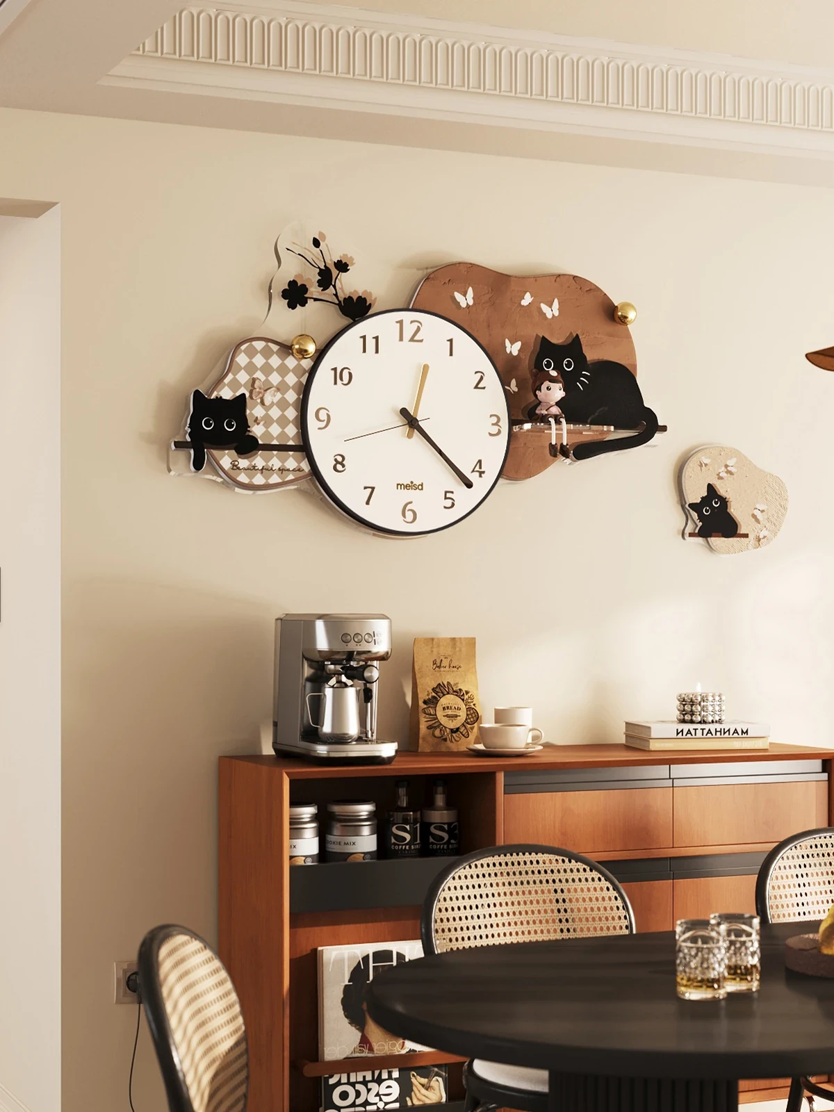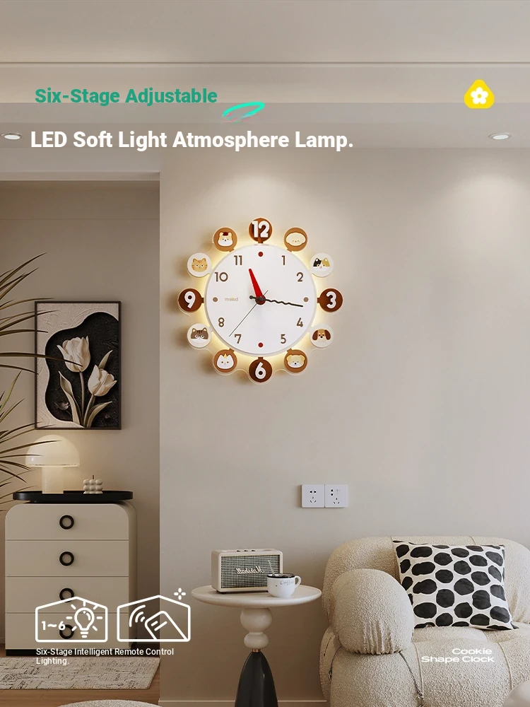 Meista Creamy Cat & Dog Cartoon Wall Clock - 2025 New Minimalist Modern Creative Silent Clock for Living Room Decoration