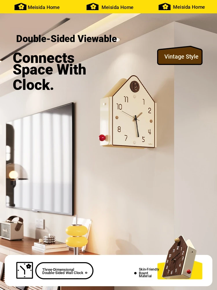 Meisida Modern Corner Wall Clock 2025 New Double-Sided Home Clock - Stylish Dining Room Wall Decor Timepiece