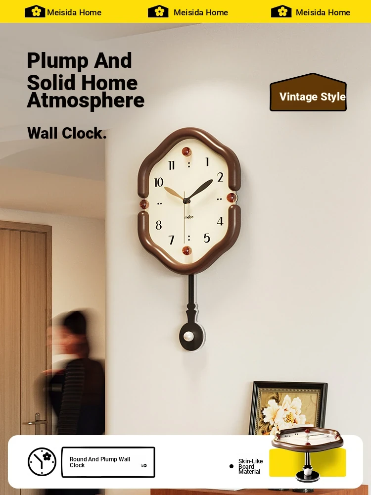 Meishida Vintage Style Wall Clock - Creative and Elegant Design for Dining Rooms, Living Rooms, and Home Décor - Artistic Timepiece for Trendy Spaces