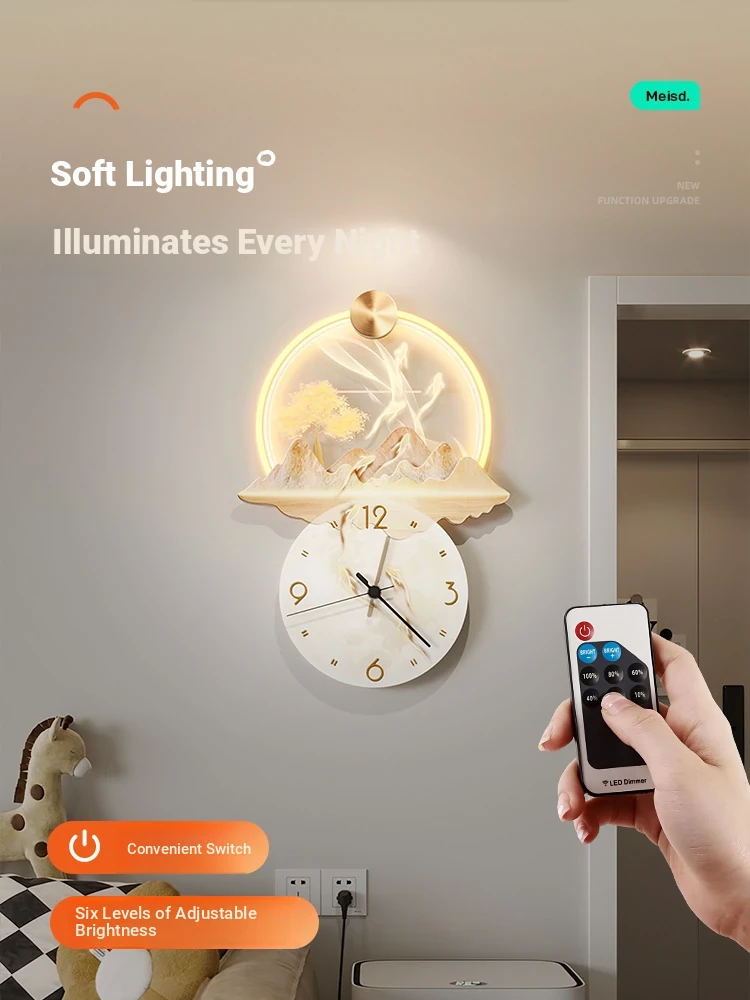 Meisida Modern Wall Clock - Stylish and Creative 2024 New Design for Living Room, Elegant Home Decor with Wall Lamp Feature, Perfect for Any Space