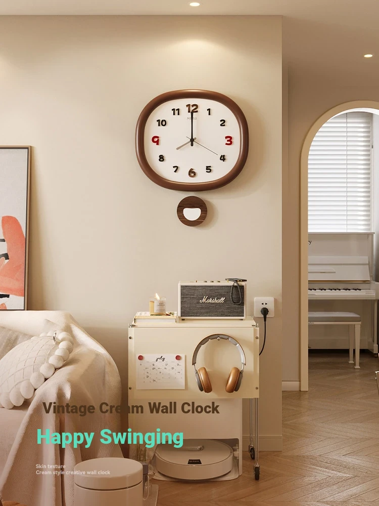 Meistad Cream Wind No-Drill Wall Clock - 2025 New Retro Design for Living Room, Creative Hangable Clock for Home Décor