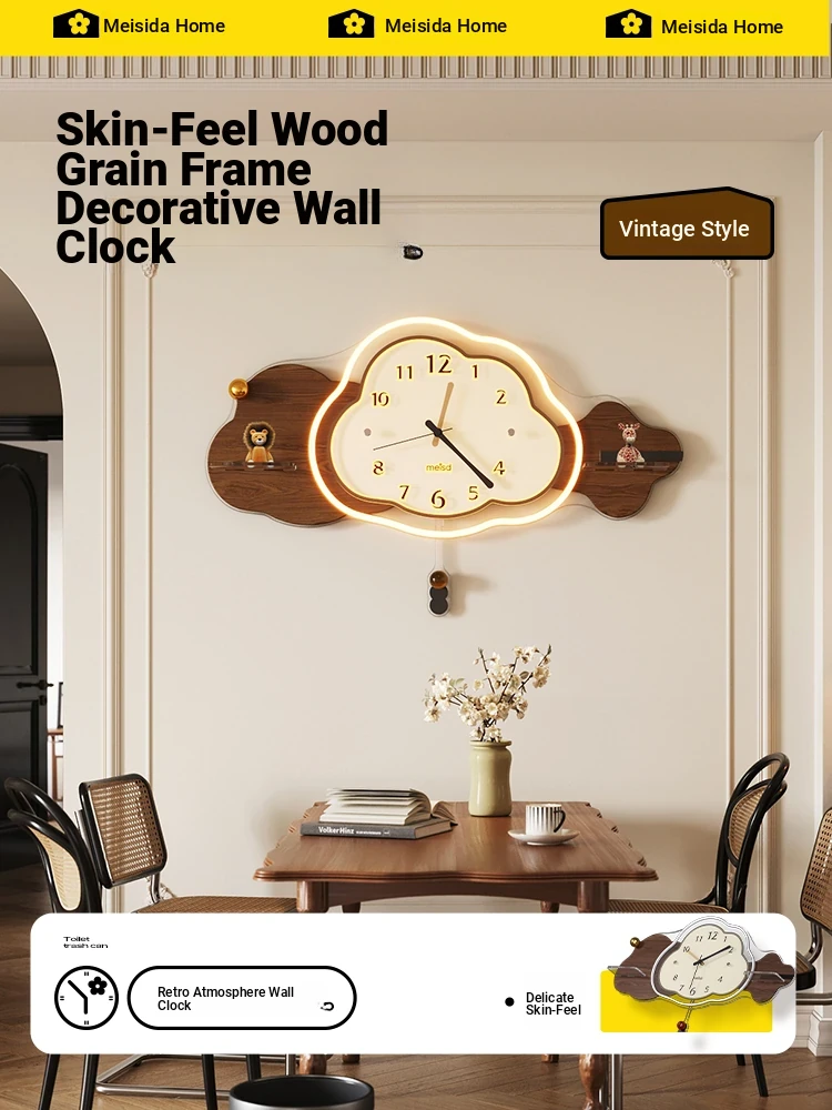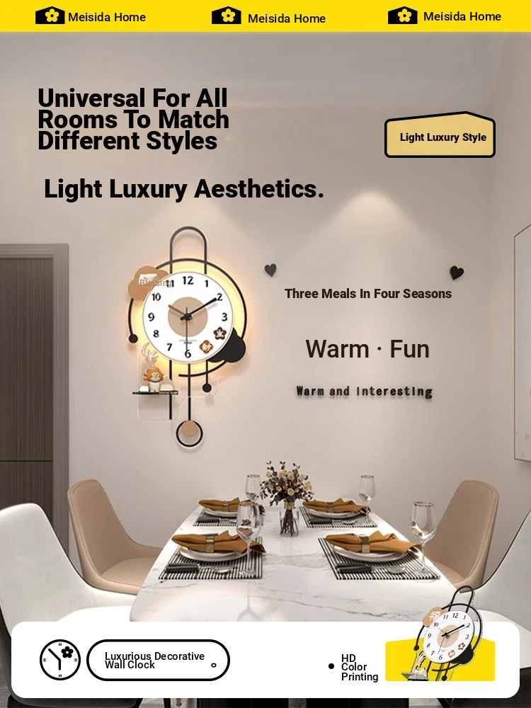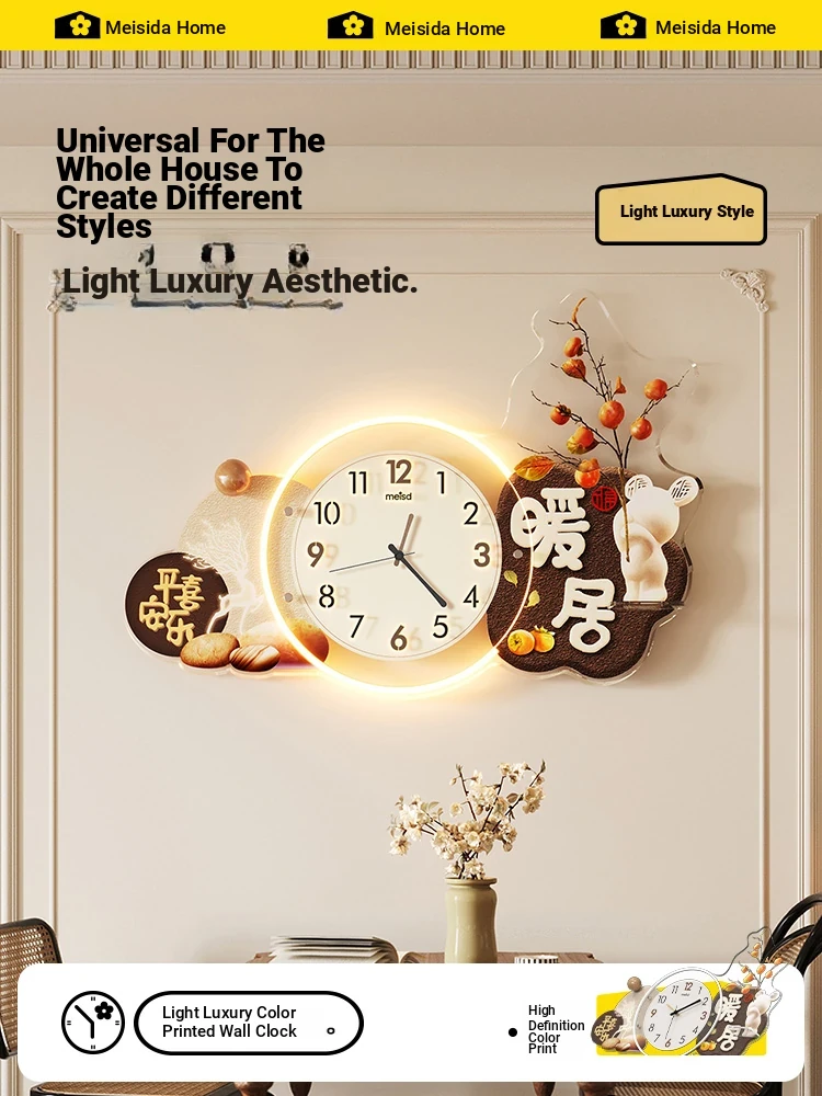 Meisida Restaurant Wall Clock - 2025 New Creative Decorative Clock for Living Room, Elegant Wall Light Clock, Perfect Home Decor Piece