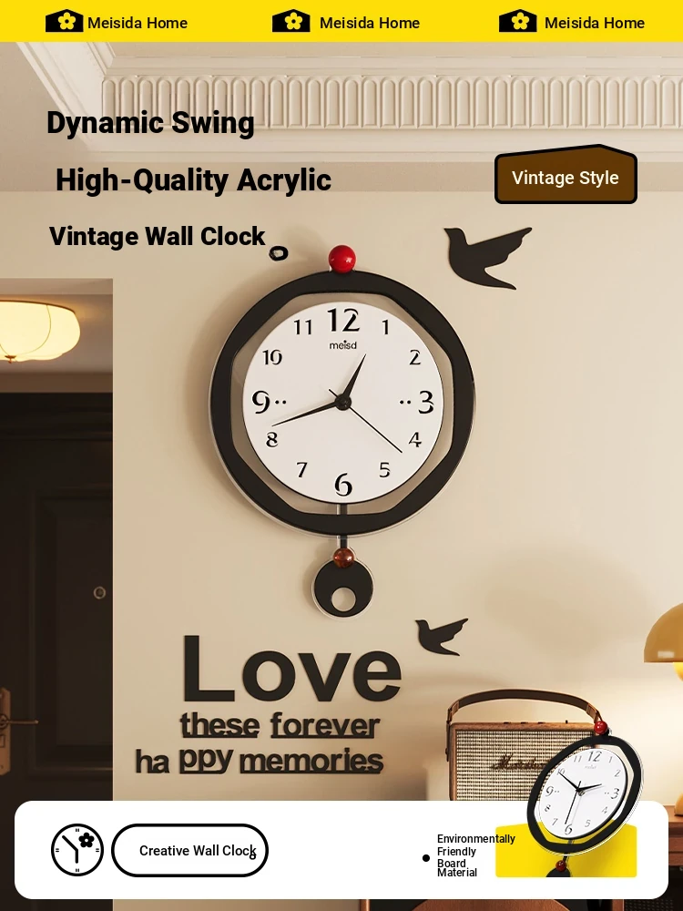 Meisida Vintage Wall Clock - 2025 New Creative Design, Premium Home Art Timepiece for Living Room, Elegant and Stylish Wall Decor