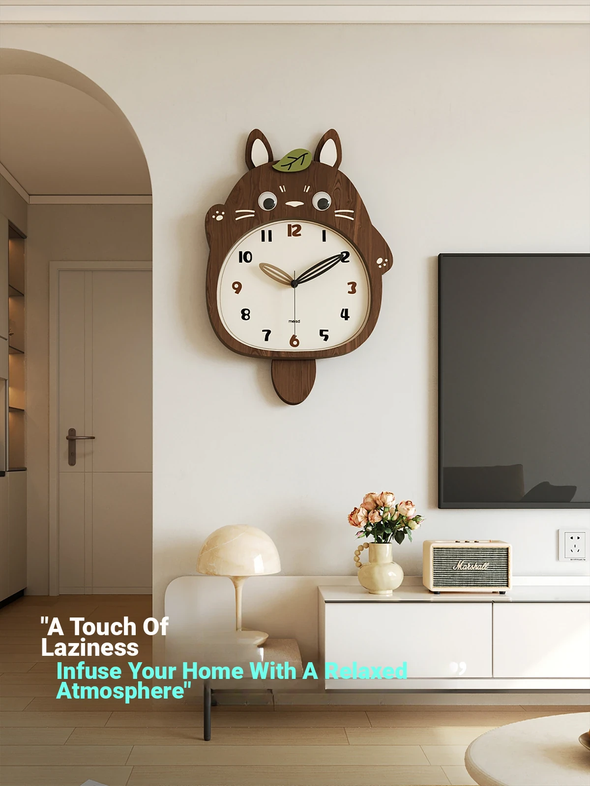Meisida 2025 New Creative Wooden Totoro Wall Clock - Silent Home Decor Clock for Living Room, Perfect for Stylish Wall Decoration