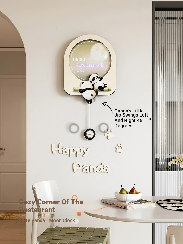 Meisida Panda Wall Clock - Modern Minimalist Design with Calendar, 2024 New Creative Electronic Clock for Home Living Room Décor
