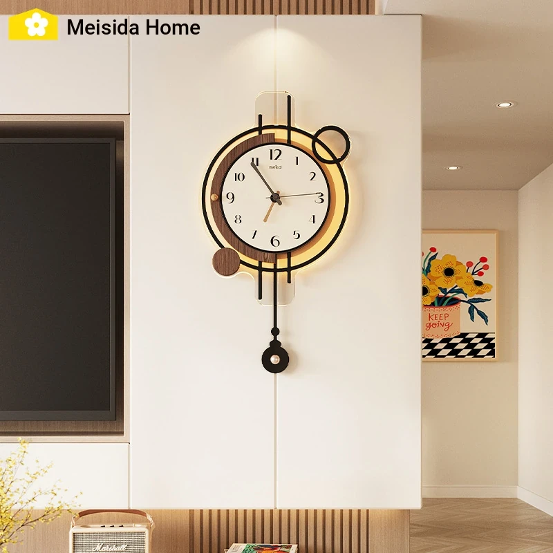 Meisida Modern Wall Clock - Stylish and Creative 2024 New Design for Living Room, Elegant Home Decor with Wall Lamp Feature, Perfect for Any Space