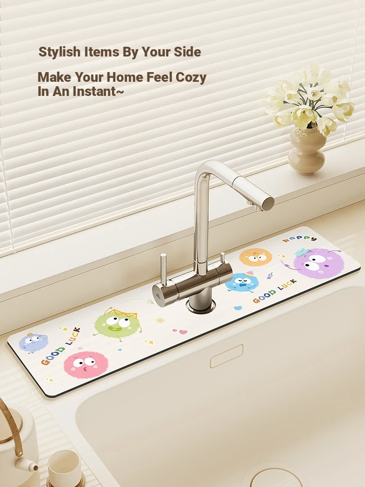 MeiShida Cartoon Faucet Mat - Non-Slip Kitchen Sink Mat for Drainage, Perfect for Bathroom and Kitchen Countertops, Absorbent and Easy to Clean, Ideal for Your Home!