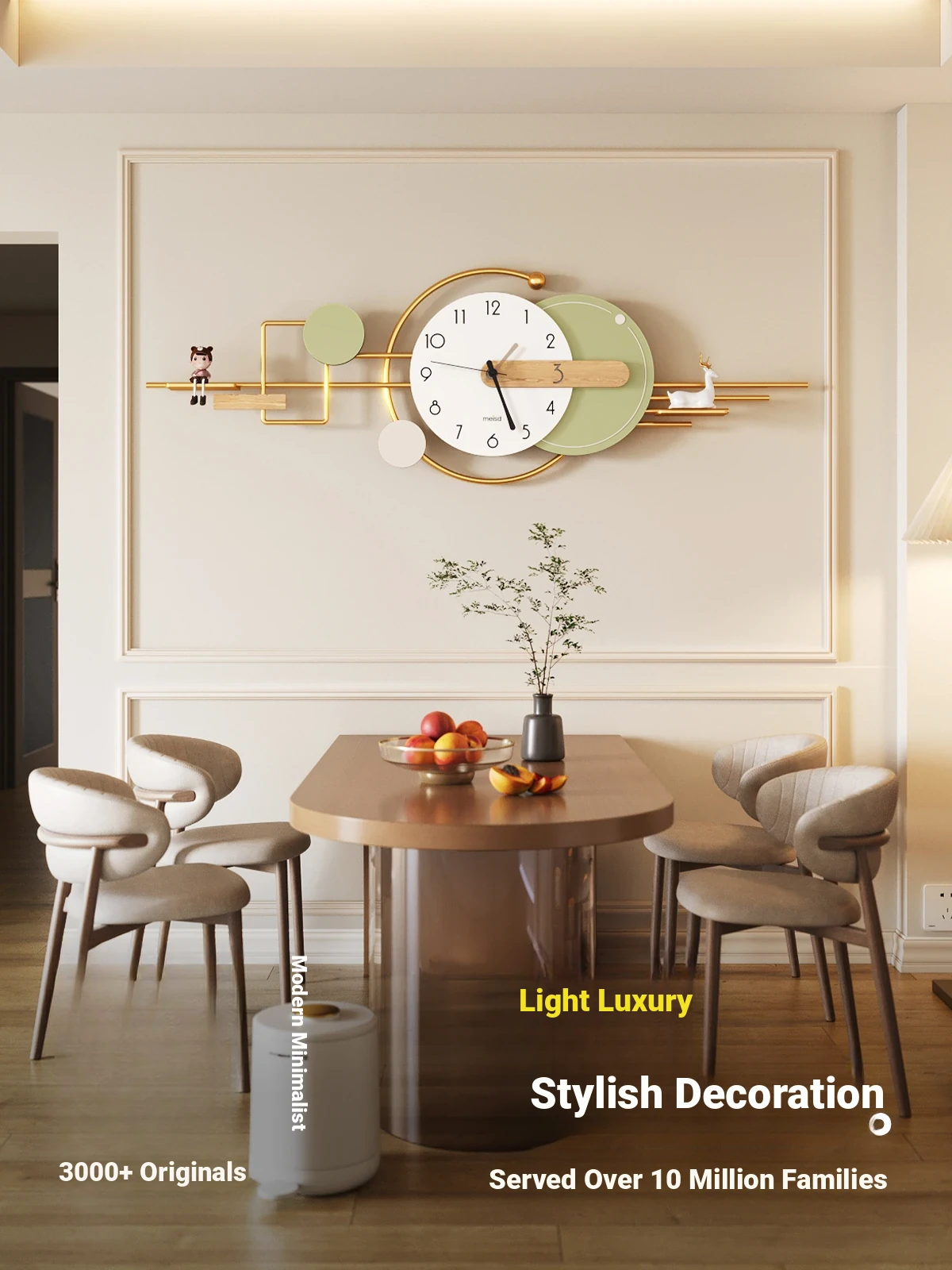 Modern Luxury Dining Room Wall Art Clock - Elegant and Sophisticated Hanging Artwork for Sofa, Entryway, and Living Room Decor