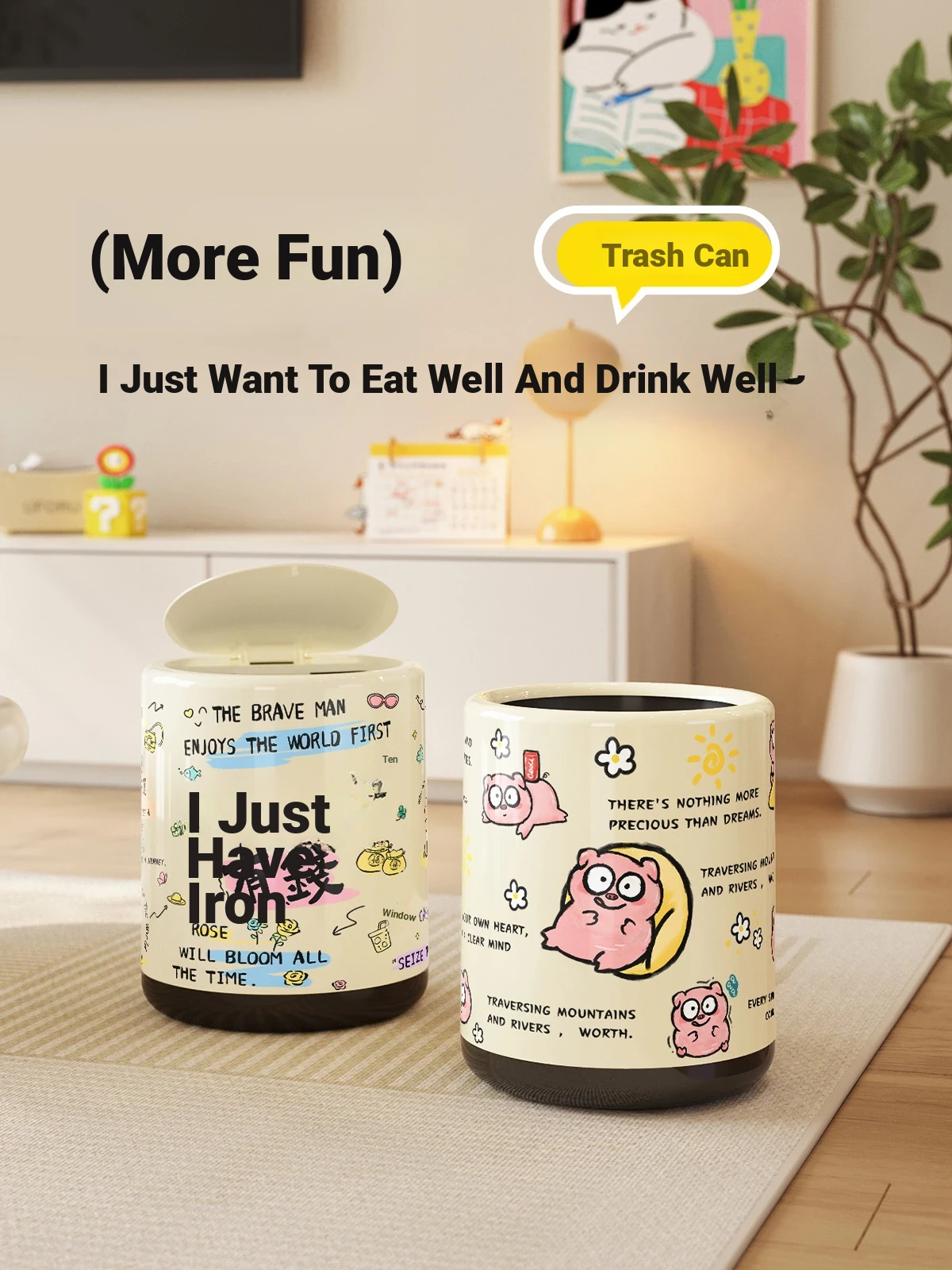 Meisida Cartoon Cream Style Trash Can - 2025 New Design for Home Use, Perfect for Living Room, Bedroom, and Bathroom - Stylish and Functional Waste Basket for Every Space