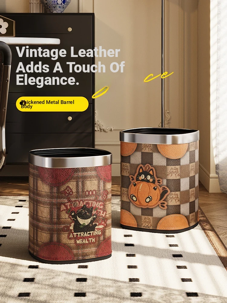 Stylish 2025 Cartoon Trash Can for Home - Large Capacity, Double-Layer Design with Lid, Perfect for Living Room and Bedroom, High Aesthetic Appeal