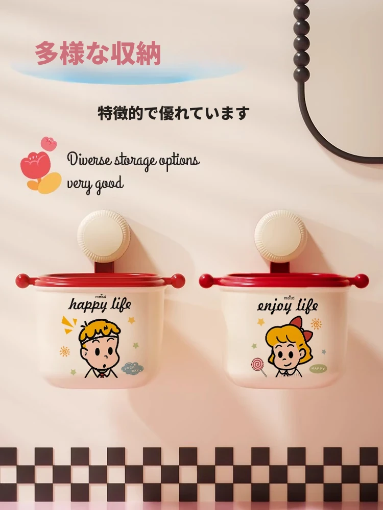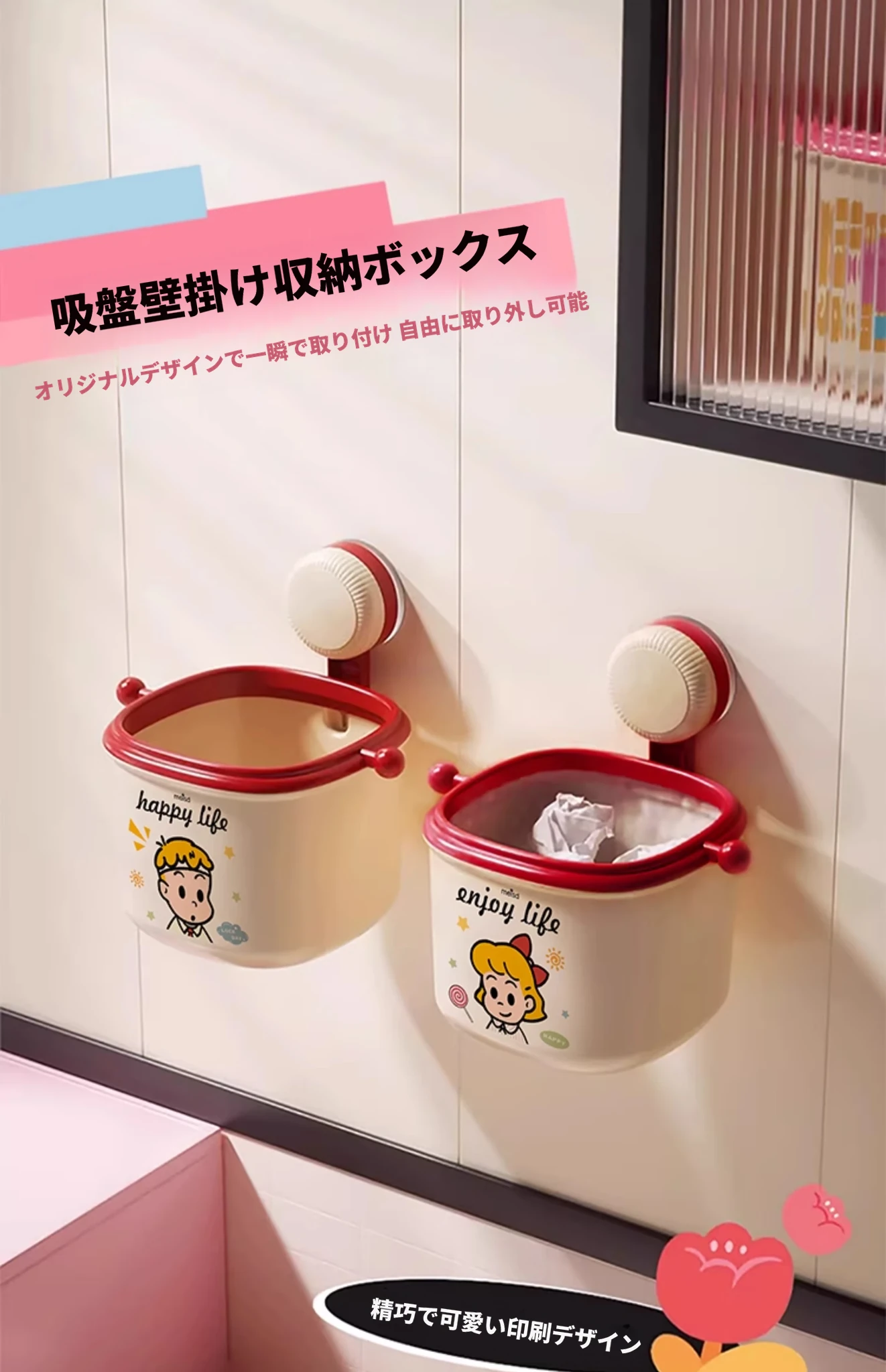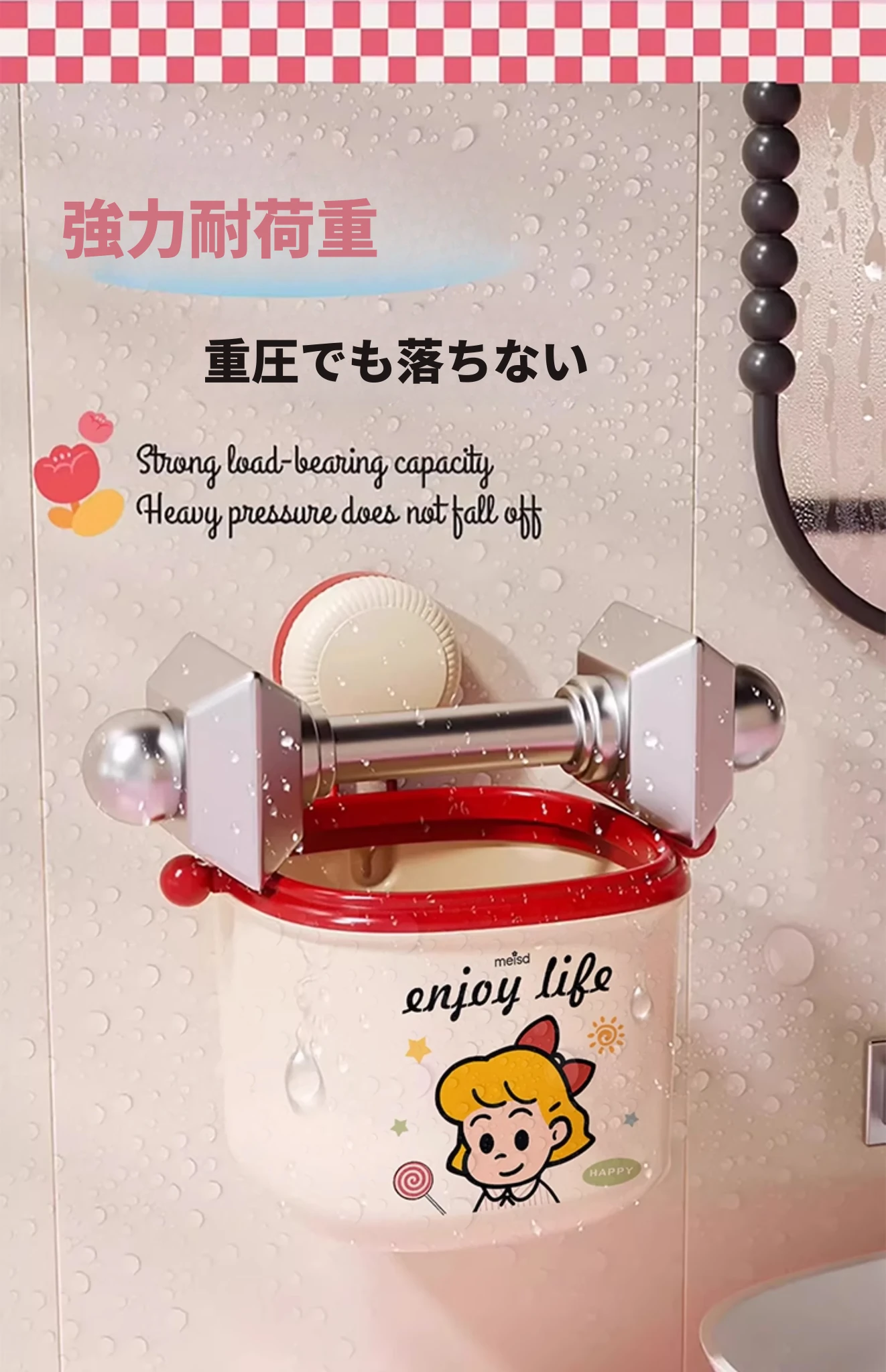 美世达可爱な吸盤式壁掛け洗顔タオル収納ボックス - おしゃれで高品質なバスルーム用タオルラック、スペースを有効活用!