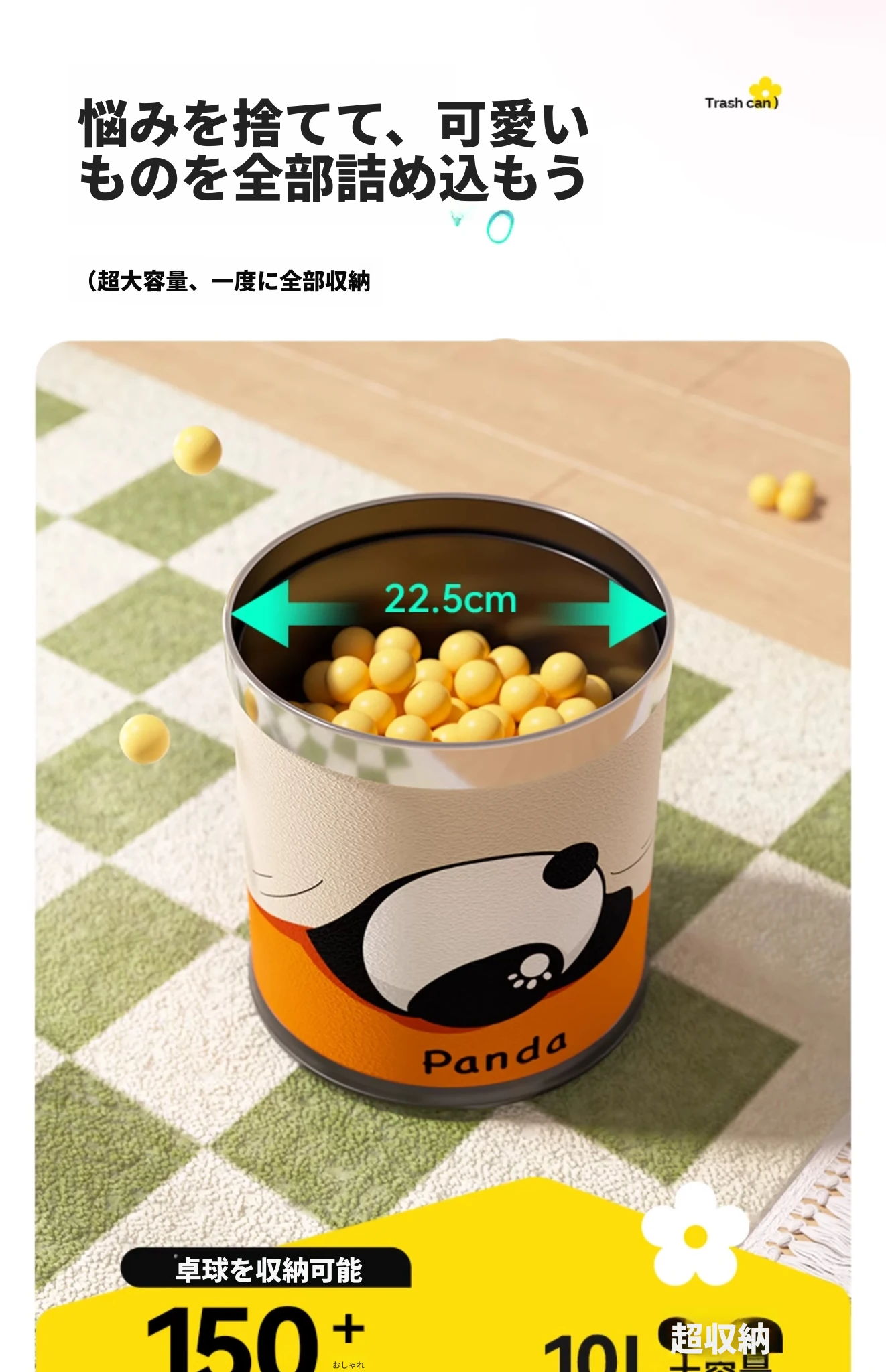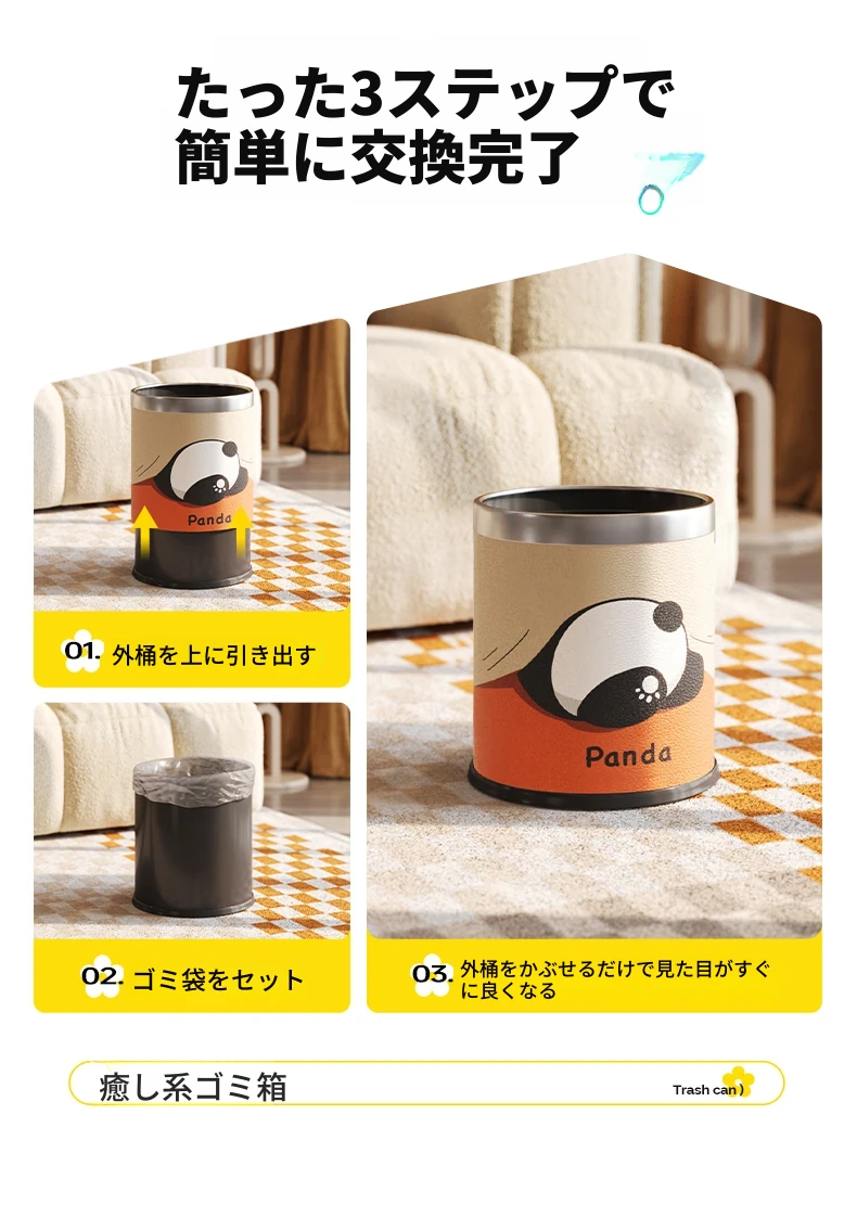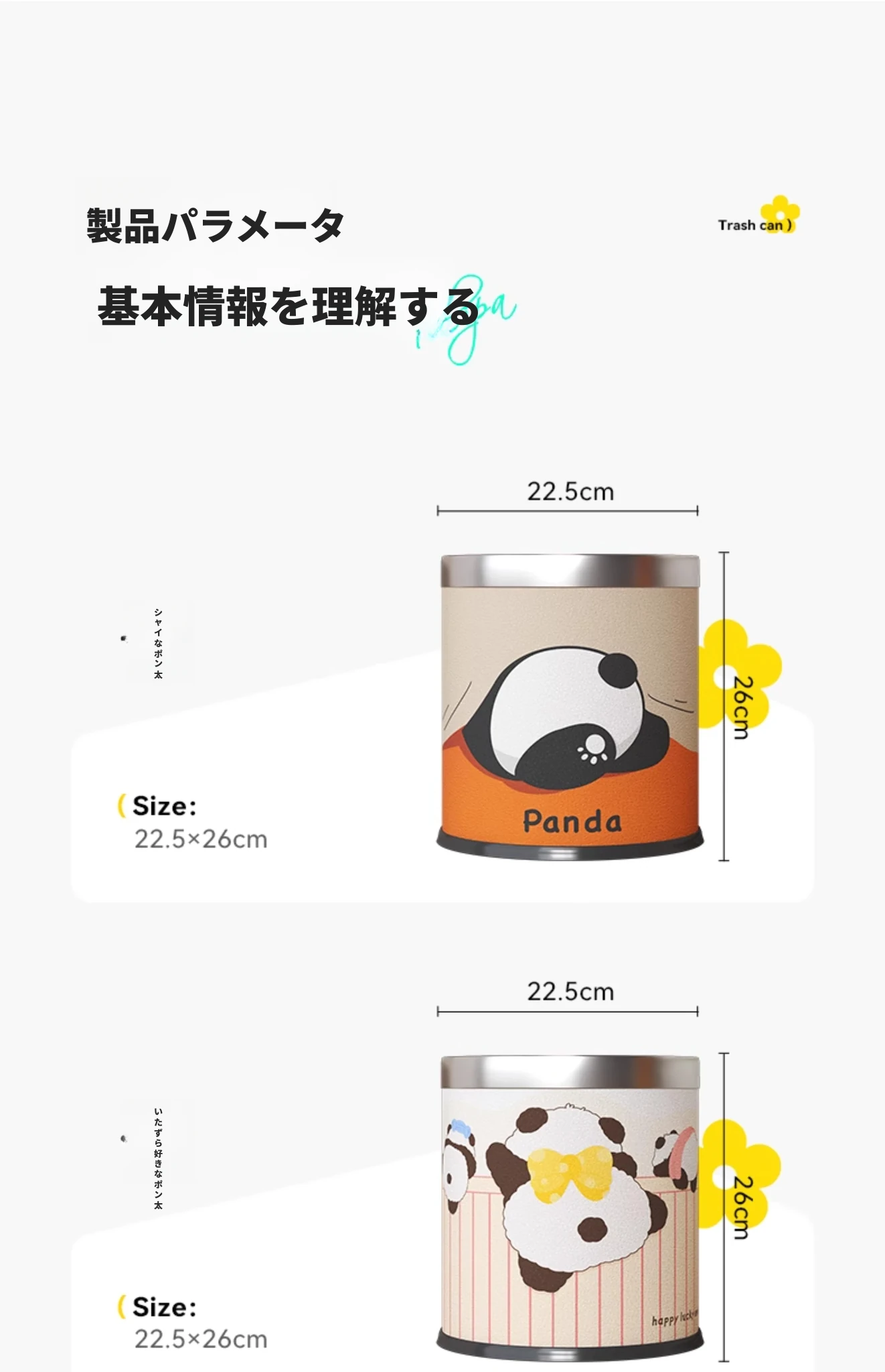 美世达パンダゴミ箱|家庭用・リビング・寝室にぴったりな大容量デザイン!おしゃれで高品質な玩具収納バケツで、お部屋をスッキリ整頓。あなたの空間に魅力をプラス!