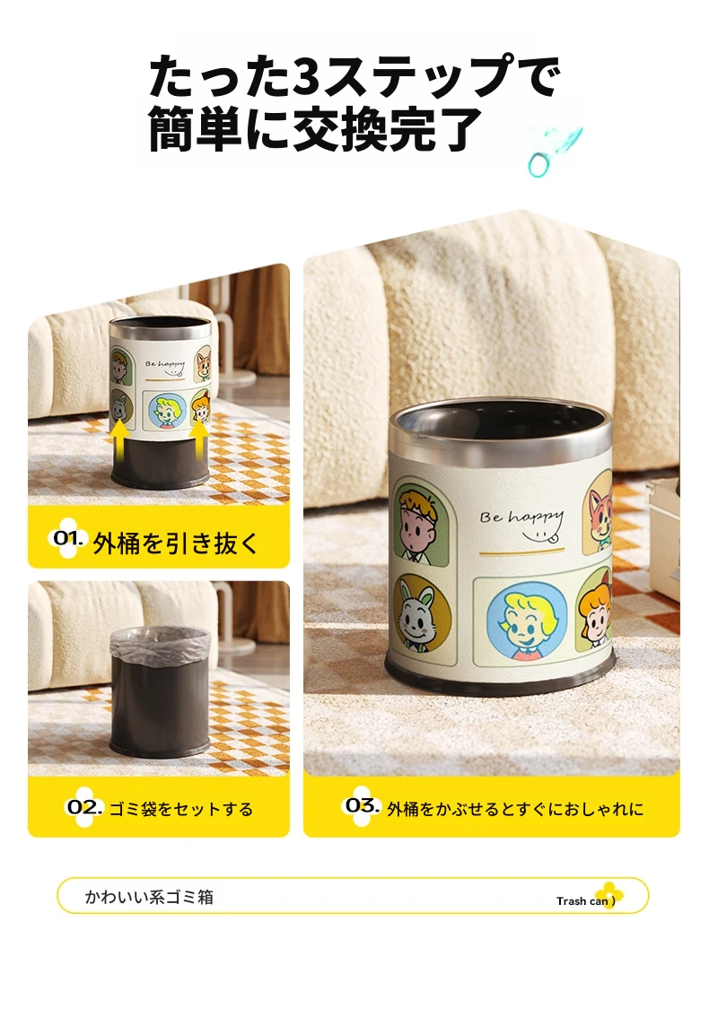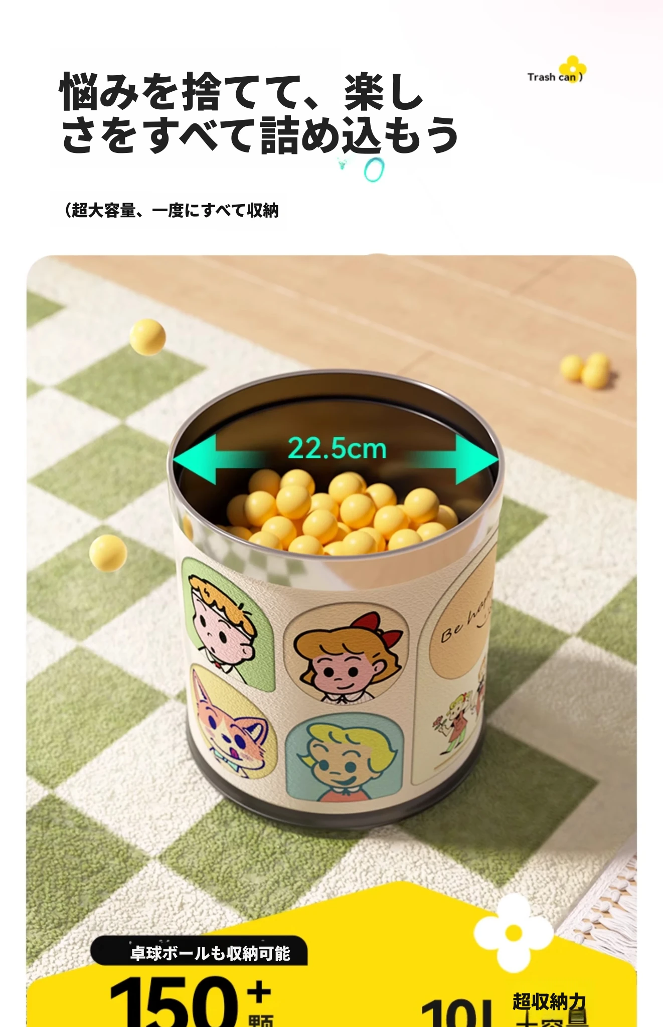 ミスターダカートゥーン可愛いゴミ箱2025新モデル!リビングや寝室にぴったりな大容量のクリエイティブデザインで、おしゃれな空間を演出します。