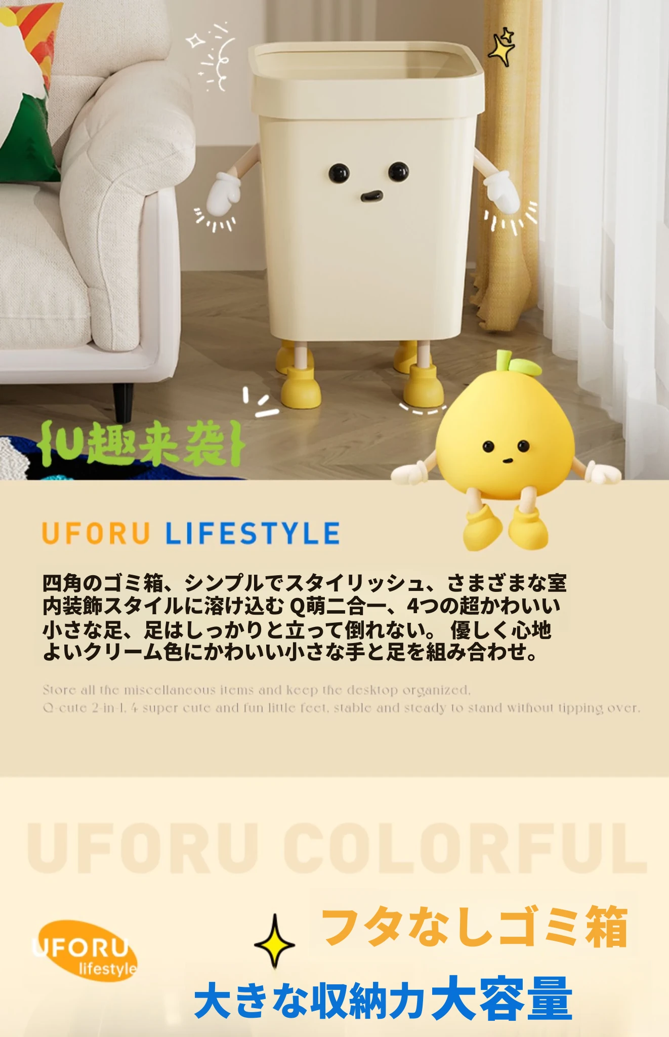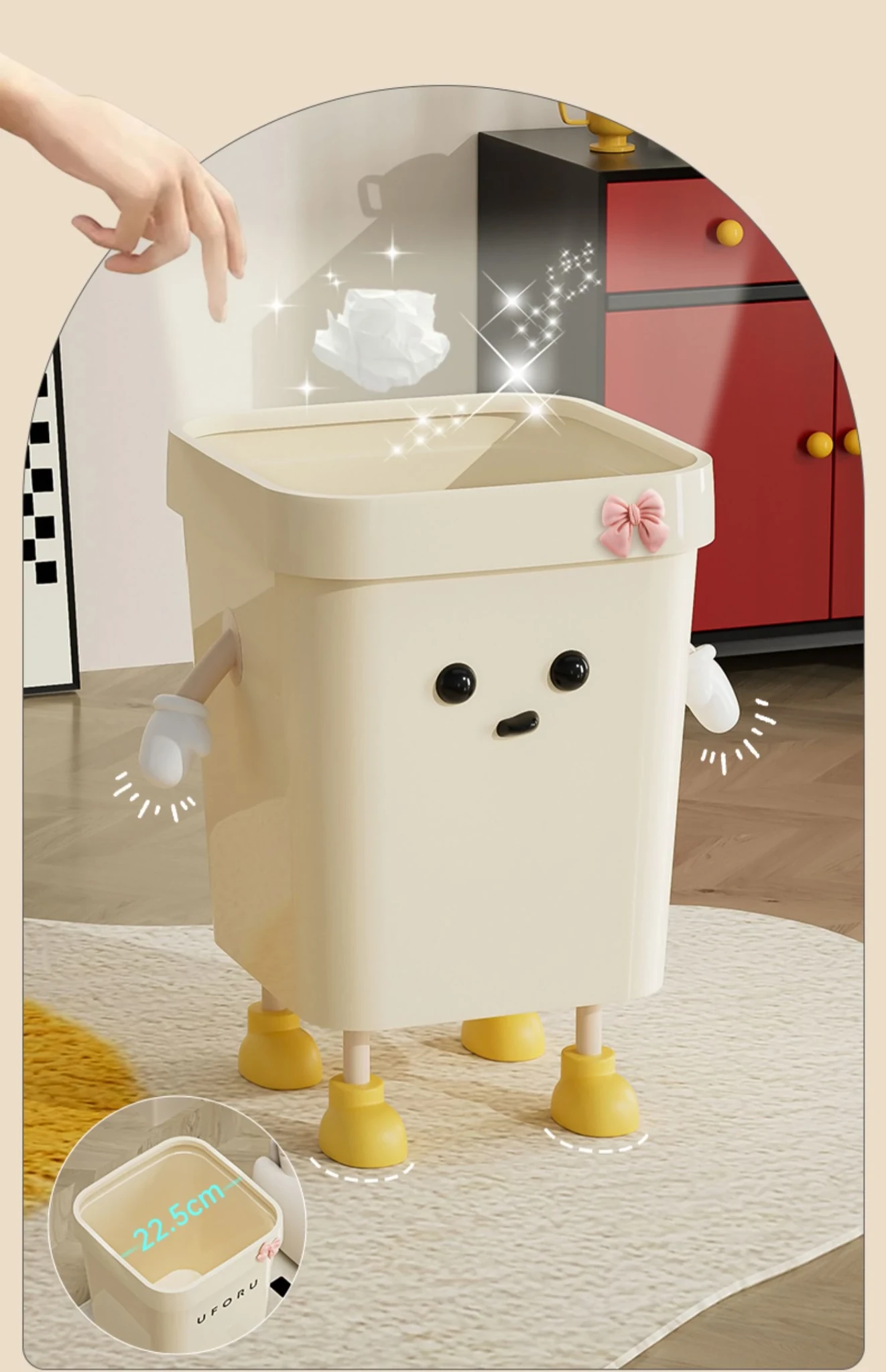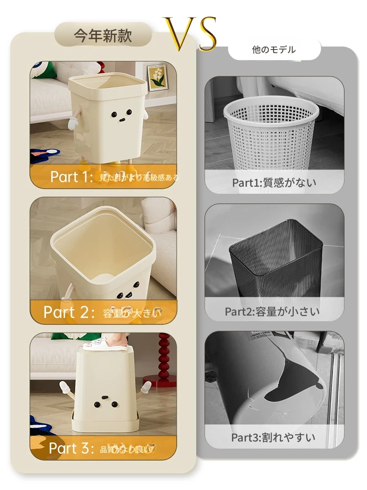 可愛いデザインの大容量ゴミ箱!美世达の家庭用カラフルカートゥーンペーパーバスケット - 寝室、リビング、トイレに最適!おしゃれで実用的、あなたのスペースを華やかに演出します。