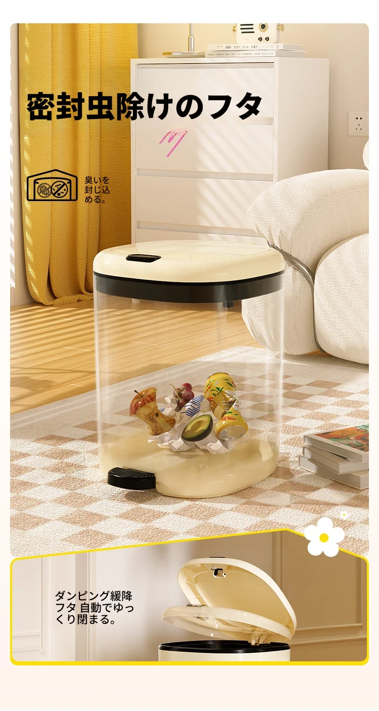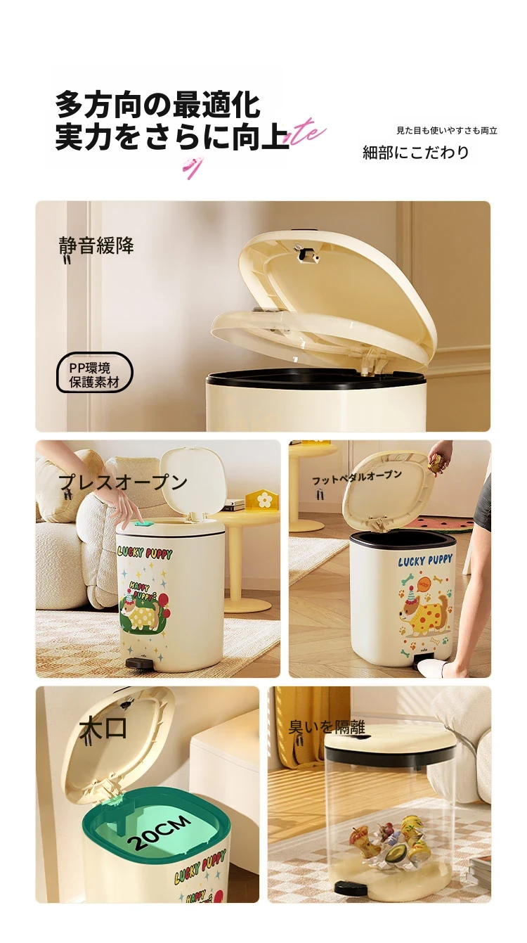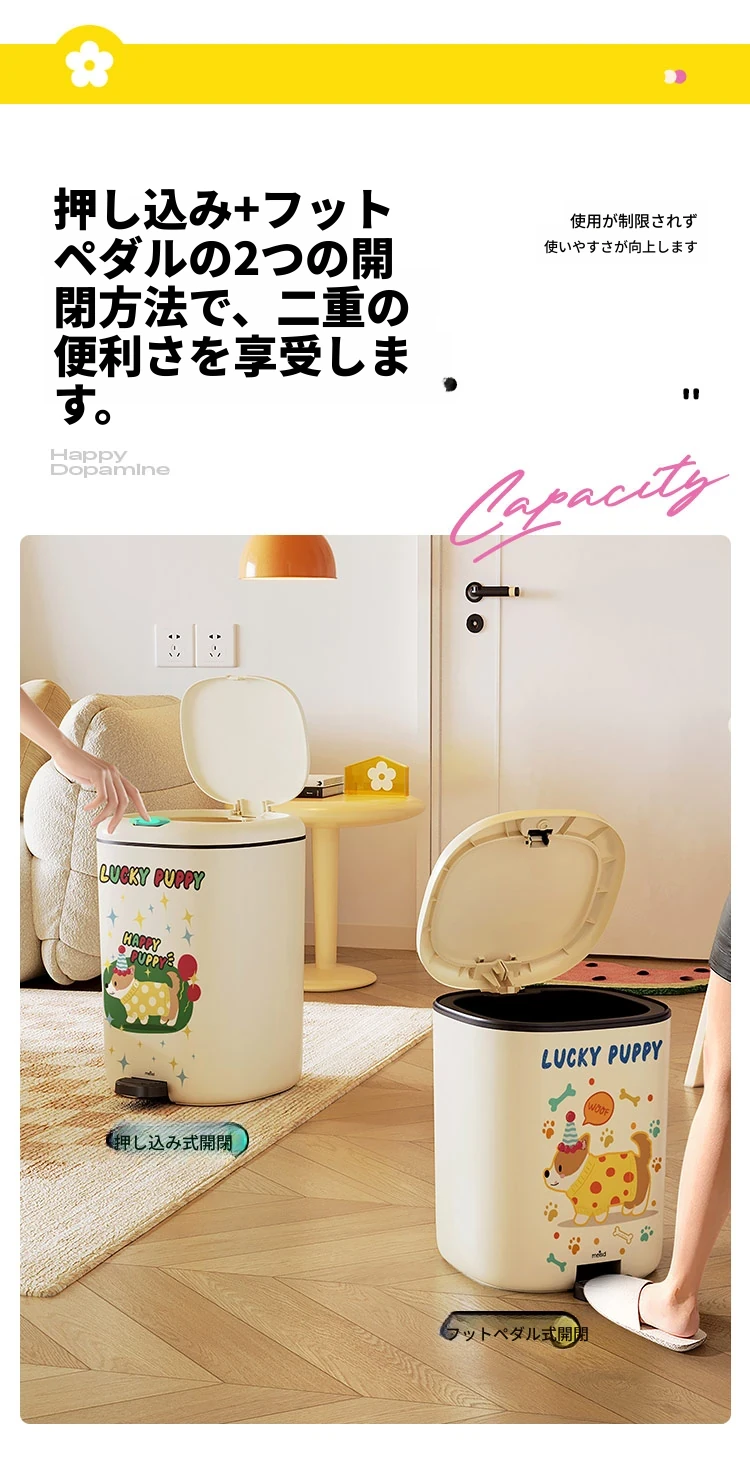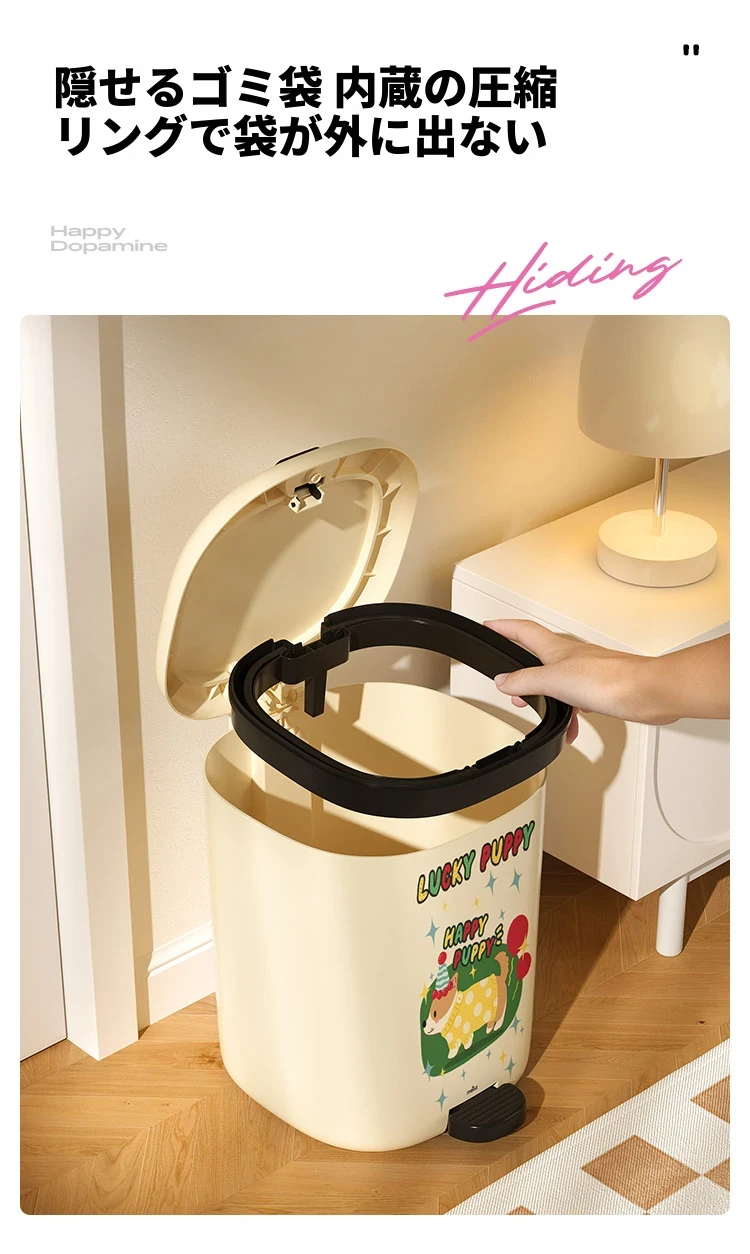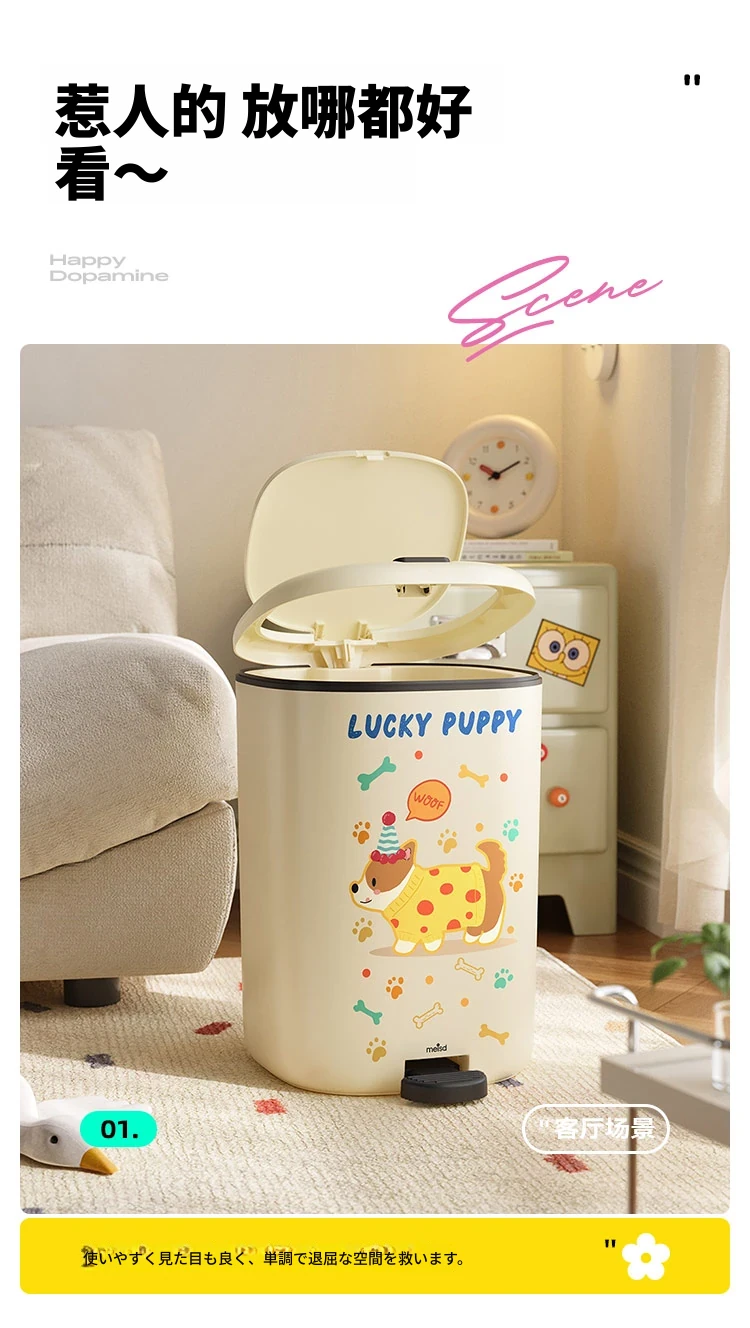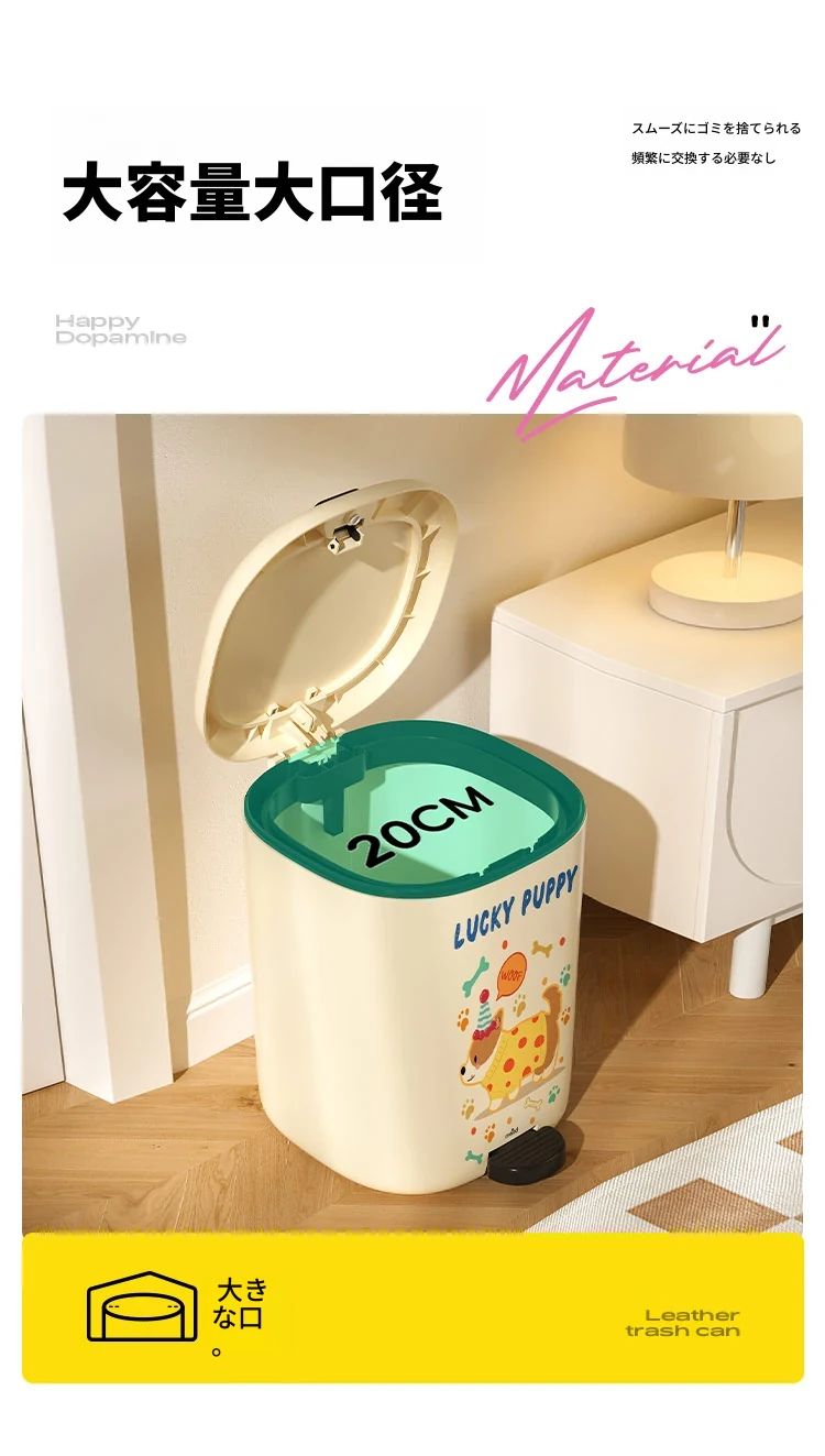 美世达デザイン蓋付きゴミ箱 - 足踏み式大容量、リビングにぴったりのかわいい高級感!新しいドーパミン効果でお部屋を明るく、清潔感をアップ!