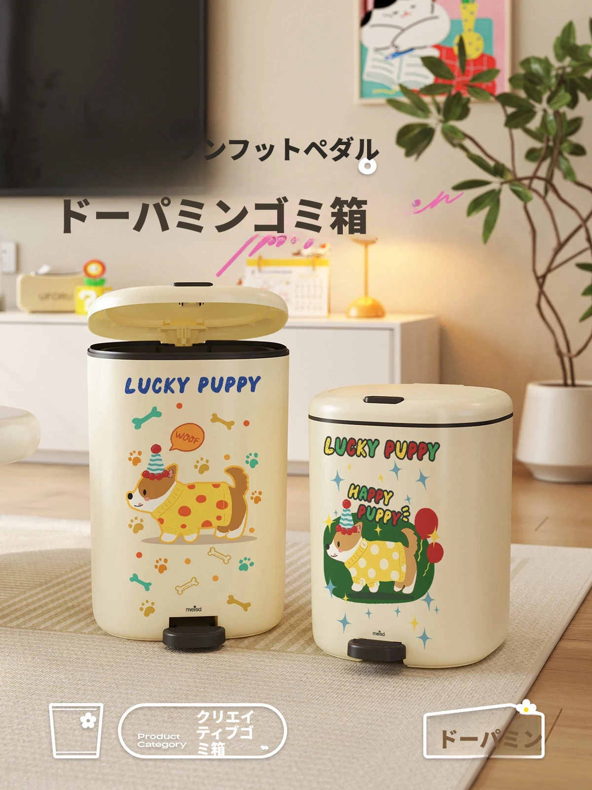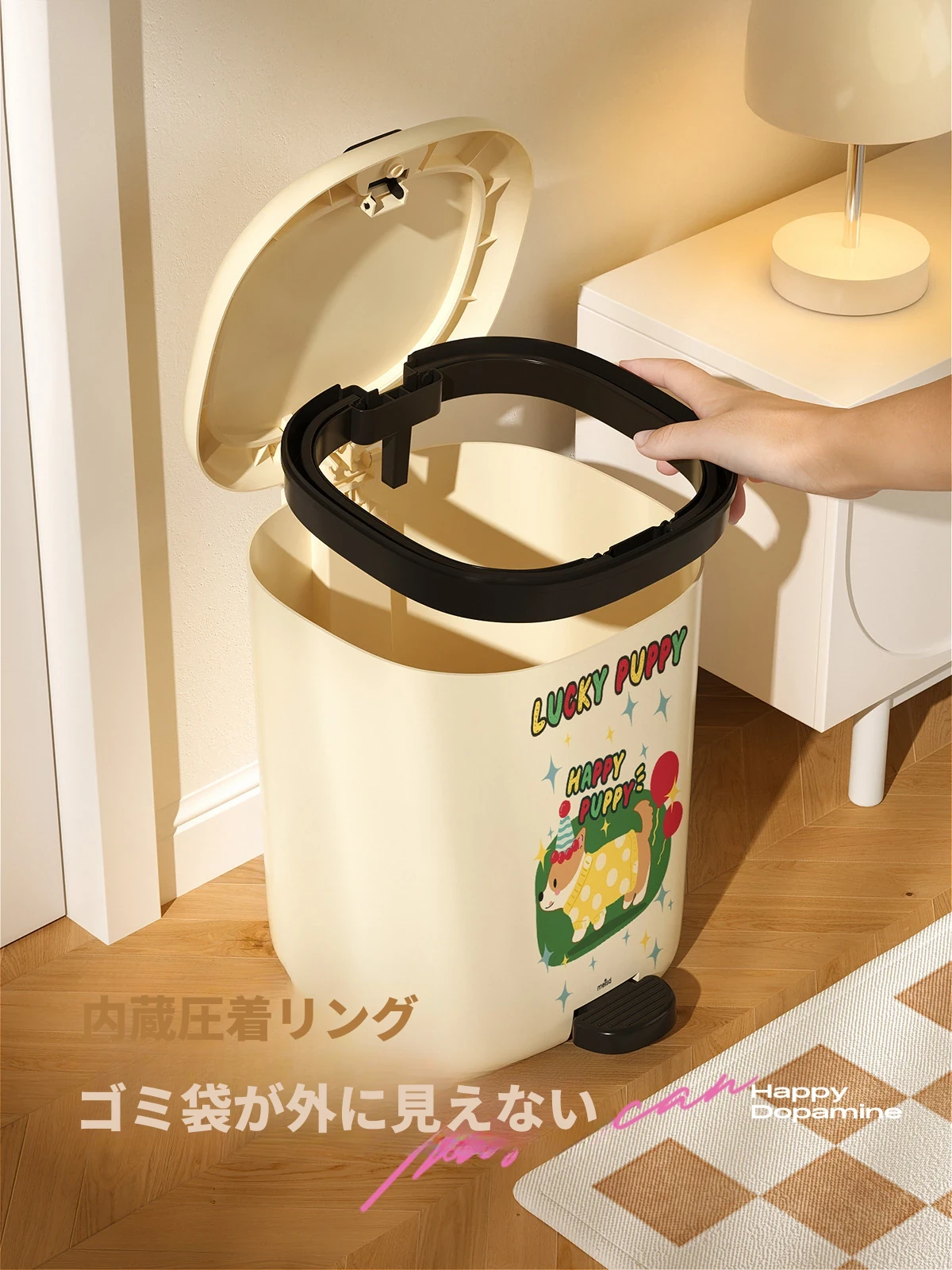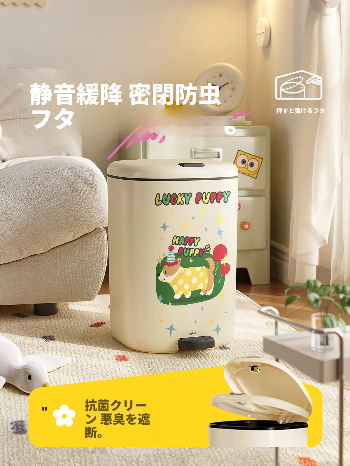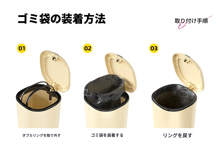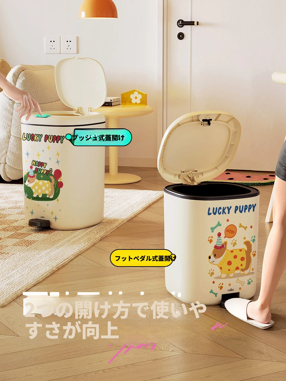 美世达デザイン蓋付きゴミ箱 - 足踏み式大容量、リビングにぴったりのかわいい高級感!新しいドーパミン効果でお部屋を明るく、清潔感をアップ!