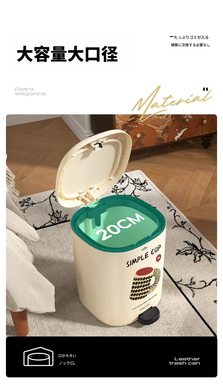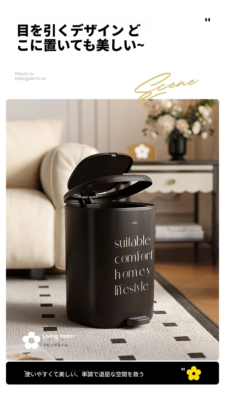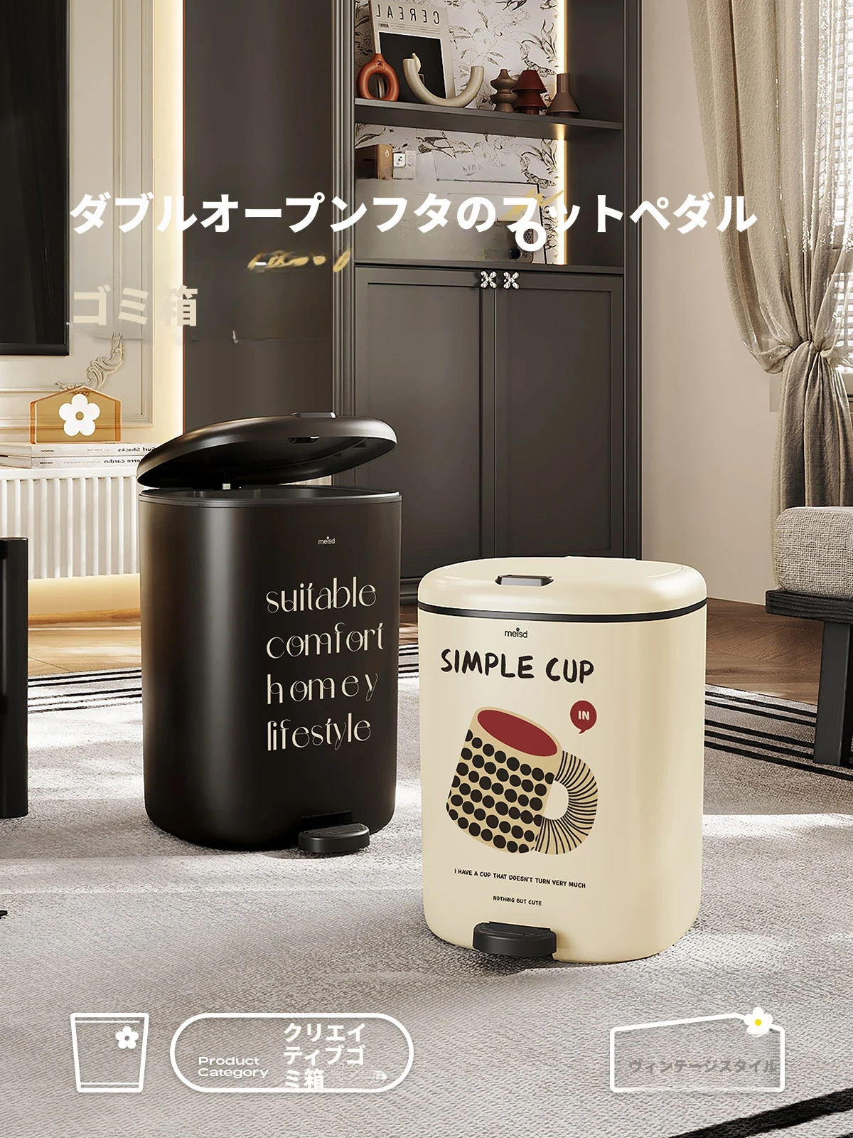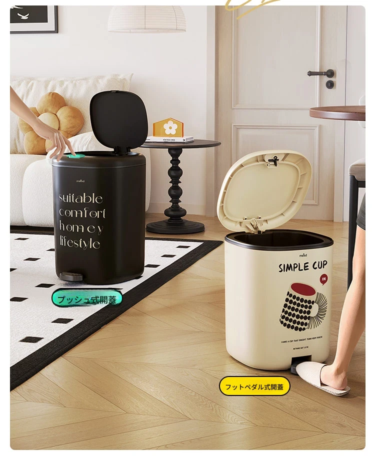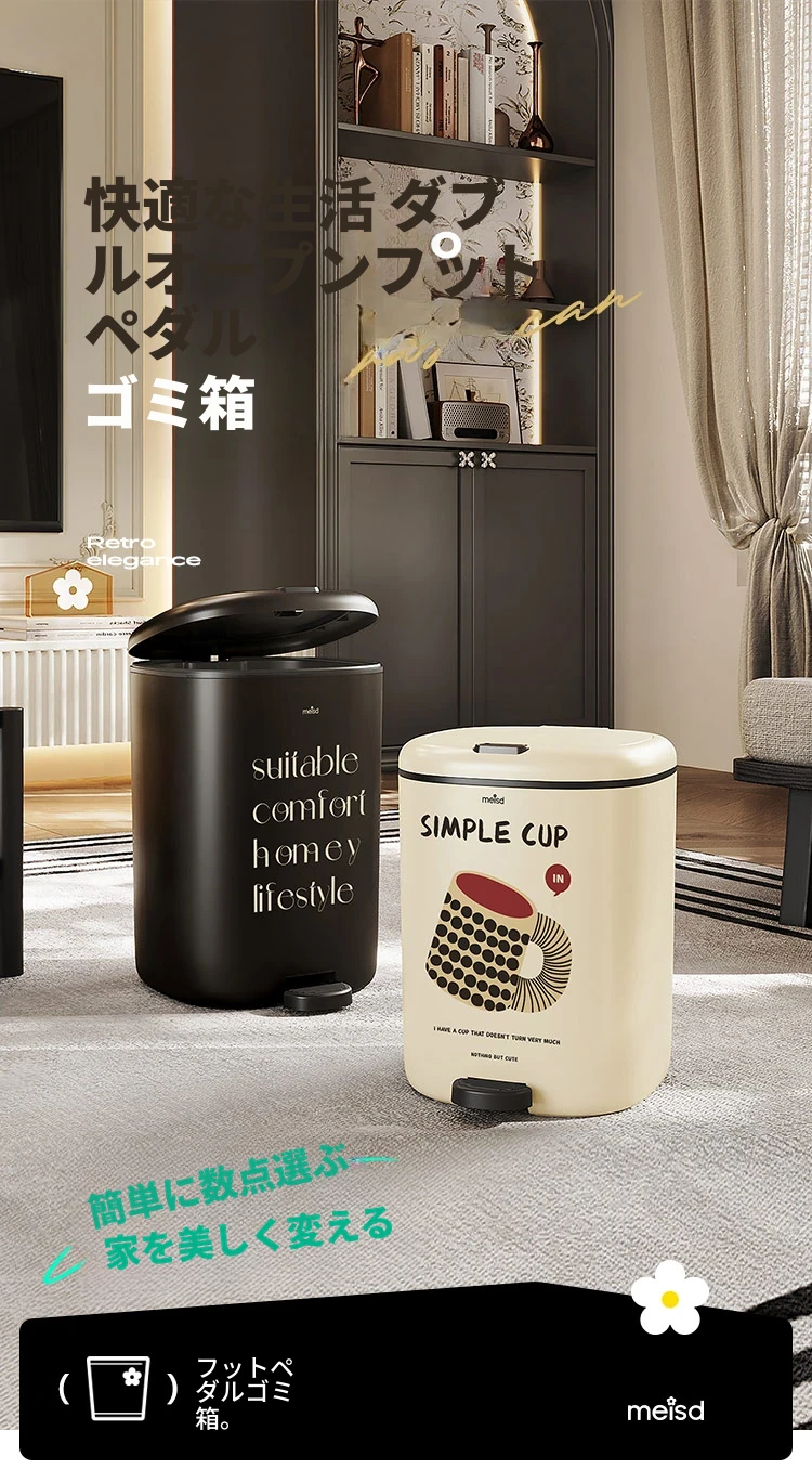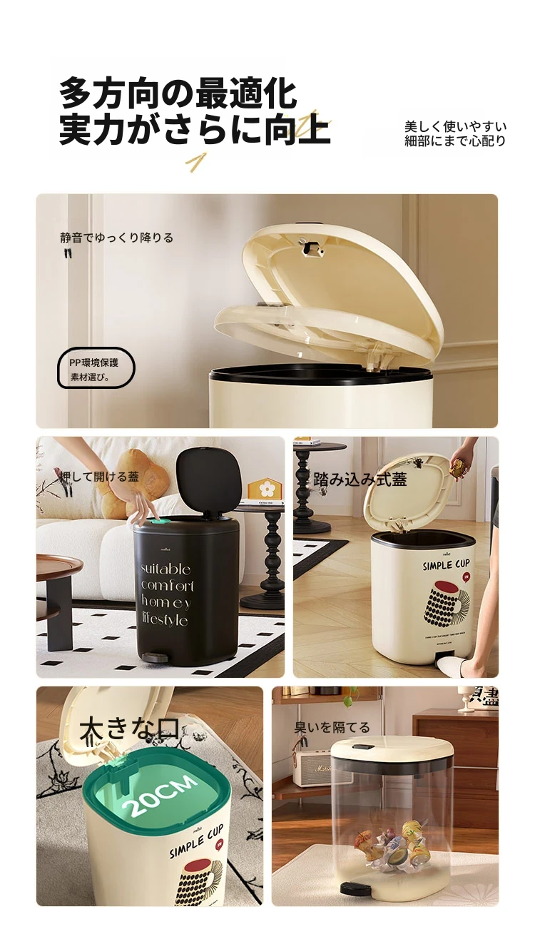 美世达フットペダル式ゴミ箱|家庭用・リビング・寝室に最適な蓋付き大容量ゴミ箱|スタイリッシュでインスタ映えするシンプルデザイン!