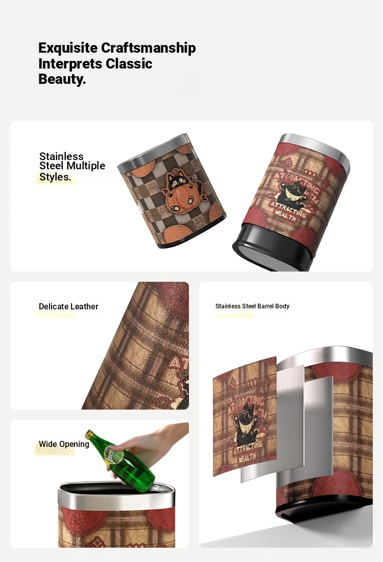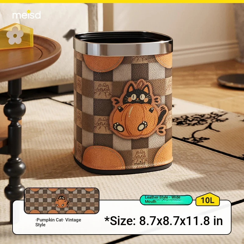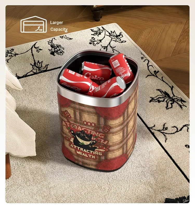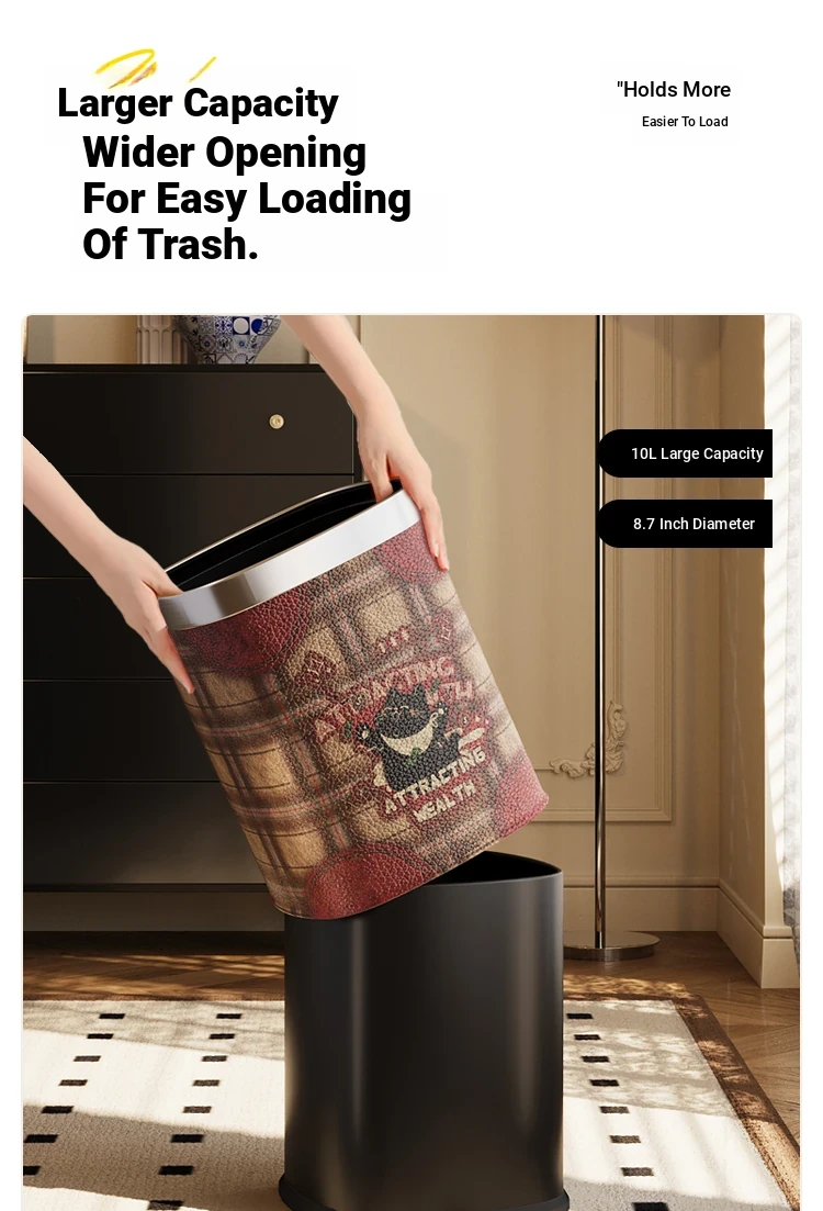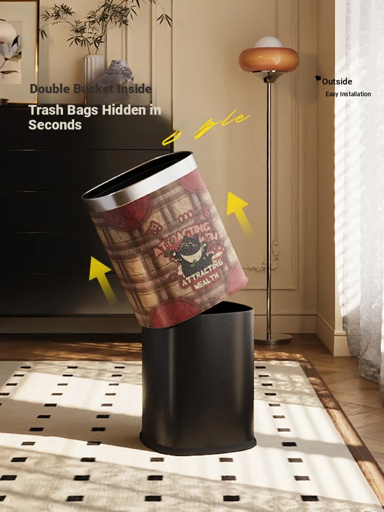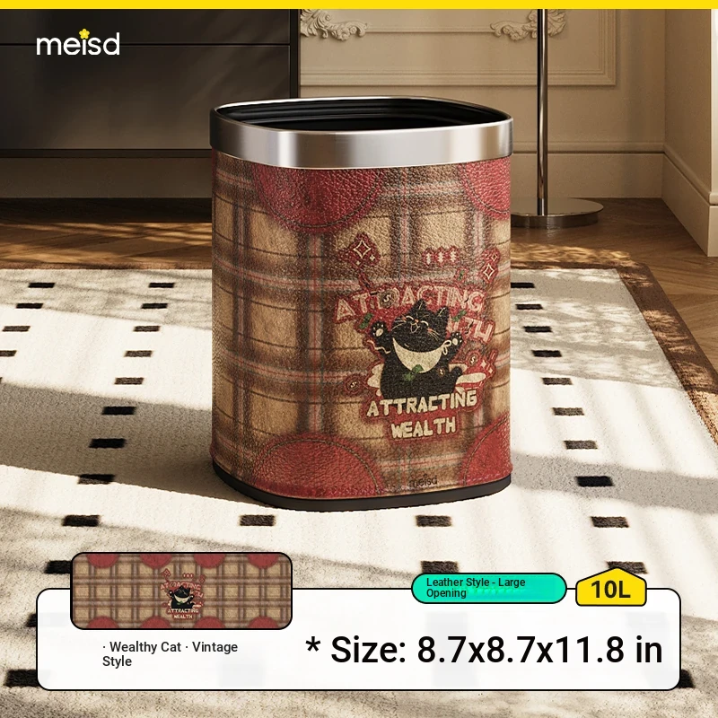 Stylish Meisida Stainless Steel Trash Can - Vintage Design for Home Use, Large Capacity Double-Layer Waste Bin for Bedroom and Living Room