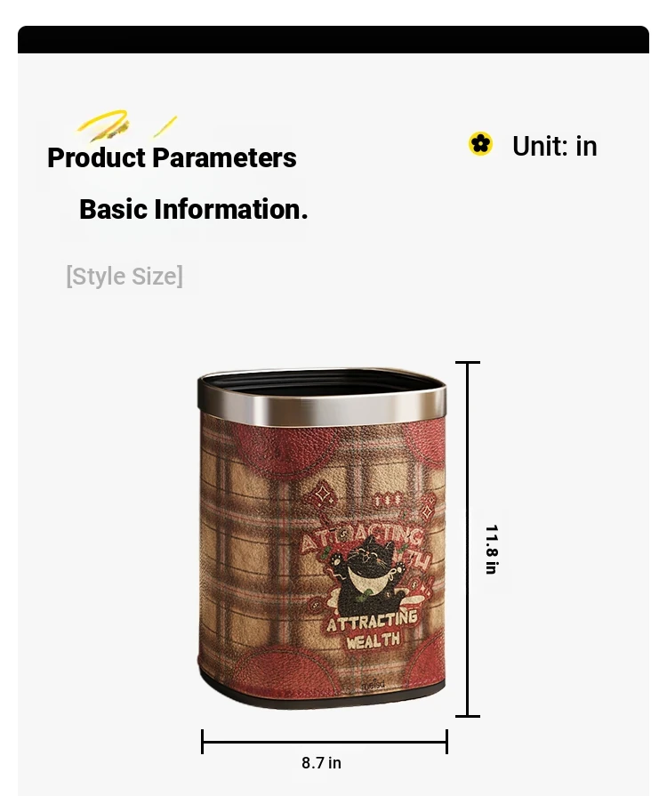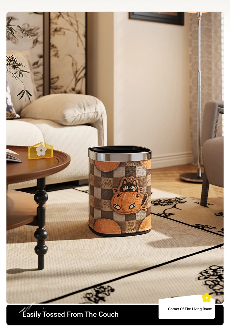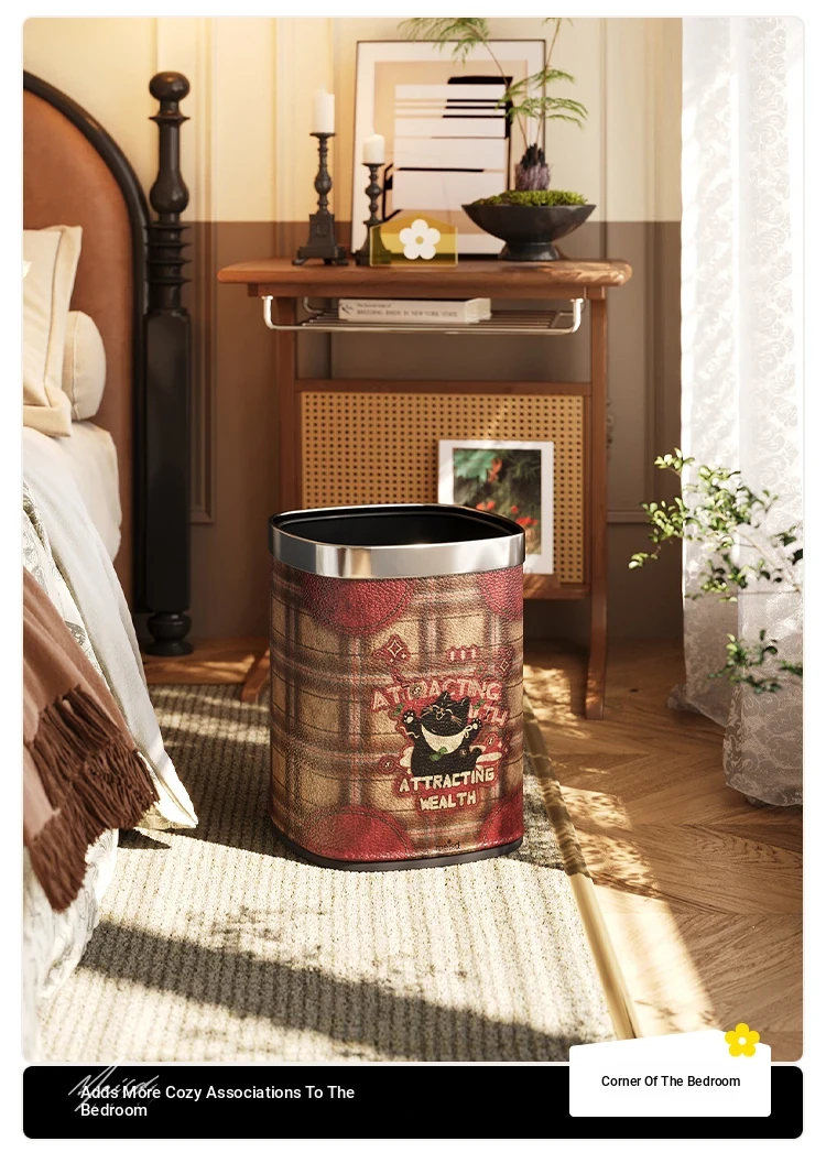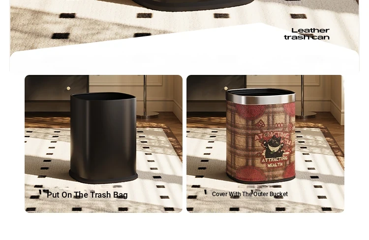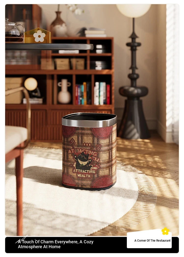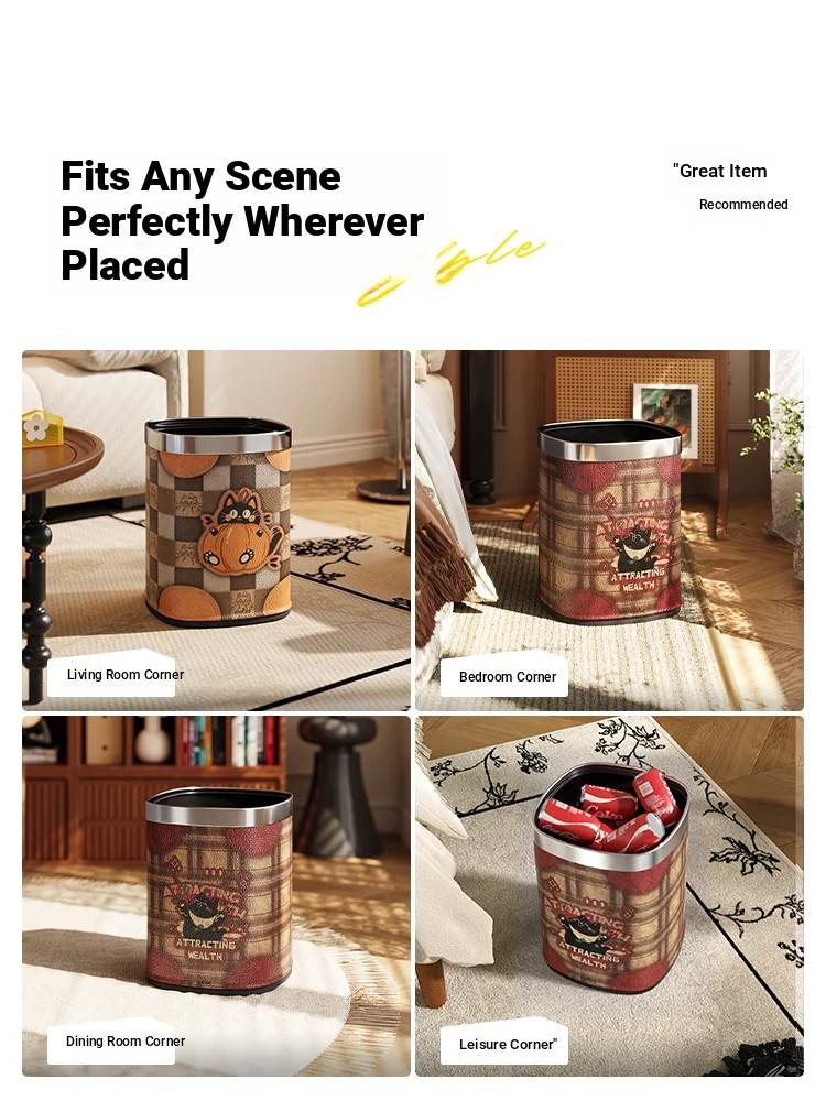 Stylish Meisida Stainless Steel Trash Can - Vintage Design for Home Use, Large Capacity Double-Layer Waste Bin for Bedroom and Living Room