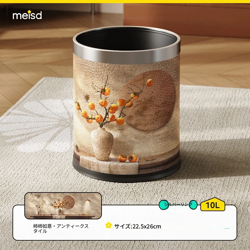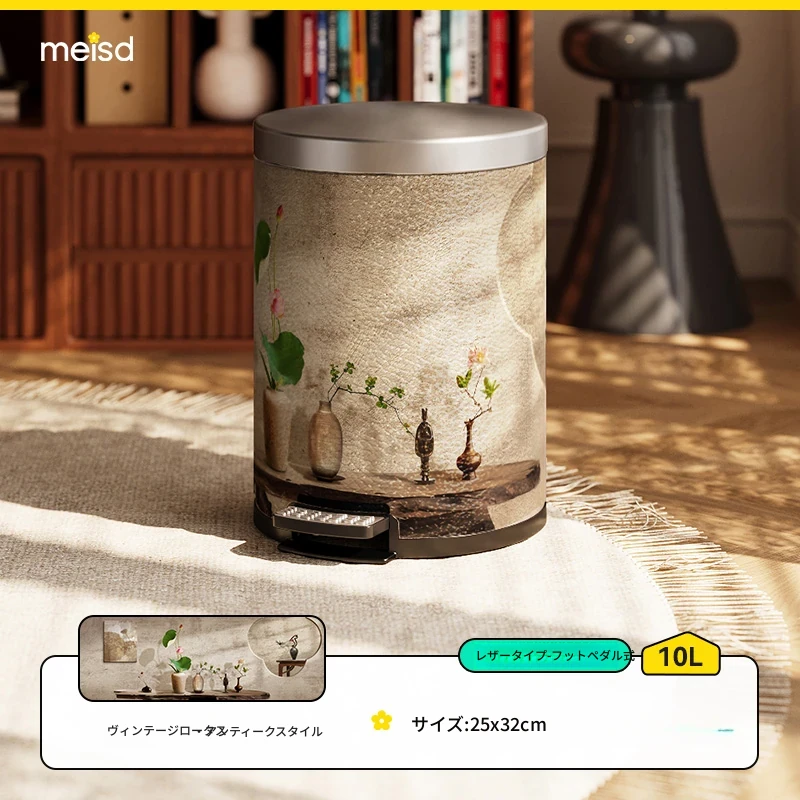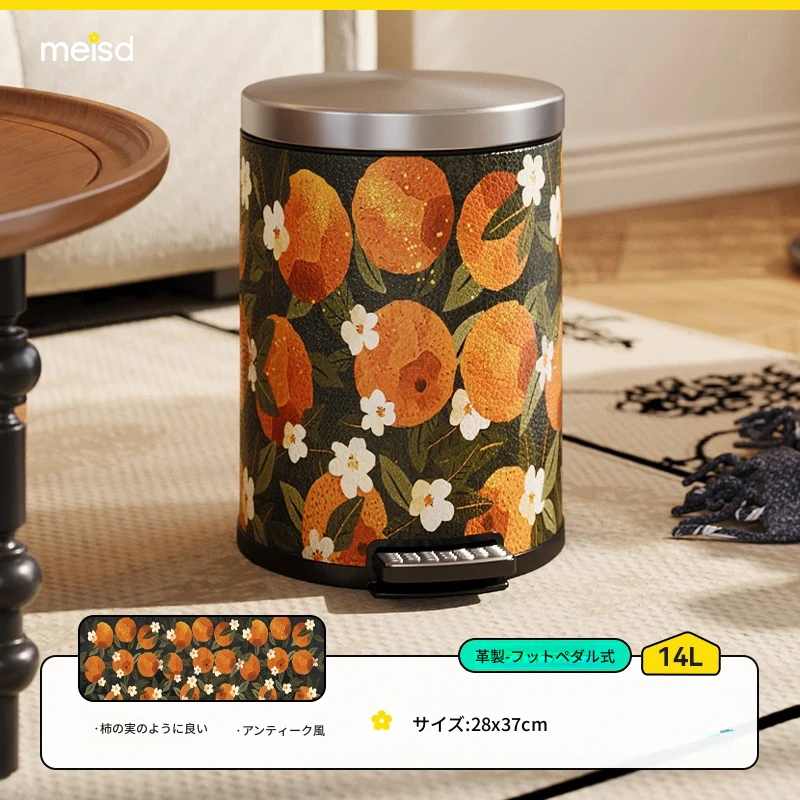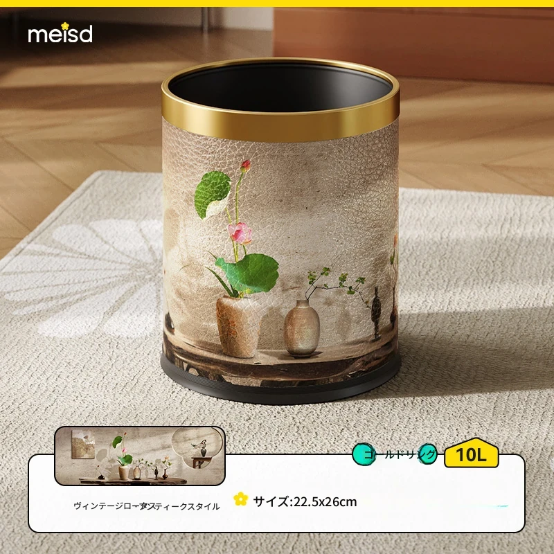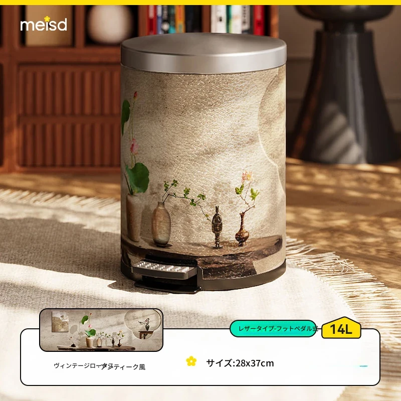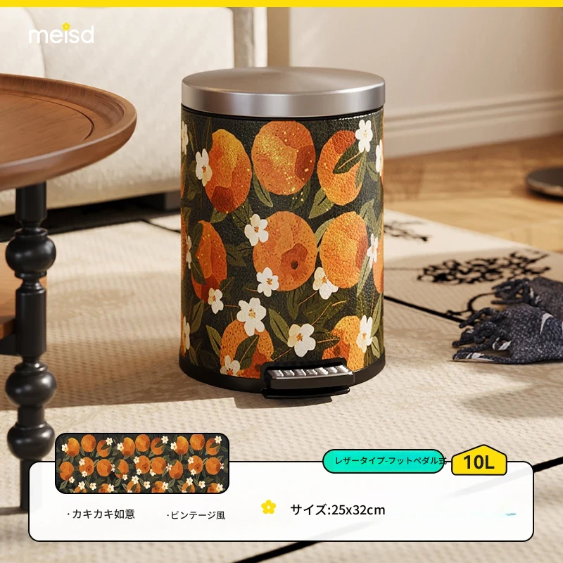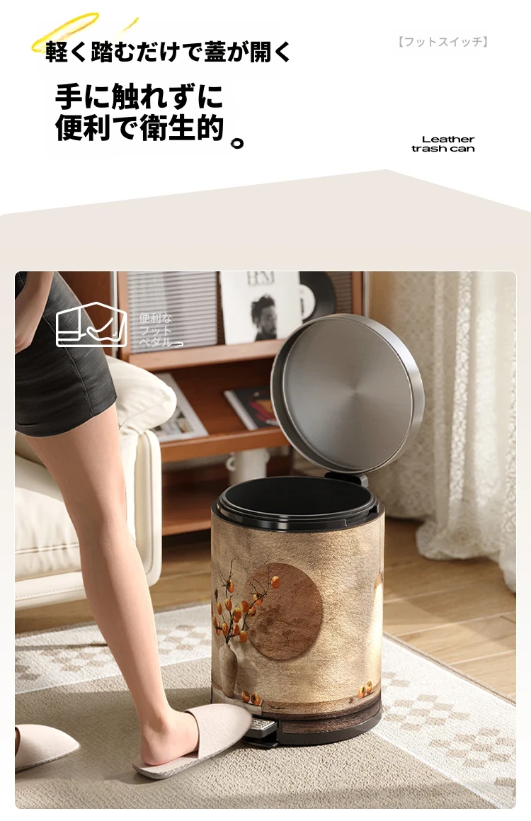 美世达のステンレススチールレザーゴミ箱|おしゃれで高級感溢れる中古風デザイン|家用・トイレに最適な大容量タイプ|美しい空間を演出する必須アイテム!
