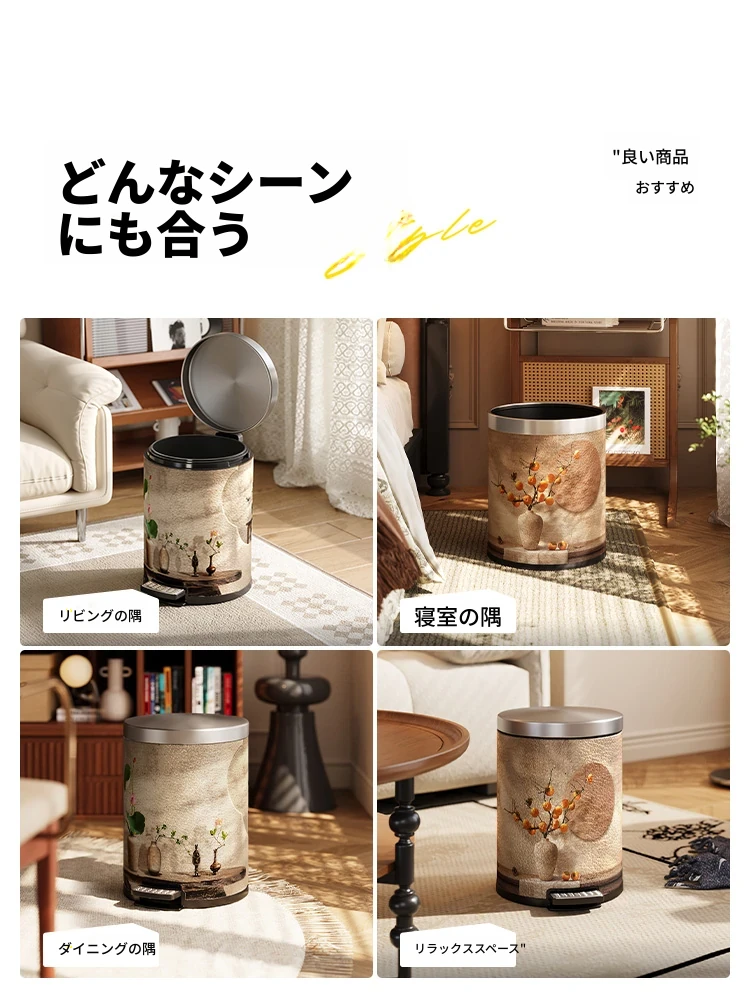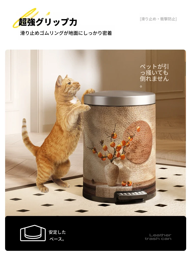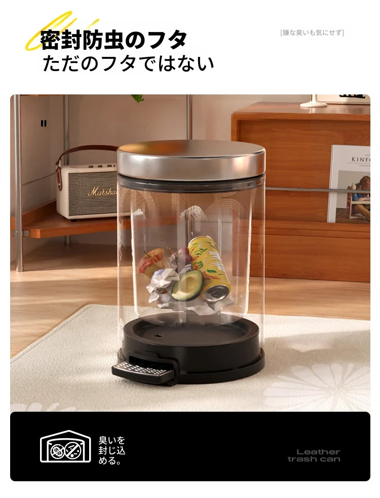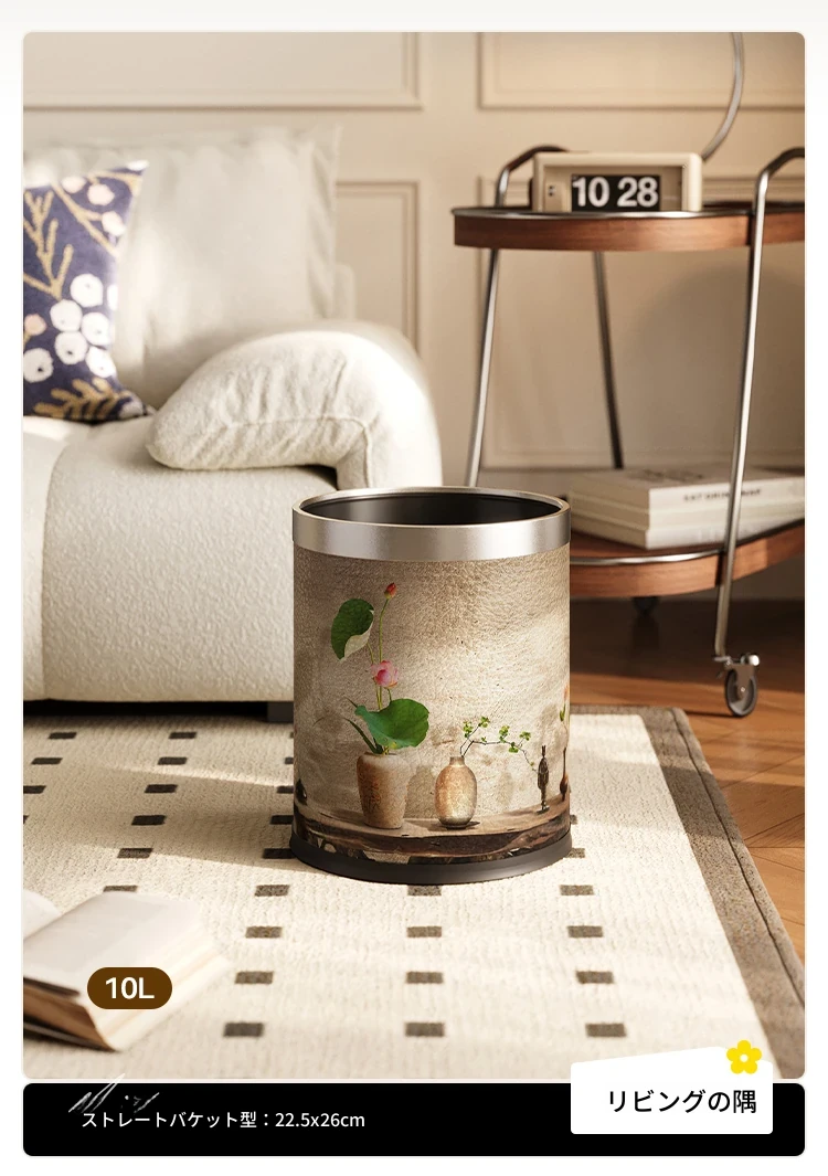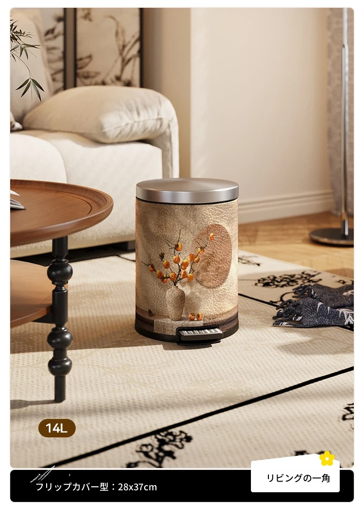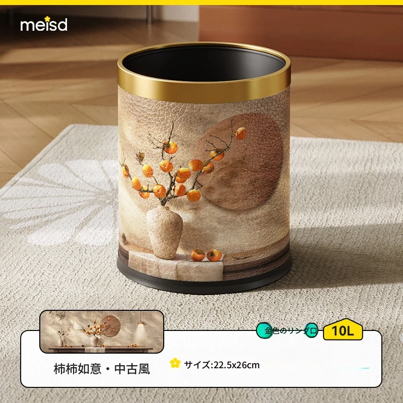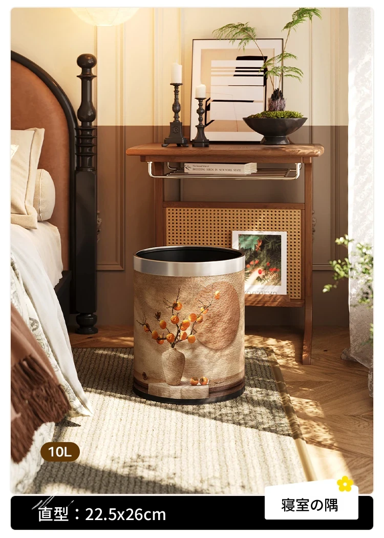 美世达のステンレススチールレザーゴミ箱|おしゃれで高級感溢れる中古風デザイン|家用・トイレに最適な大容量タイプ|美しい空間を演出する必須アイテム!