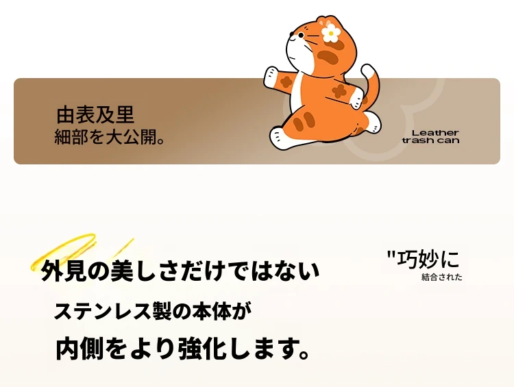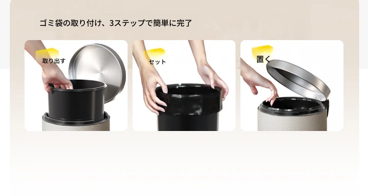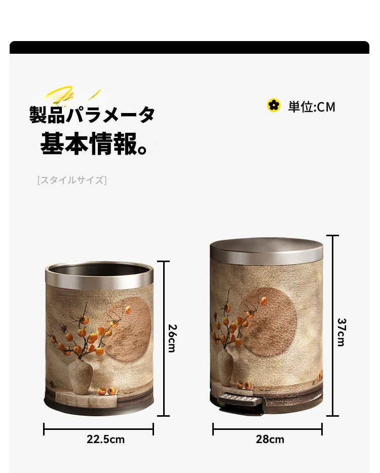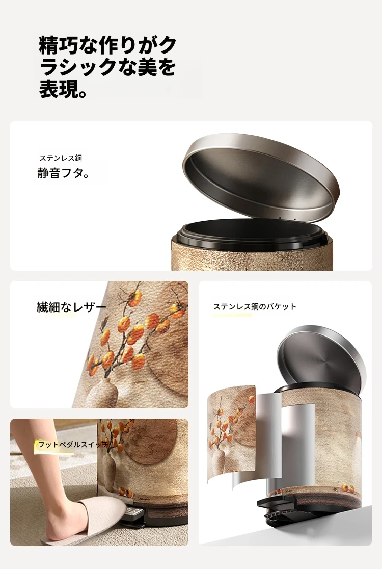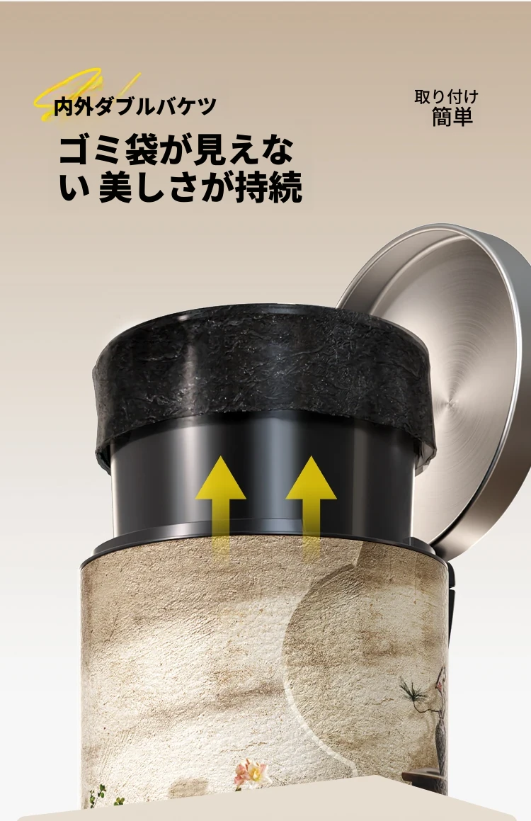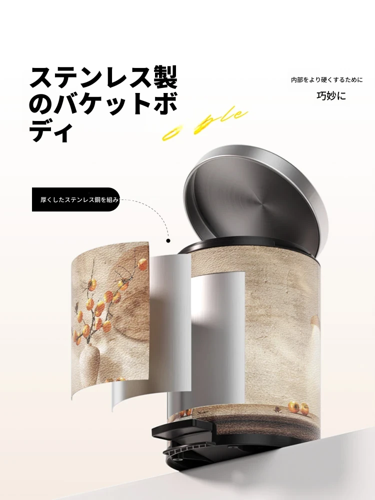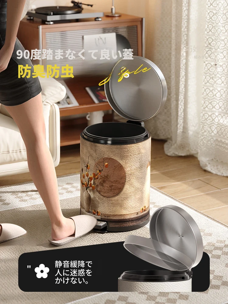美世达のステンレススチールレザーゴミ箱|おしゃれで高級感溢れる中古風デザイン|家用・トイレに最適な大容量タイプ|美しい空間を演出する必須アイテム!