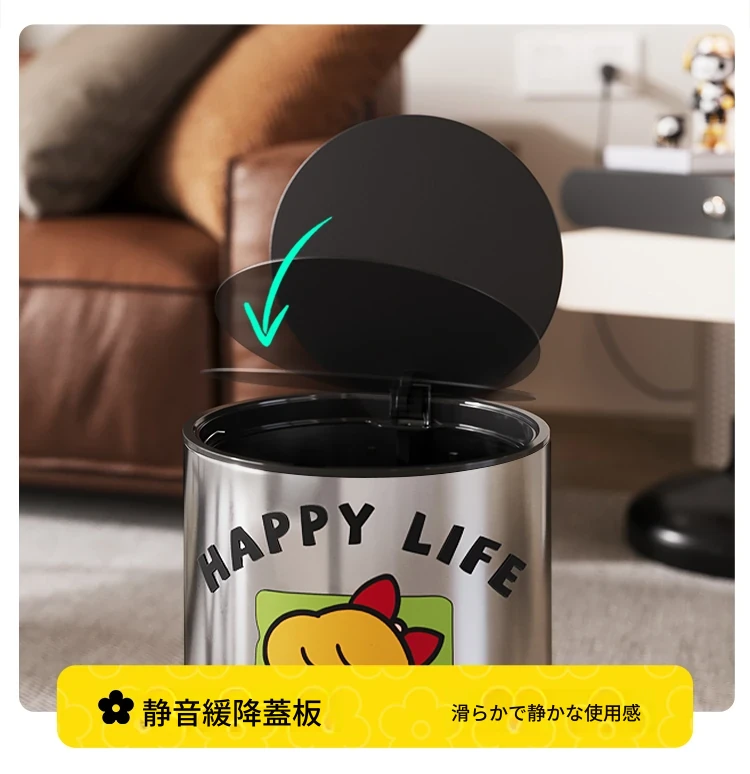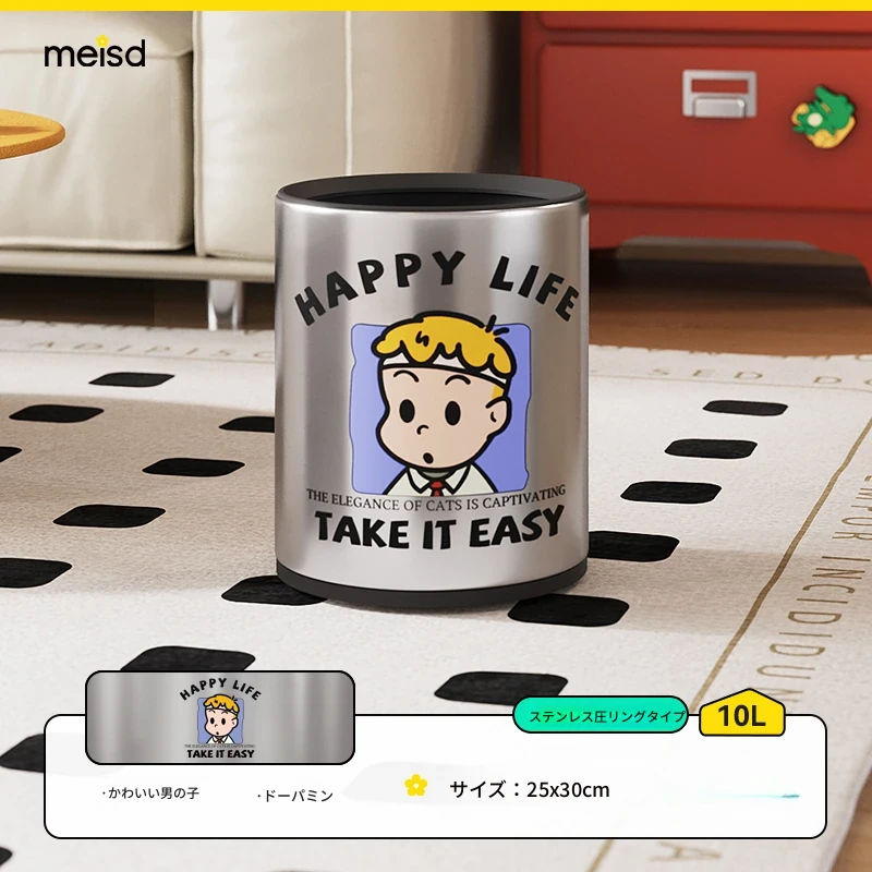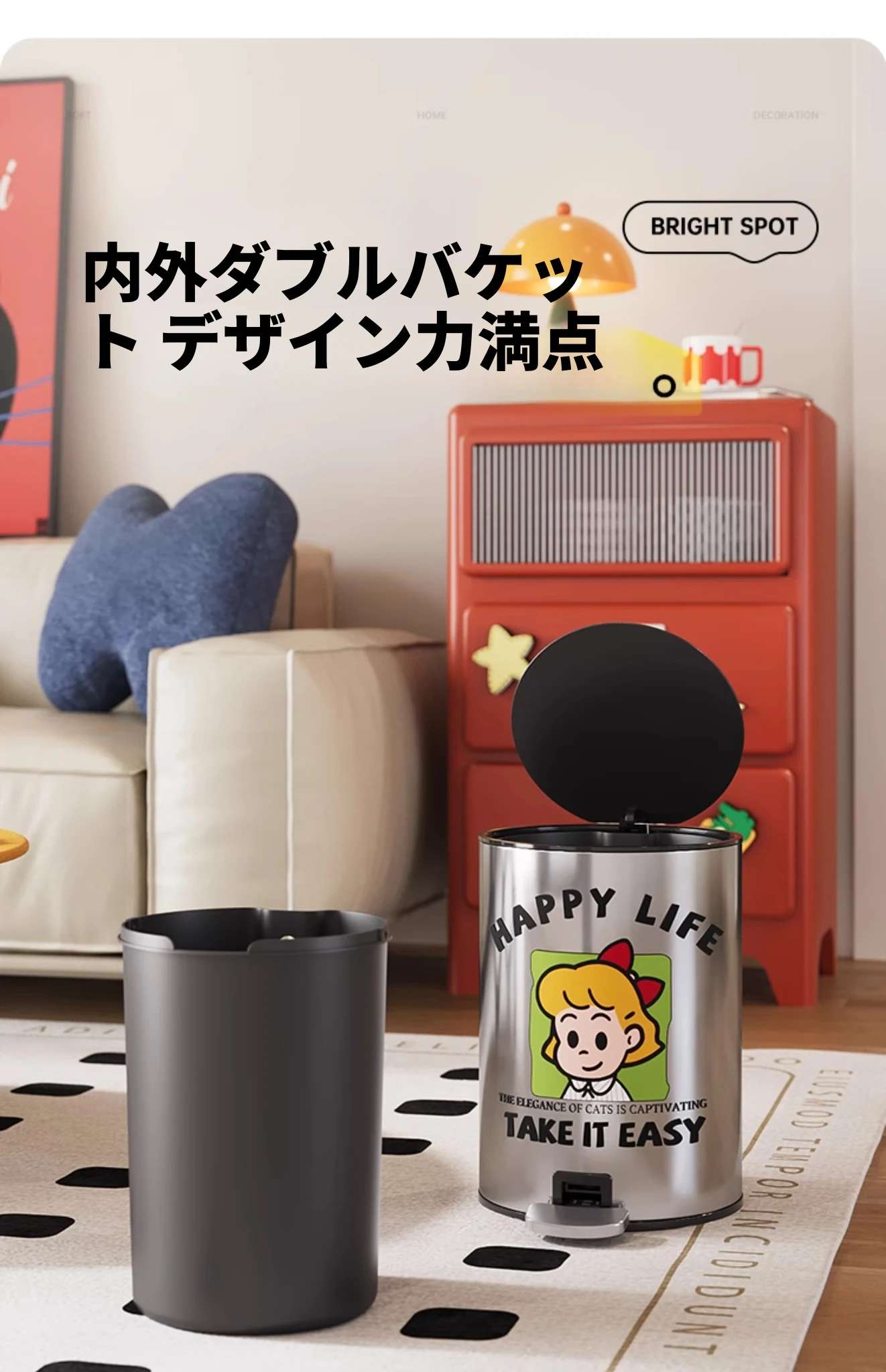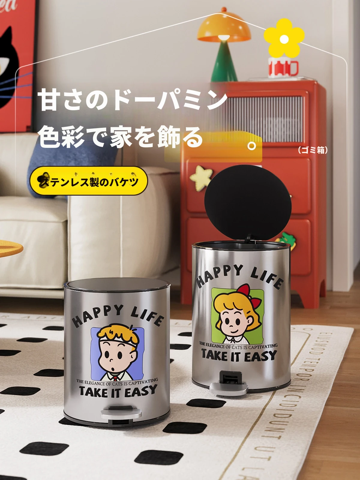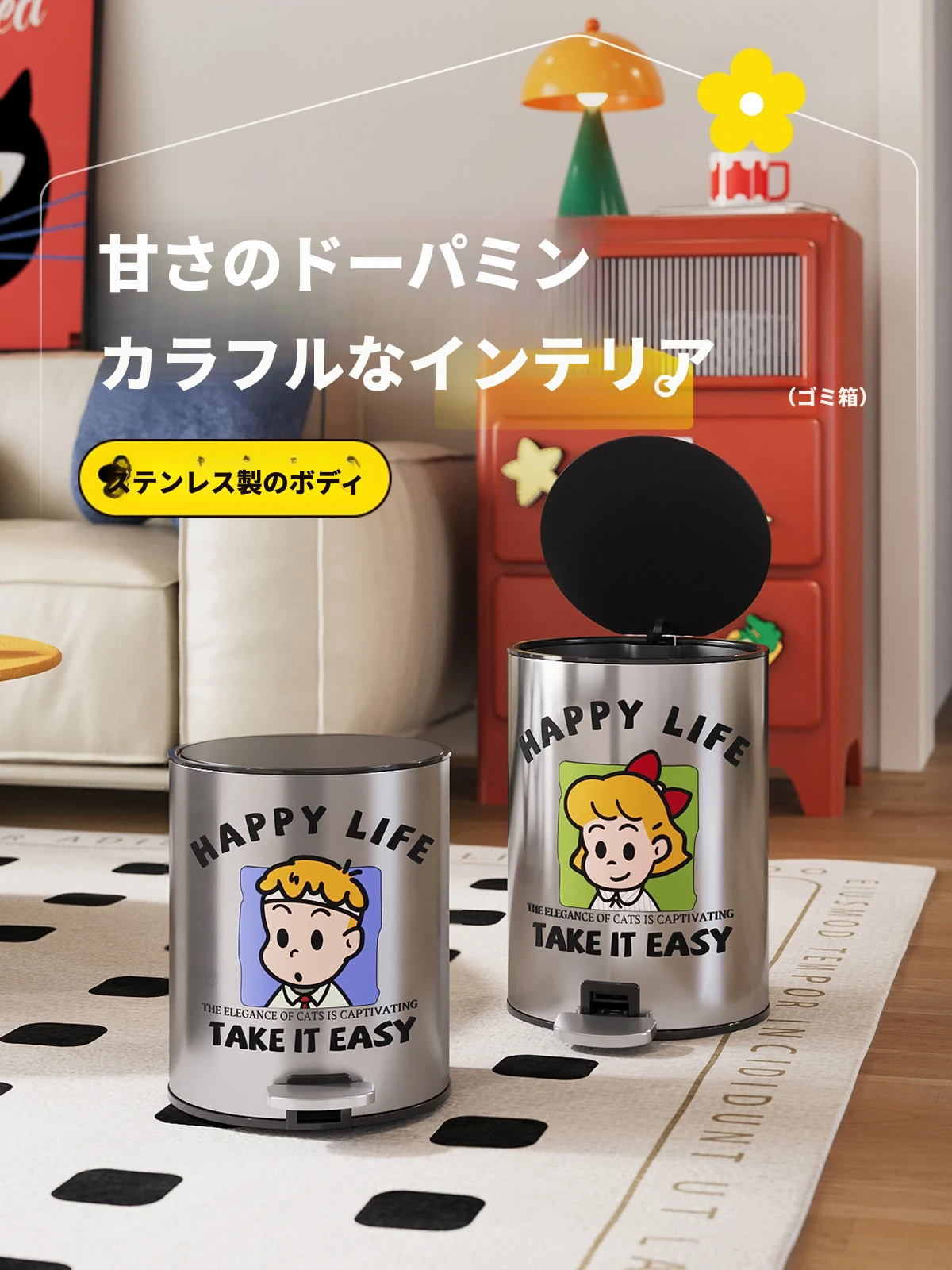 美世达ステンレス製ゴミ箱 高級感溢れるカートゥーンデザイン 2025年新作 リビングや寝室に最適な大容量フタ付きゴミ箱