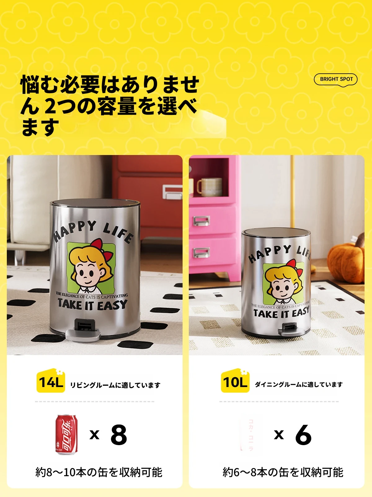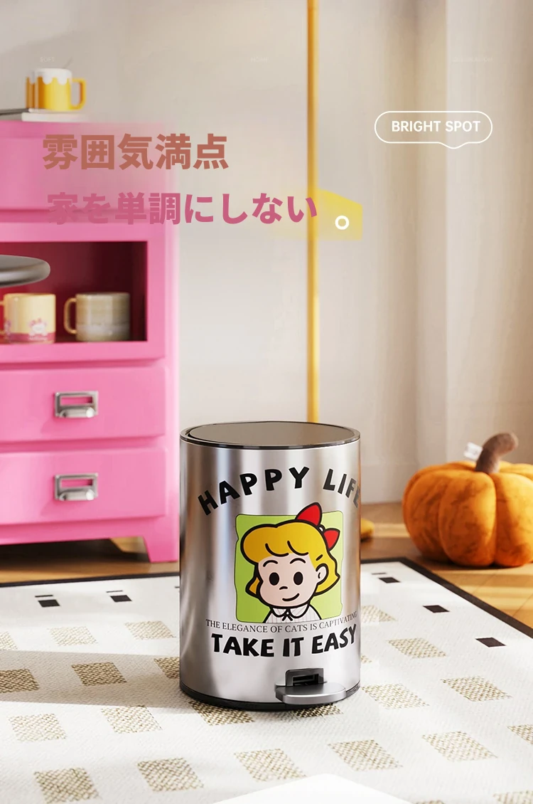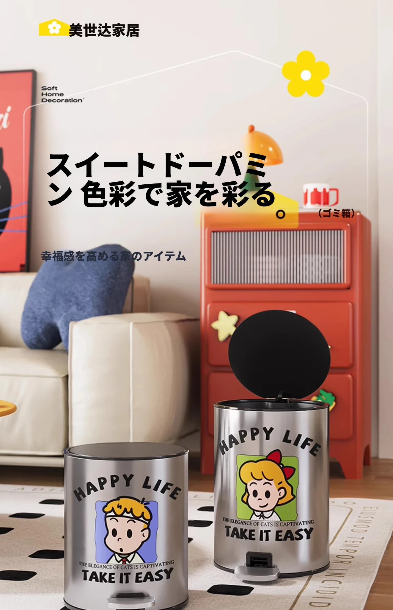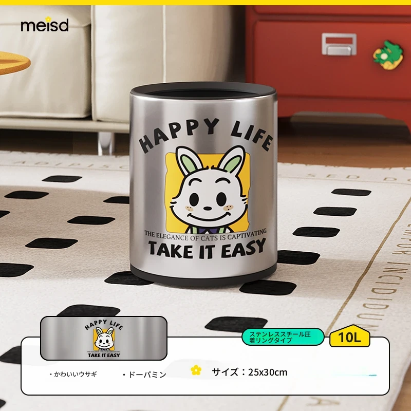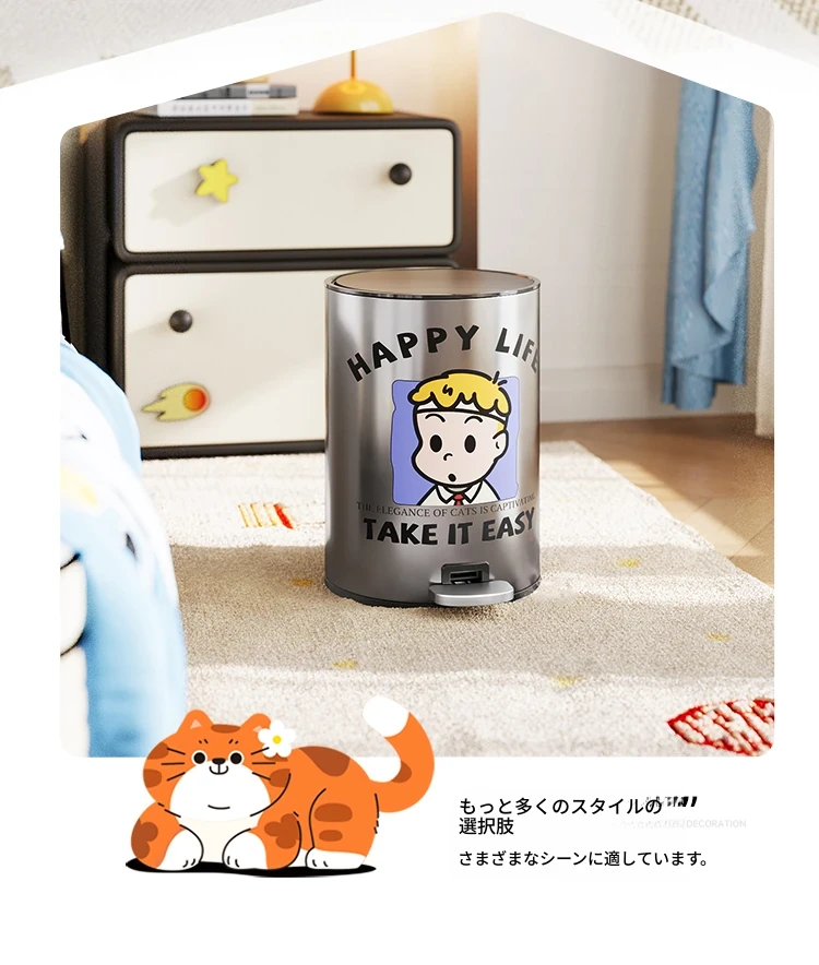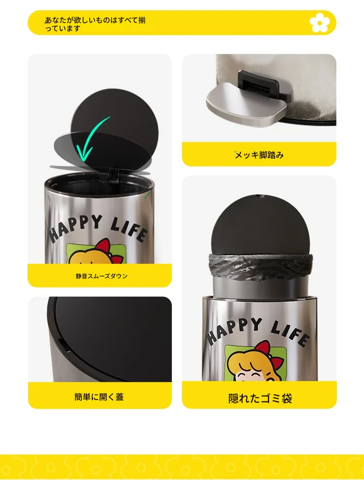 美世达ステンレス製ゴミ箱 高級感溢れるカートゥーンデザイン 2025年新作 リビングや寝室に最適な大容量フタ付きゴミ箱
