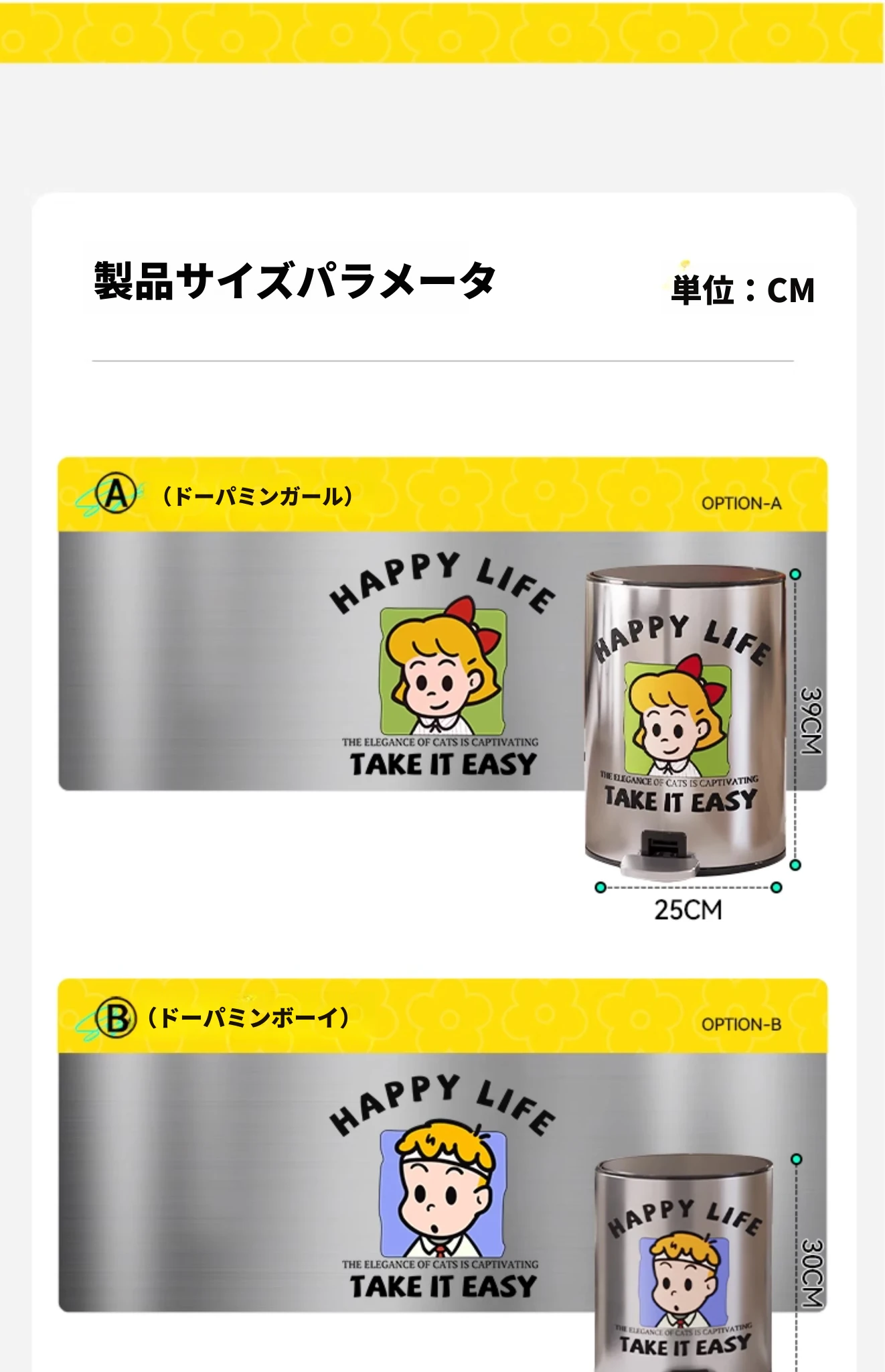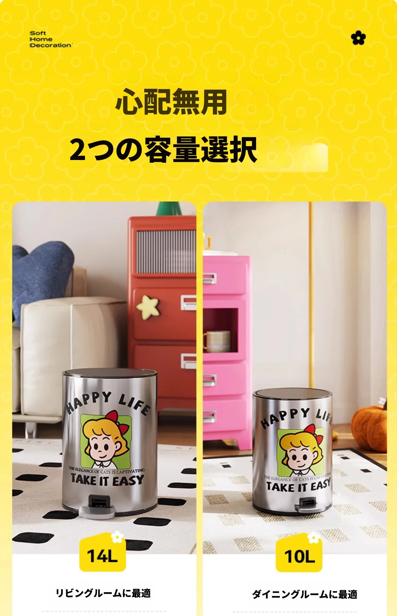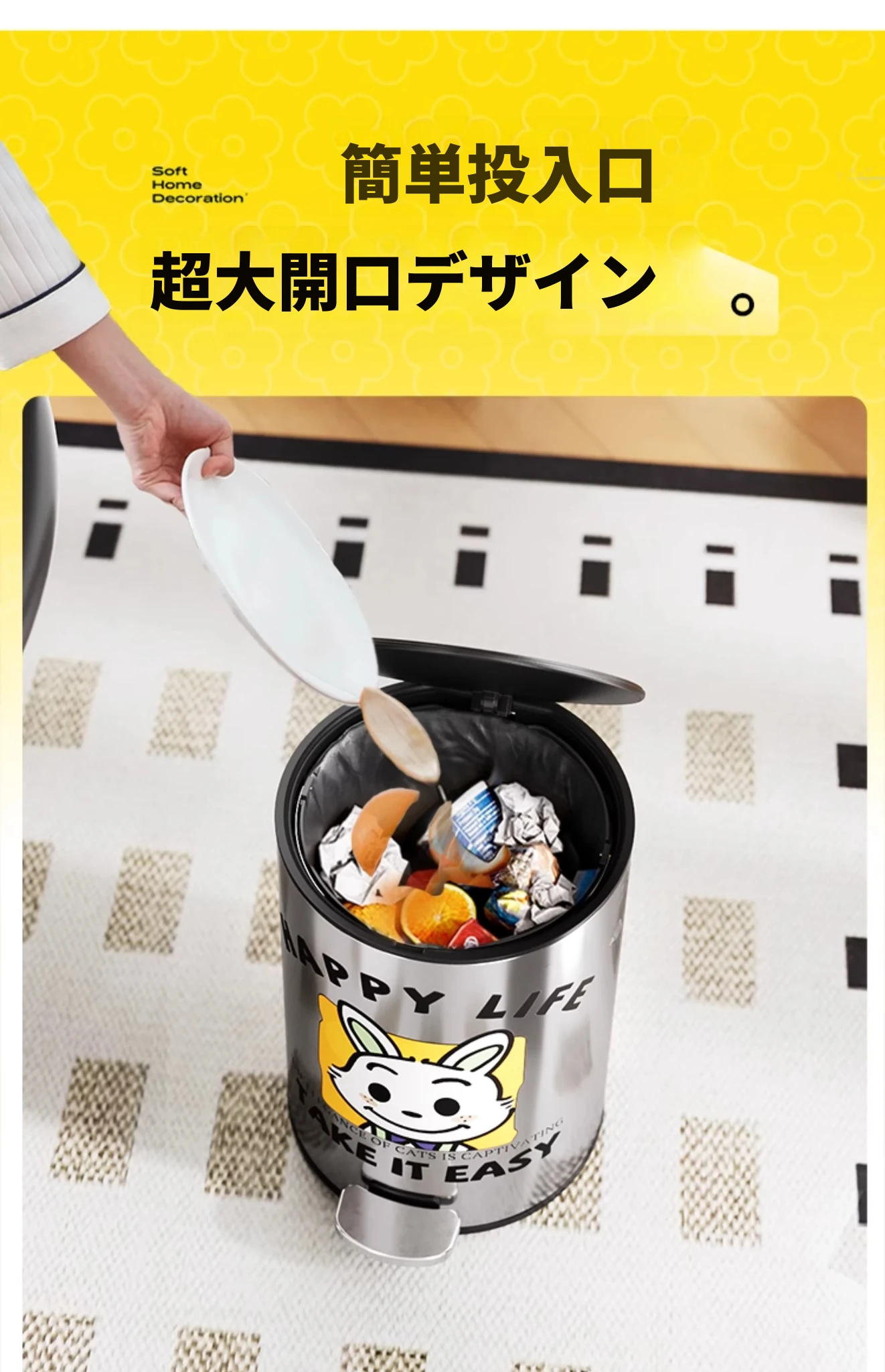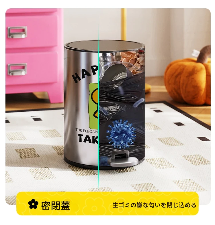美世达ステンレス製ゴミ箱 高級感溢れるカートゥーンデザイン 2025年新作 リビングや寝室に最適な大容量フタ付きゴミ箱