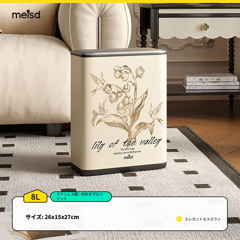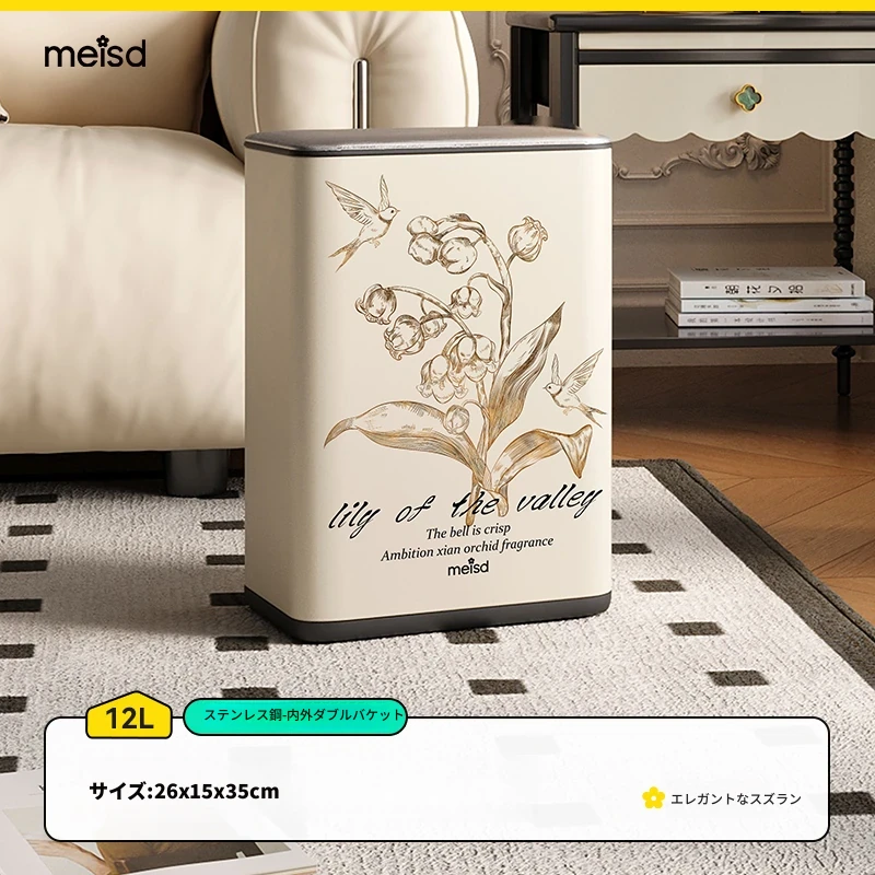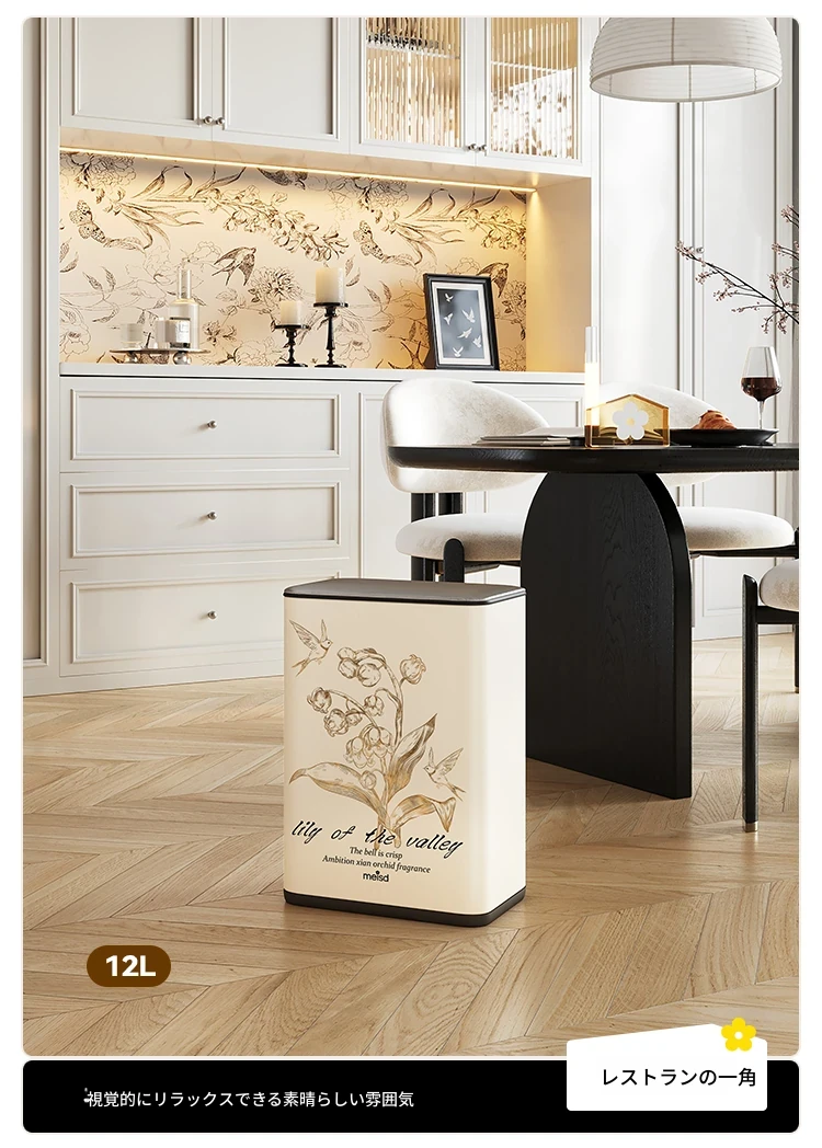 【大容量・ステンレスフットペダル】エレガントなスズラン⭐15L⭐2-3人用キッチン/リビング