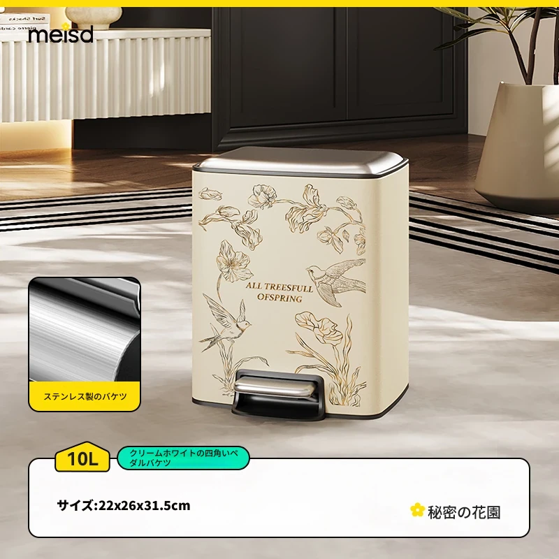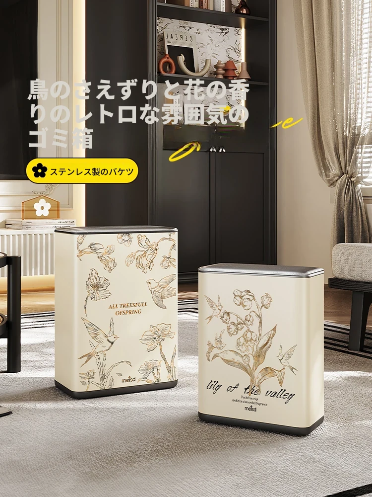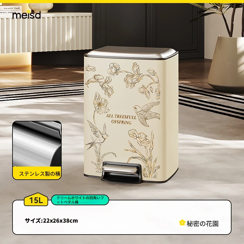 【大容量・ステンレスフットペダル】鳥の歌と花の香り⭐15L⭐2-3人用キッチン/リビング