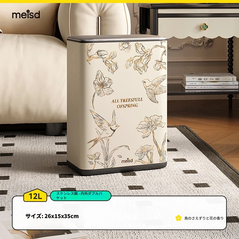 【ステンレスプレスタイプ】鳥の歌と花の香り⭐12L⭐内外ダブルバケツ