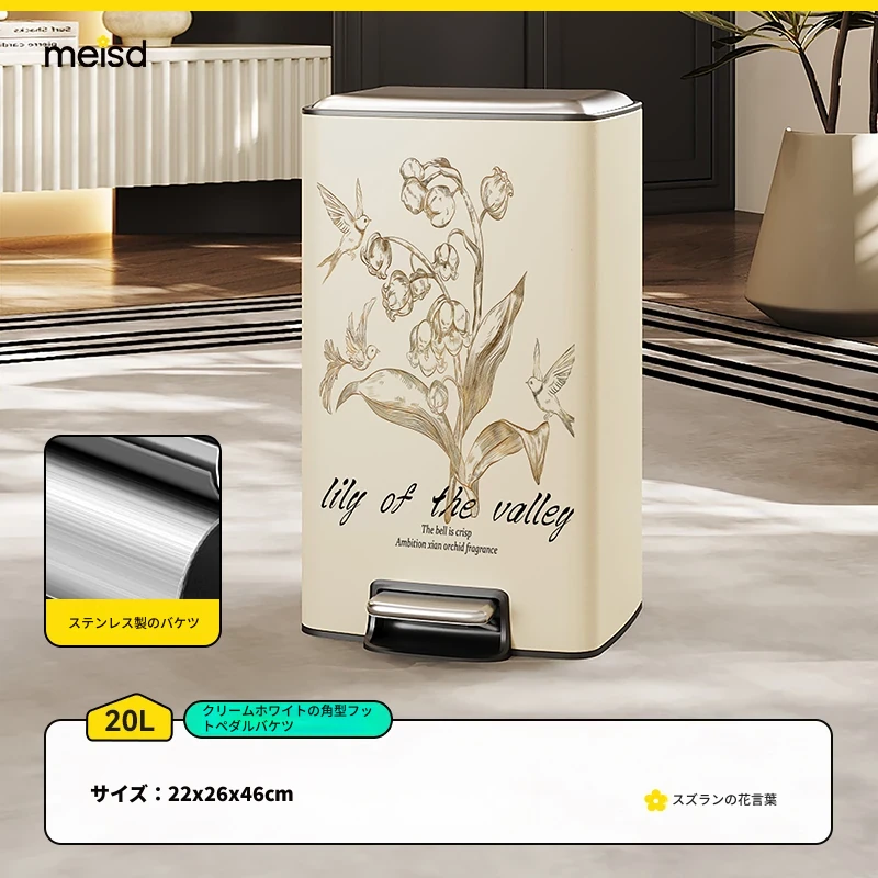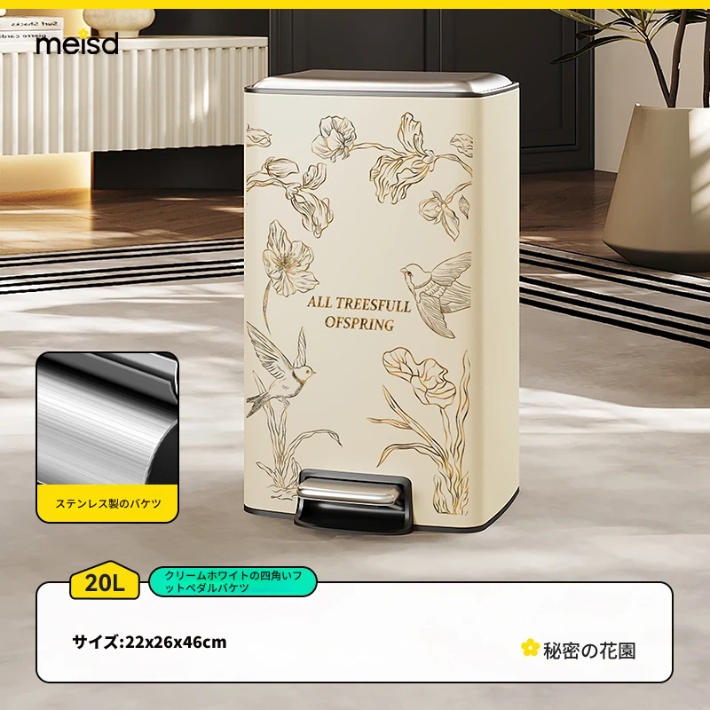 【大容量・ステンレスフットペダル】鳥の歌と花の香り⭐20L⭐3-4人用キッチン/リビング