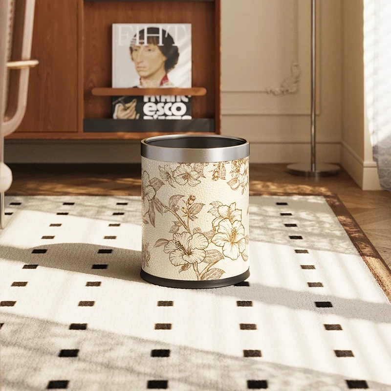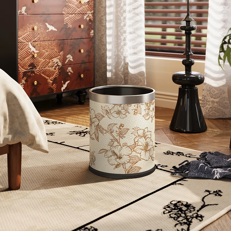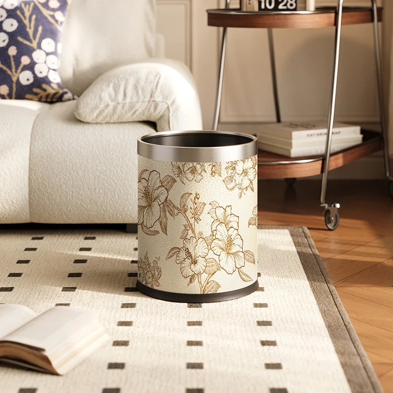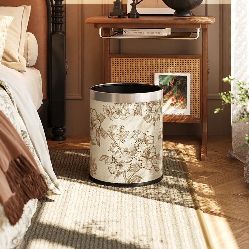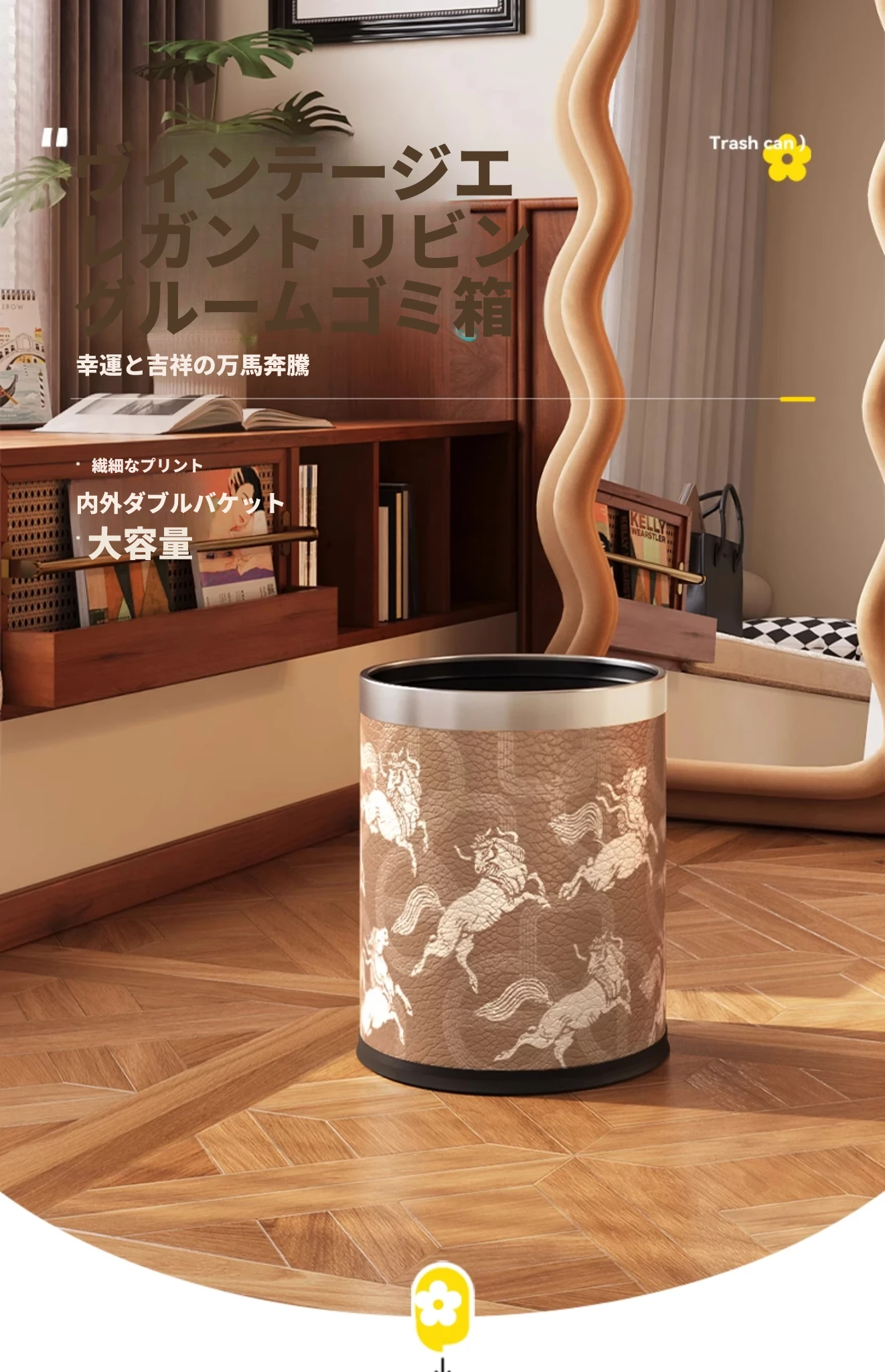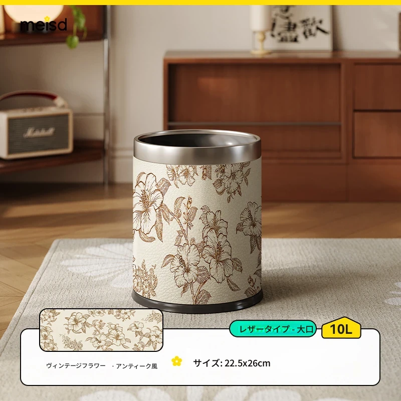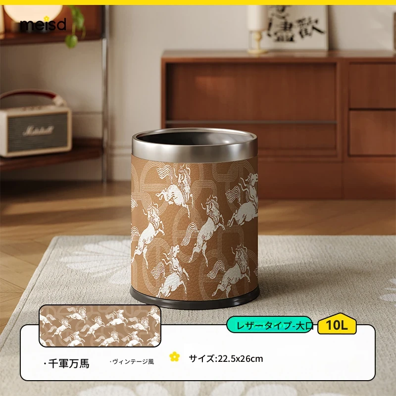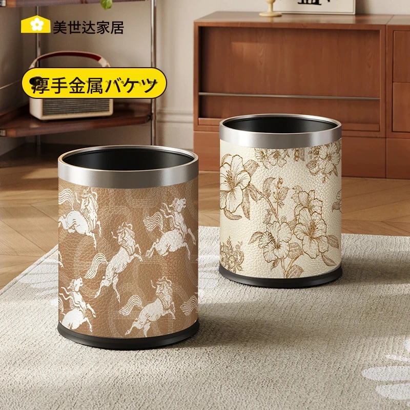 美世达ステンレス製古風ゴミ箱 家庭用 リビング/寝室向け 高級感あふれるレザー仕上げ 2025年新作 シックでスタイリッシュなデザインのペーパーゴミ箱