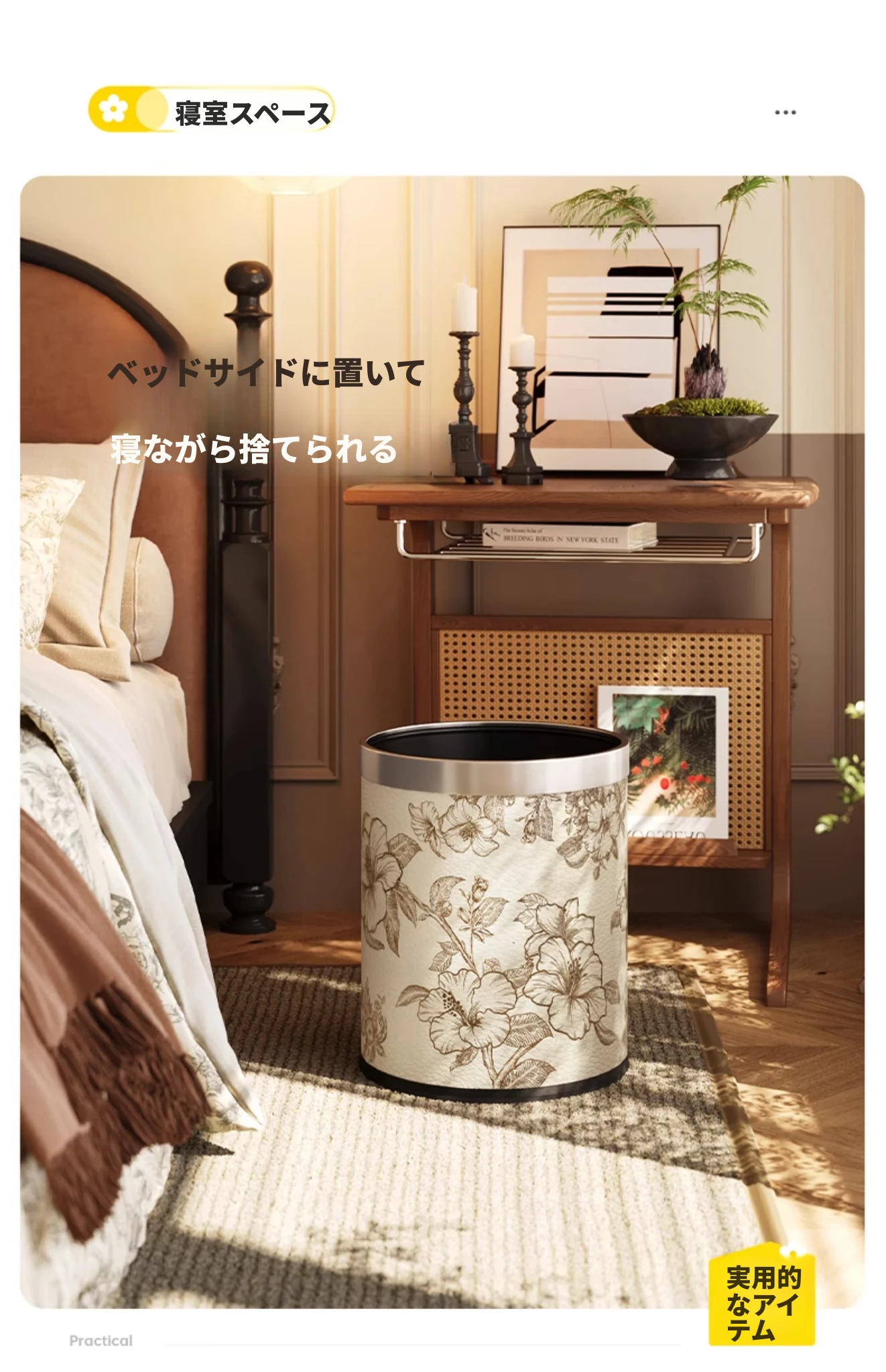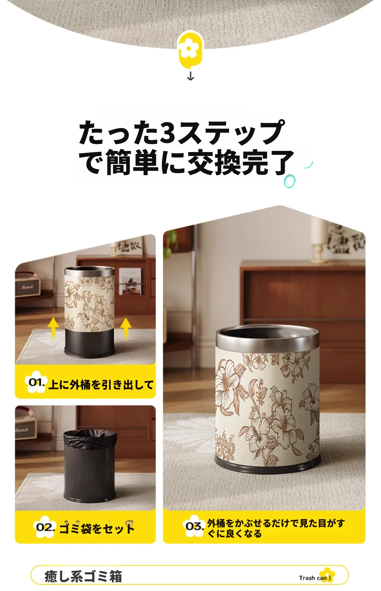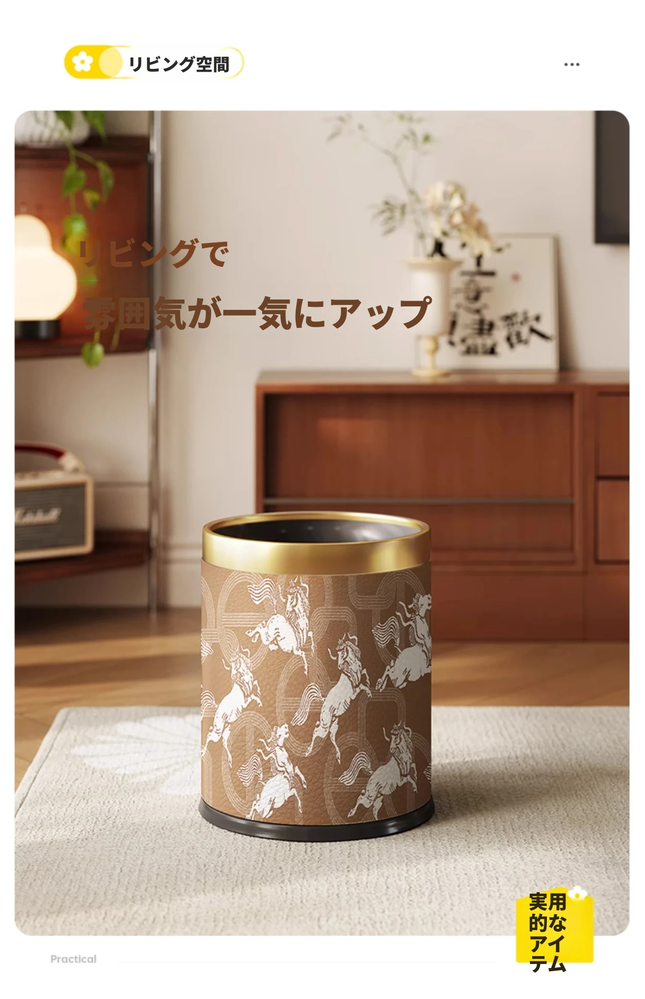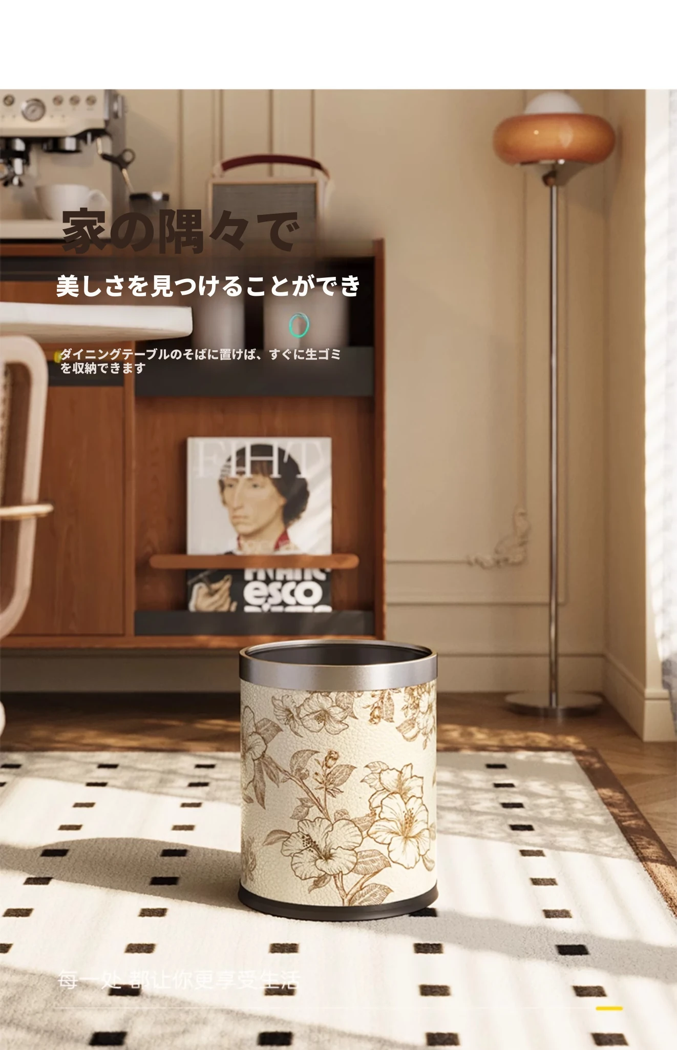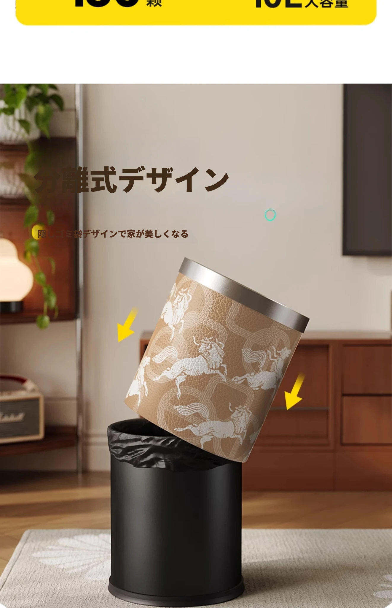 美世达ステンレス製古風ゴミ箱 家庭用 リビング/寝室向け 高級感あふれるレザー仕上げ 2025年新作 シックでスタイリッシュなデザインのペーパーゴミ箱