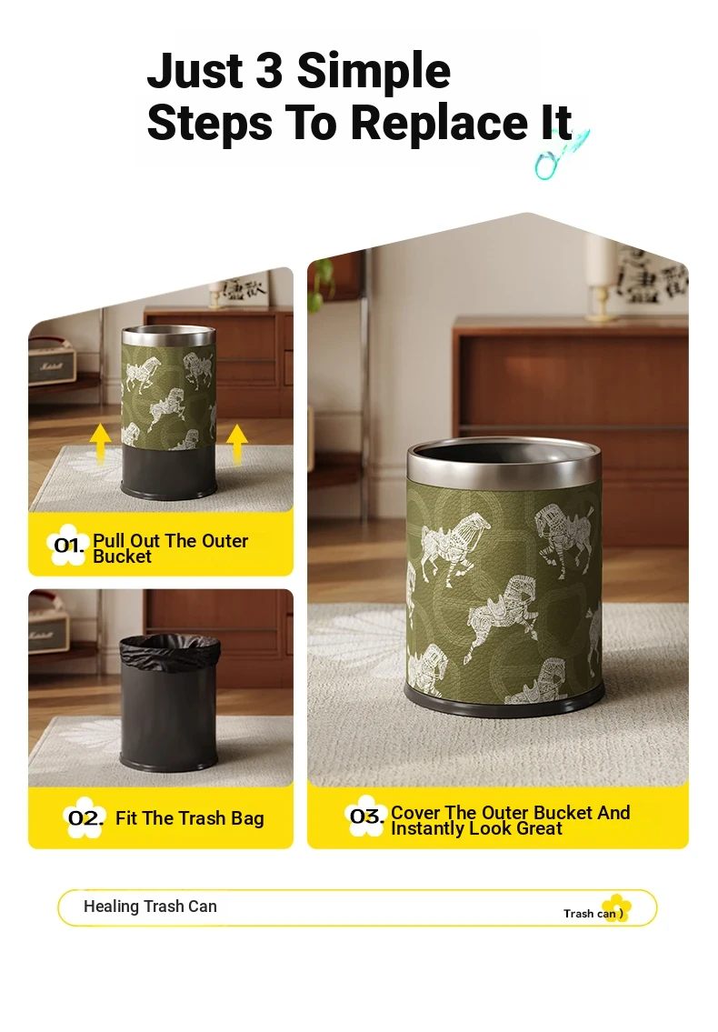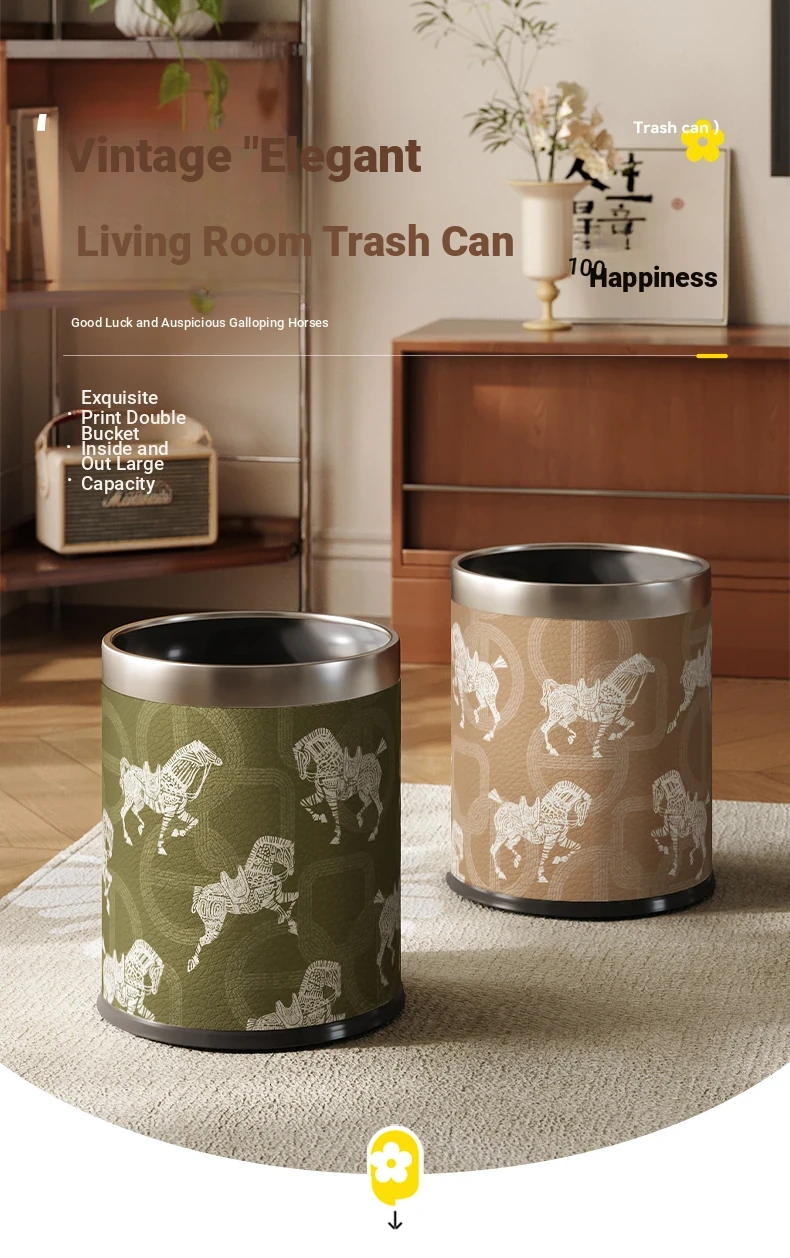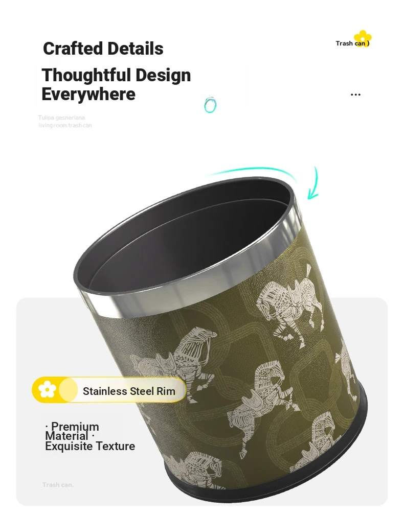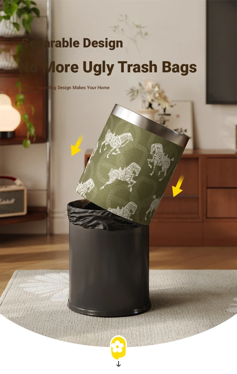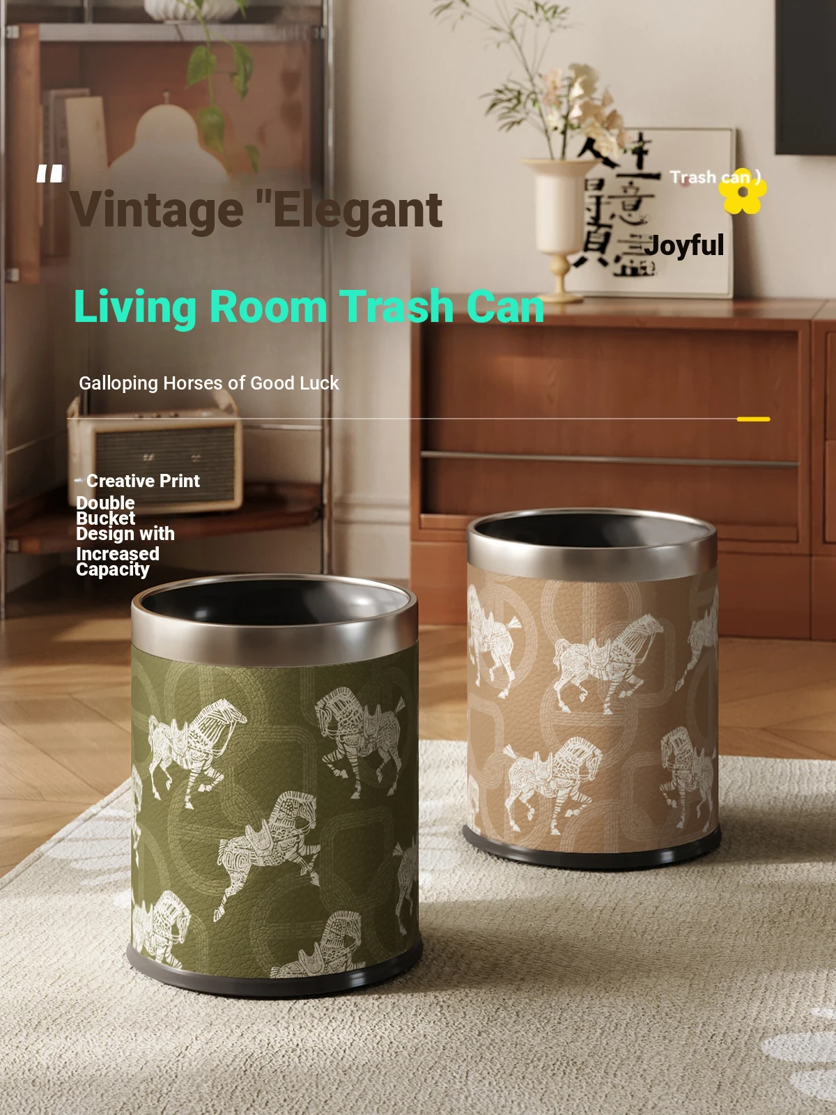 Stylish Vintage-Style Trash Can by Meishida - Elegant New Chinese Design for Living Room, Bedroom, and Home Use - Creative Waste Bin for a Chic Touch in Your Space