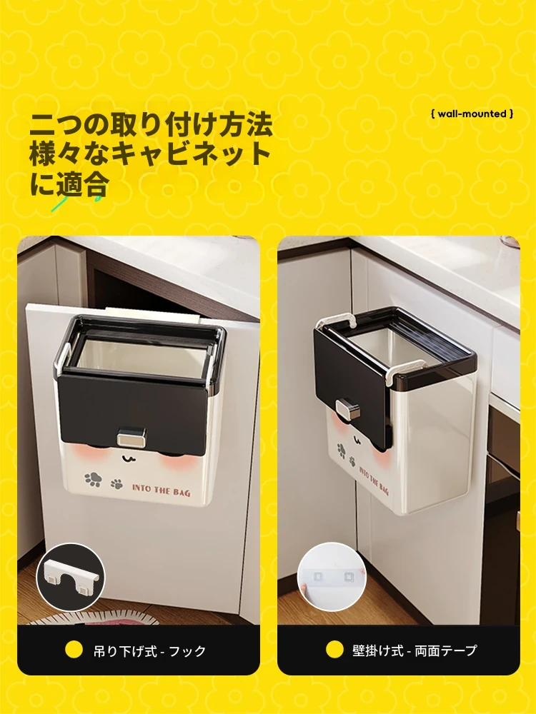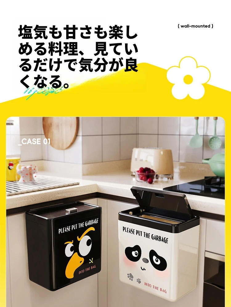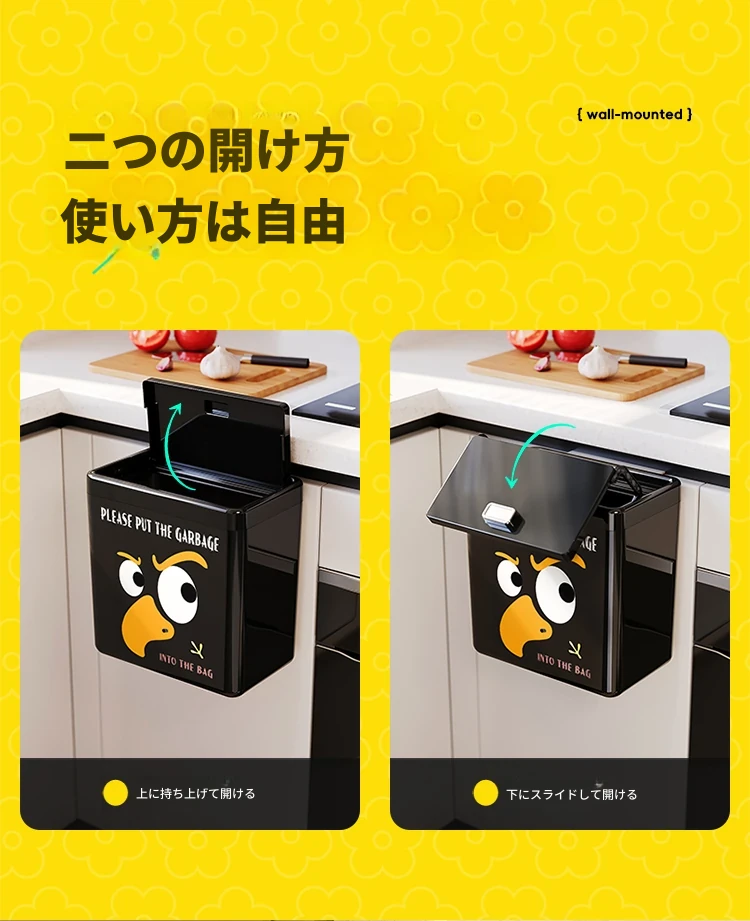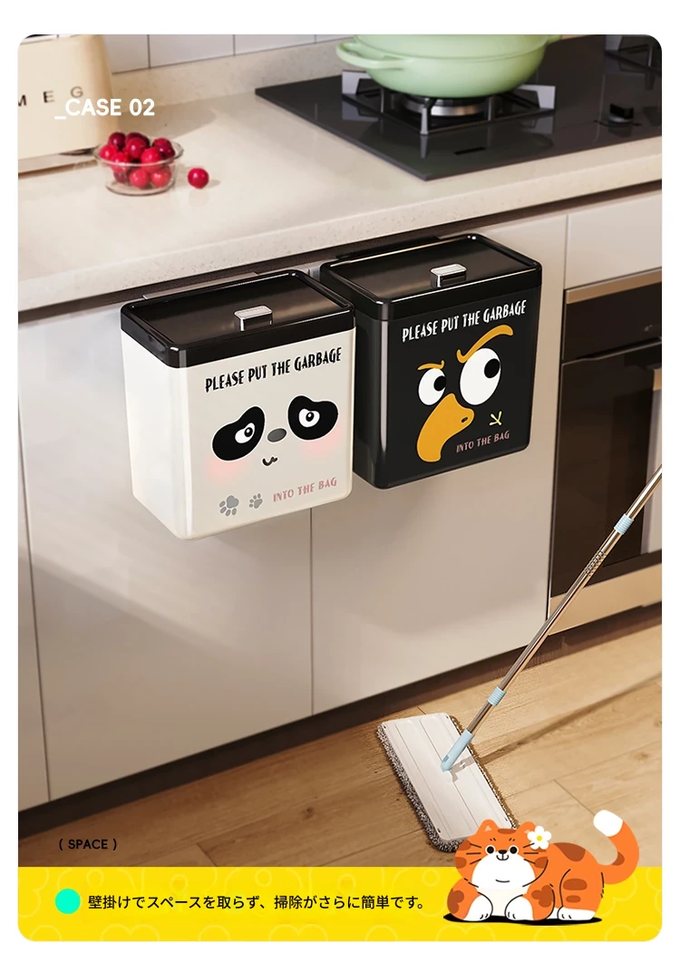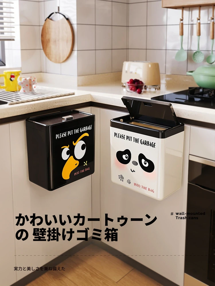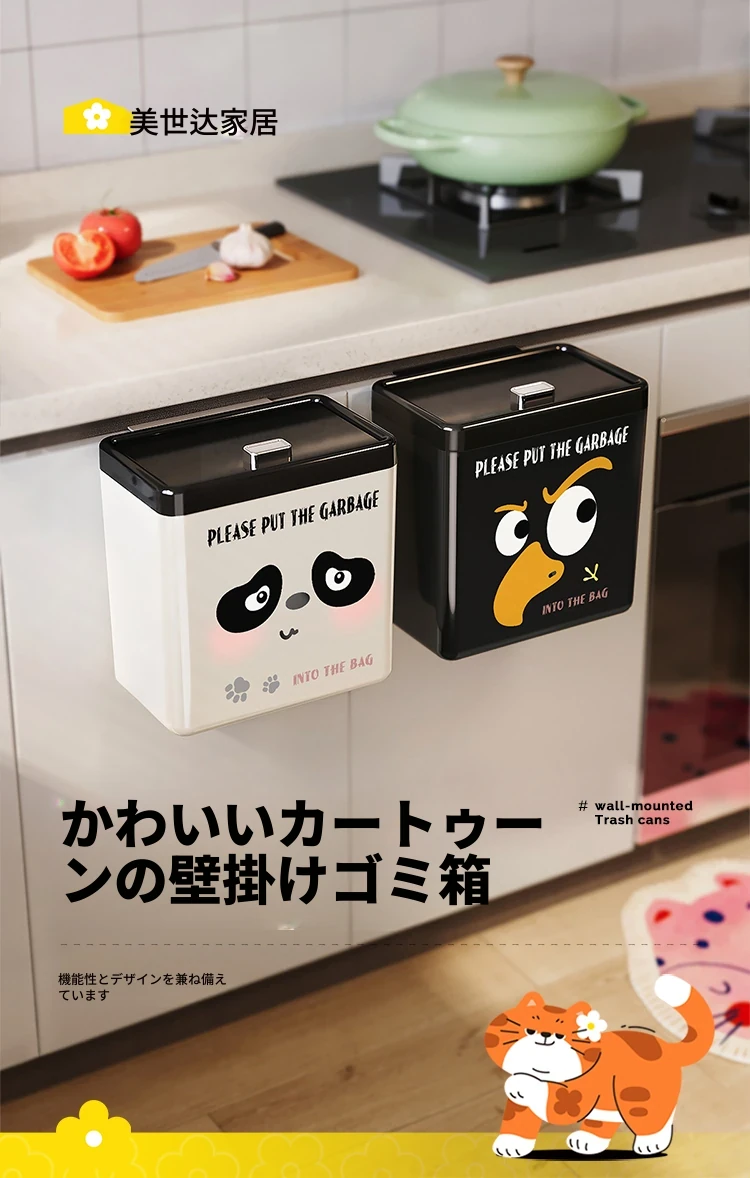 美世达のカートゥーンデザイン壁掛けゴミ箱 - 大容量でスタイリッシュ、家庭用トイレやバスルームに最適な蓋付きモデル!清潔感と可愛さを両立させた、あなたの空間を華やかに彩ります。